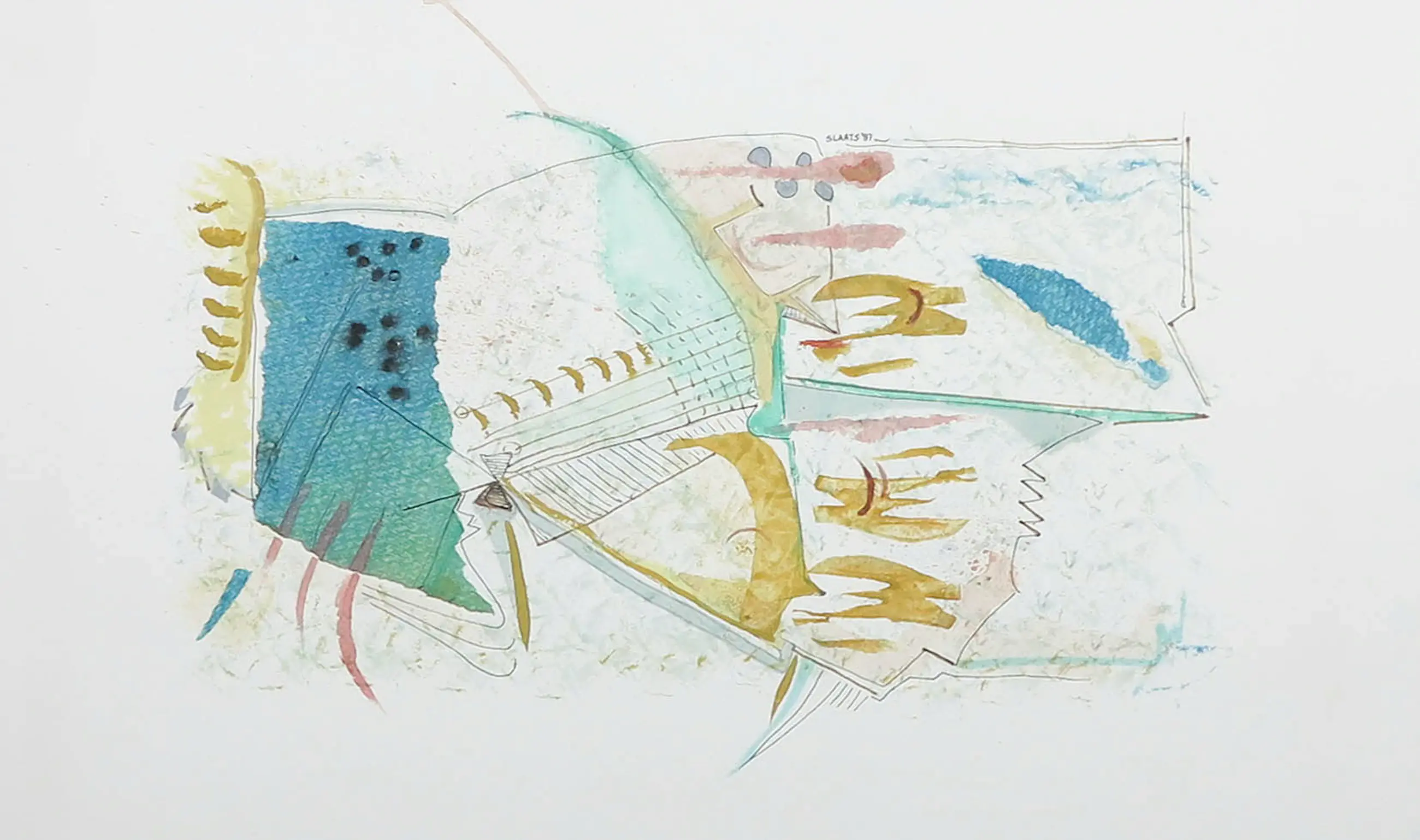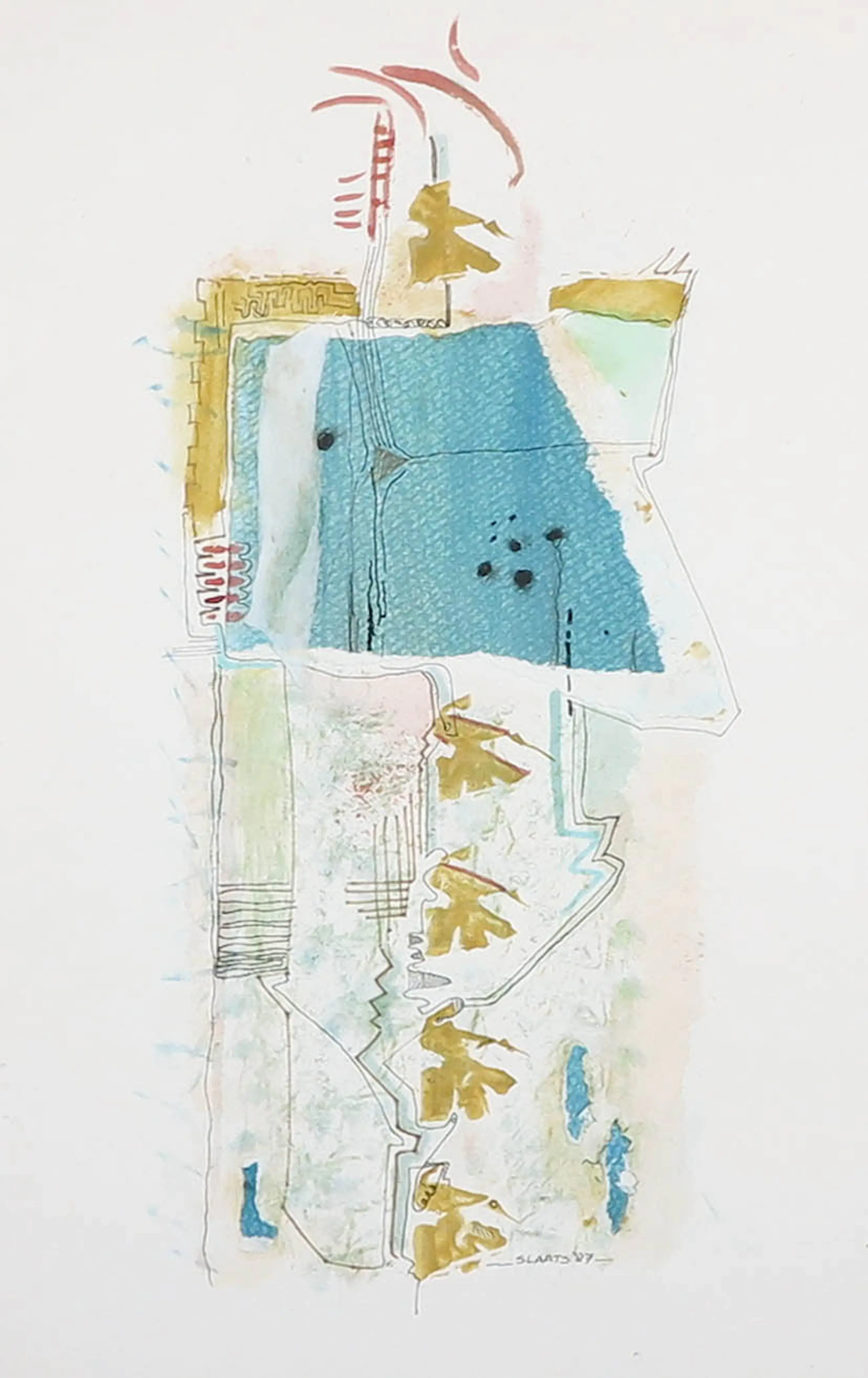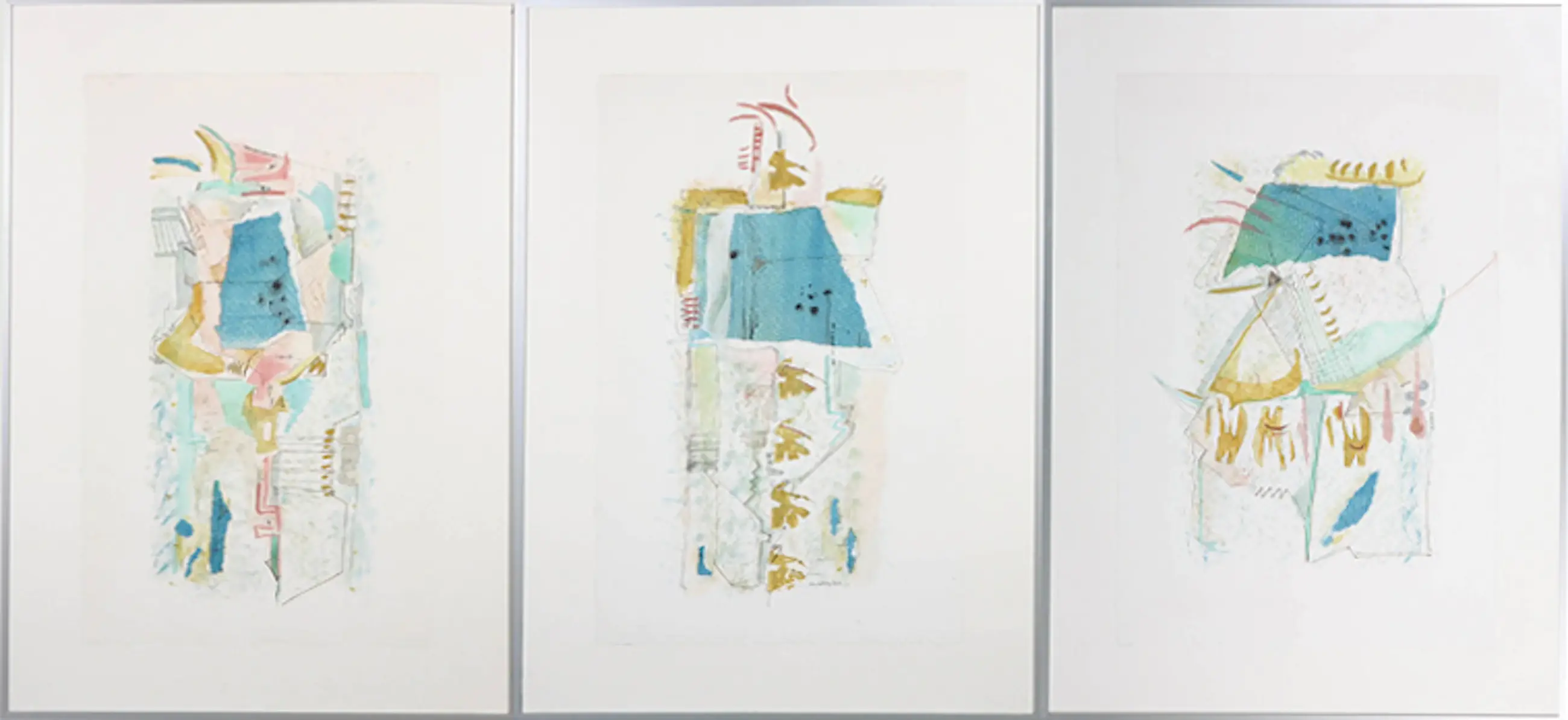 Drie werken van Miriam Slaats met gemengde techniek op papier getiteld Experiment I t/m III. Handgesigneerd.