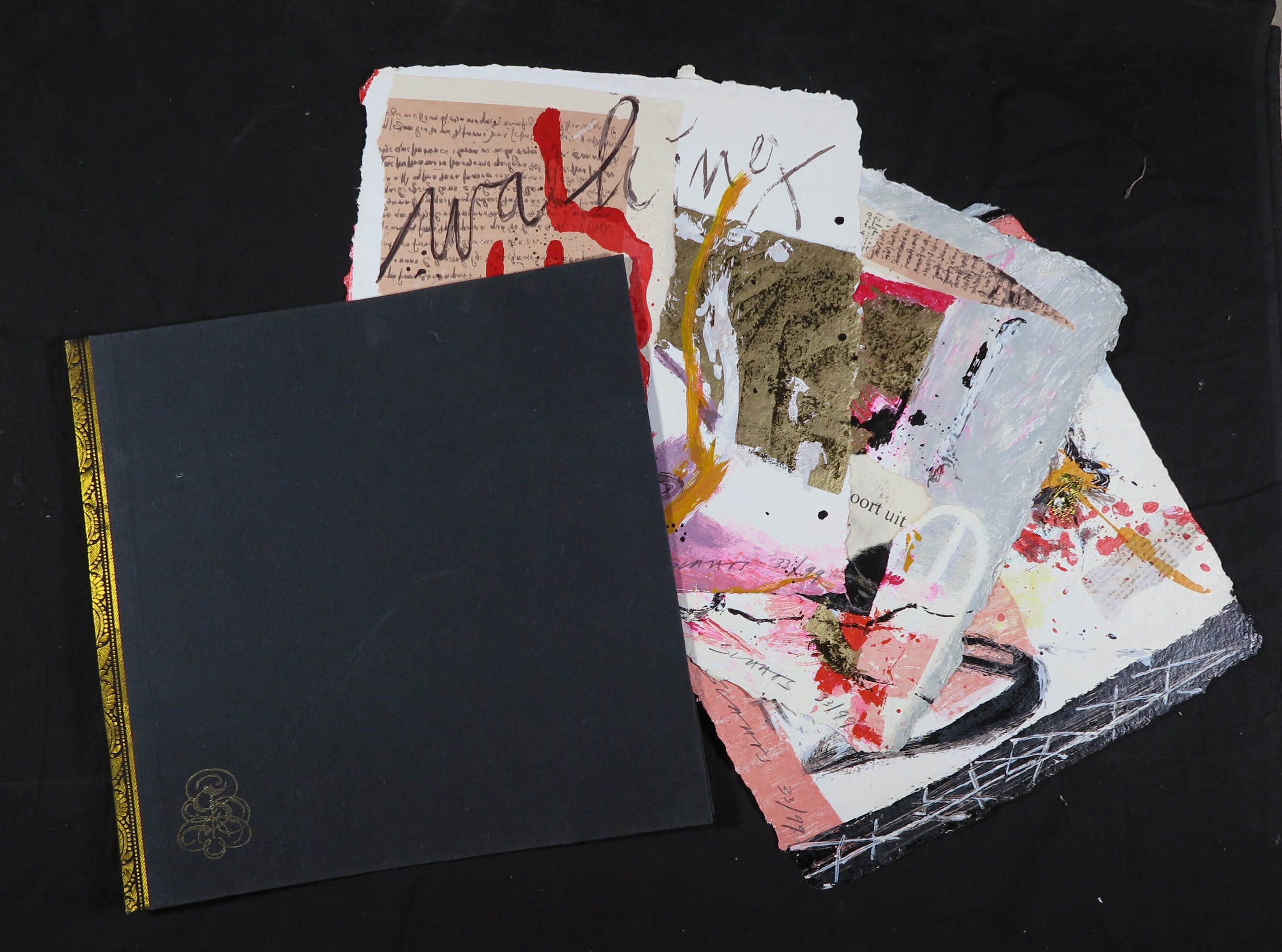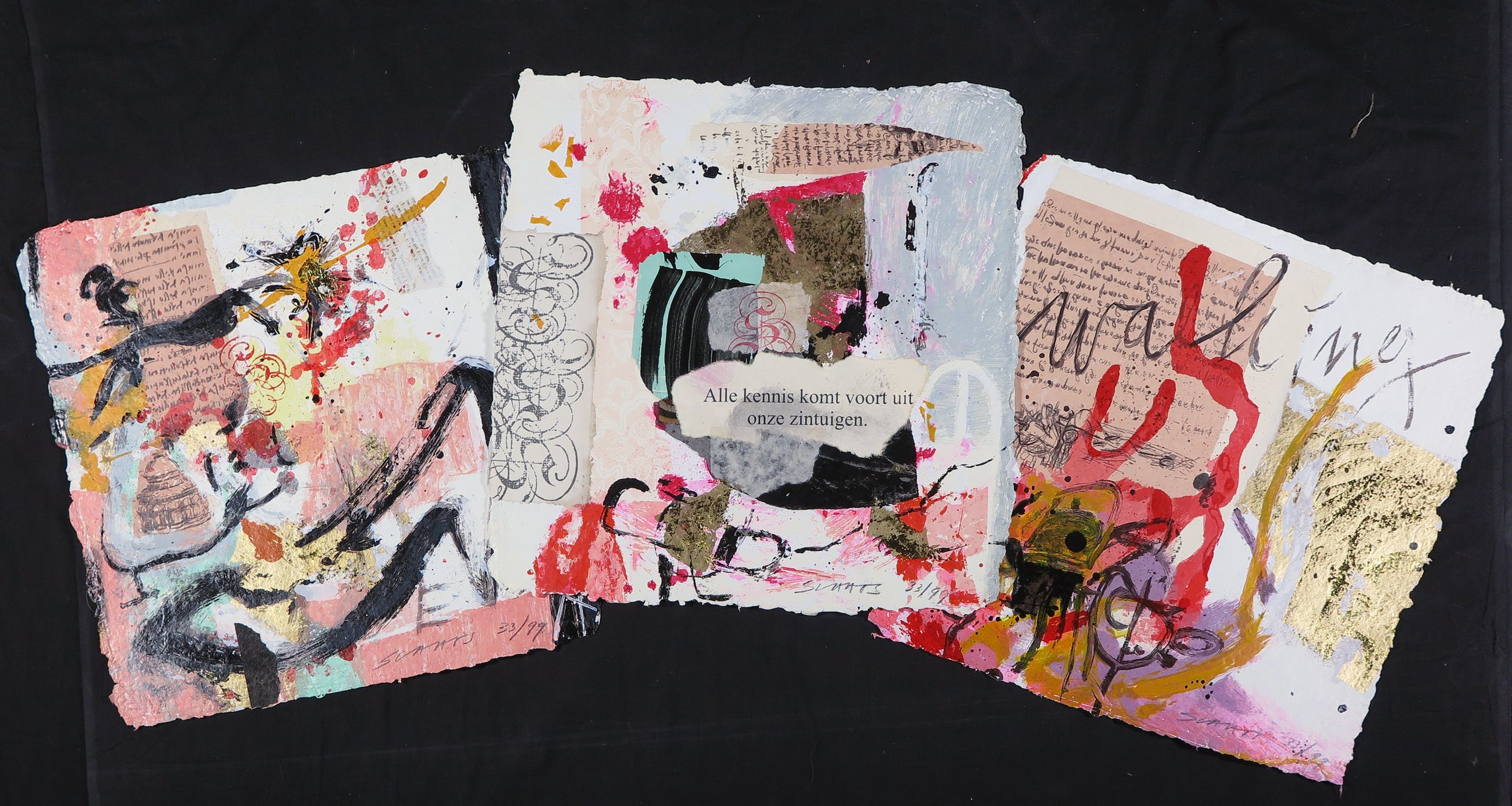 Mooie map met drie zeefdrukken op geschept papier door kunstenaar Miriam Slaats.