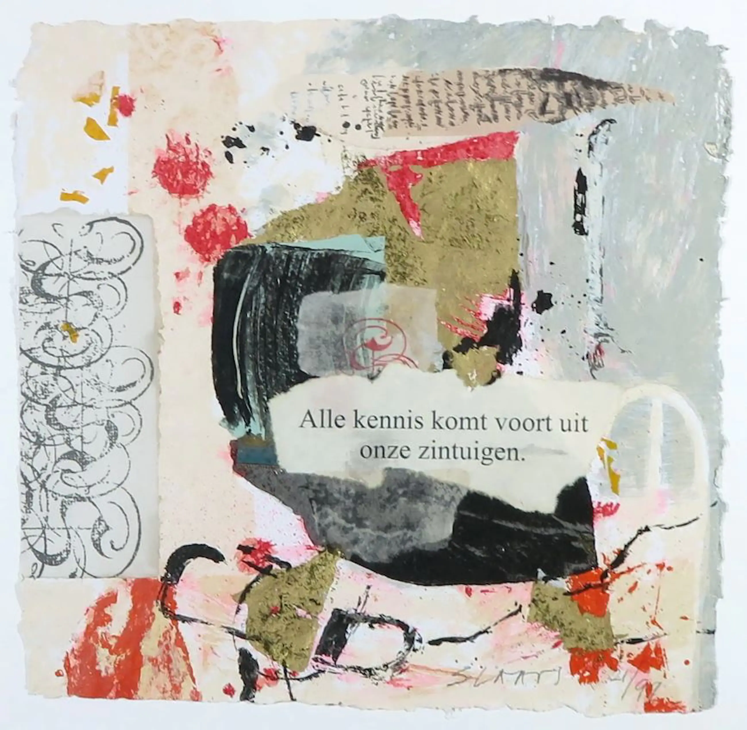 Miriam Slaats - Zeefdruk, Alle kennis komt voort uit onze zintuigen - Ingelijst - Verkocht