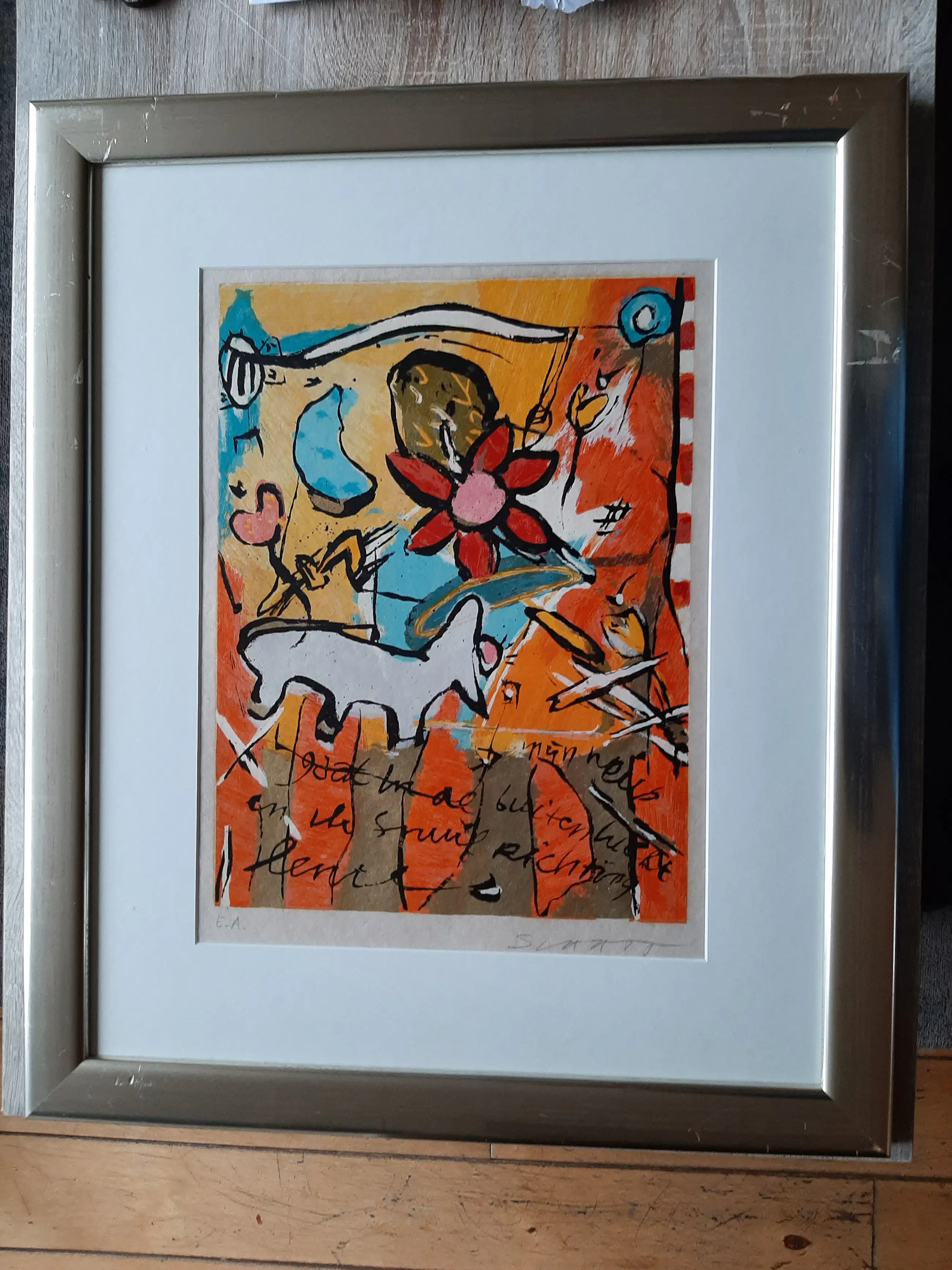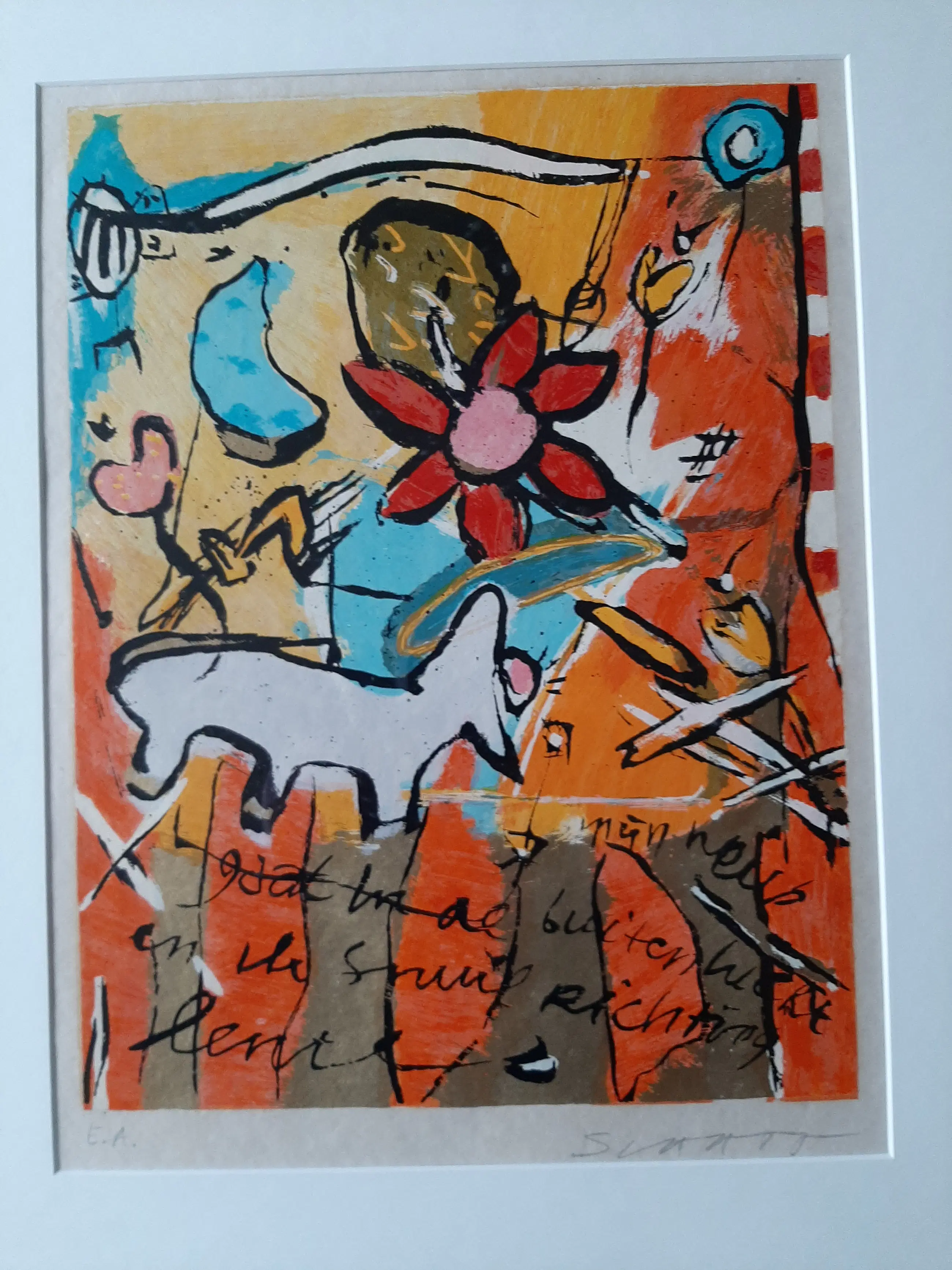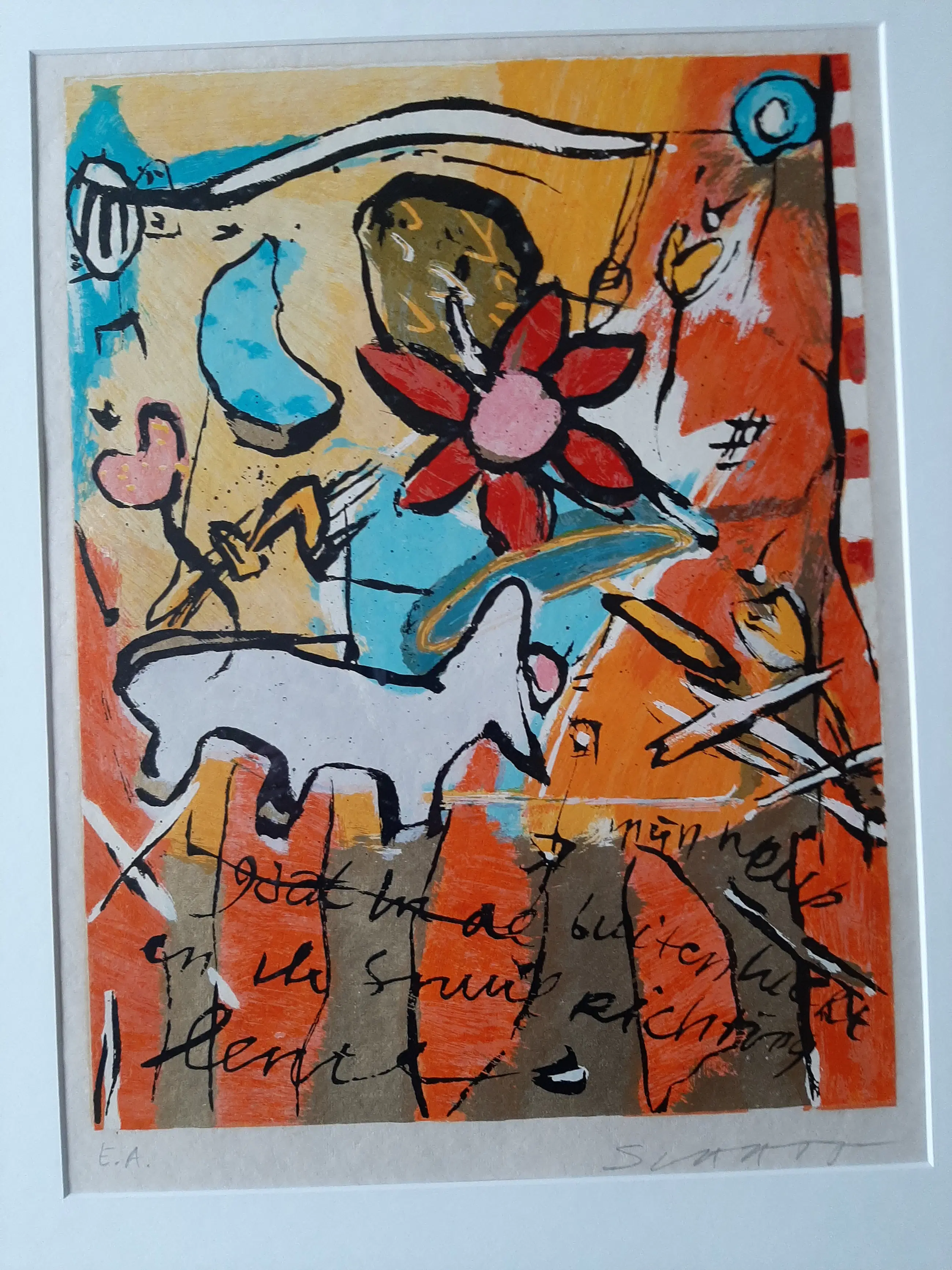Kleurrijke zeefdruk "Mijn neus gaat in de buitenlucht en ik snuif richting lente'