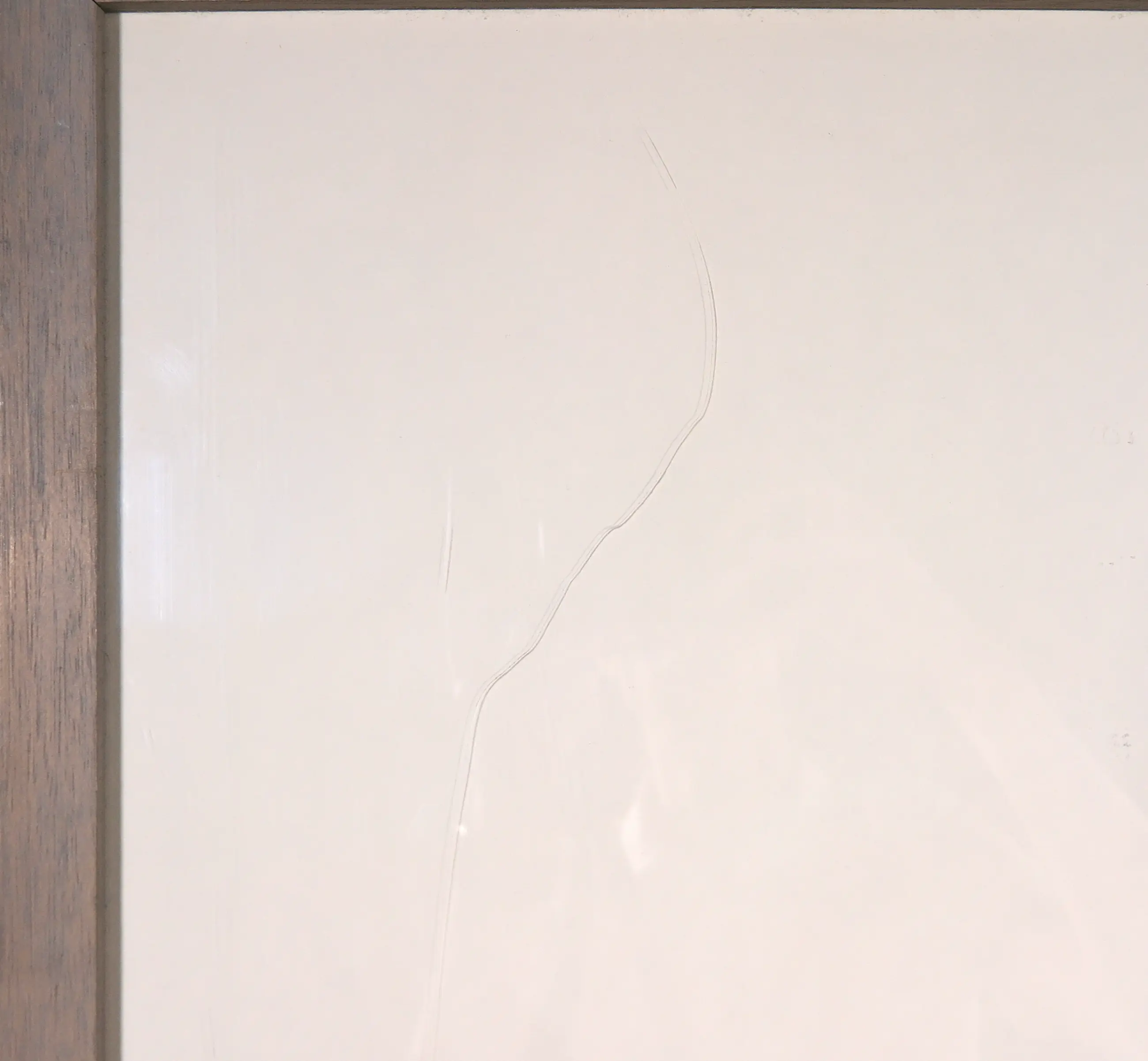 | Het glas heeft meerdere grote krassen en de lijst is op één hoek kapot. | |