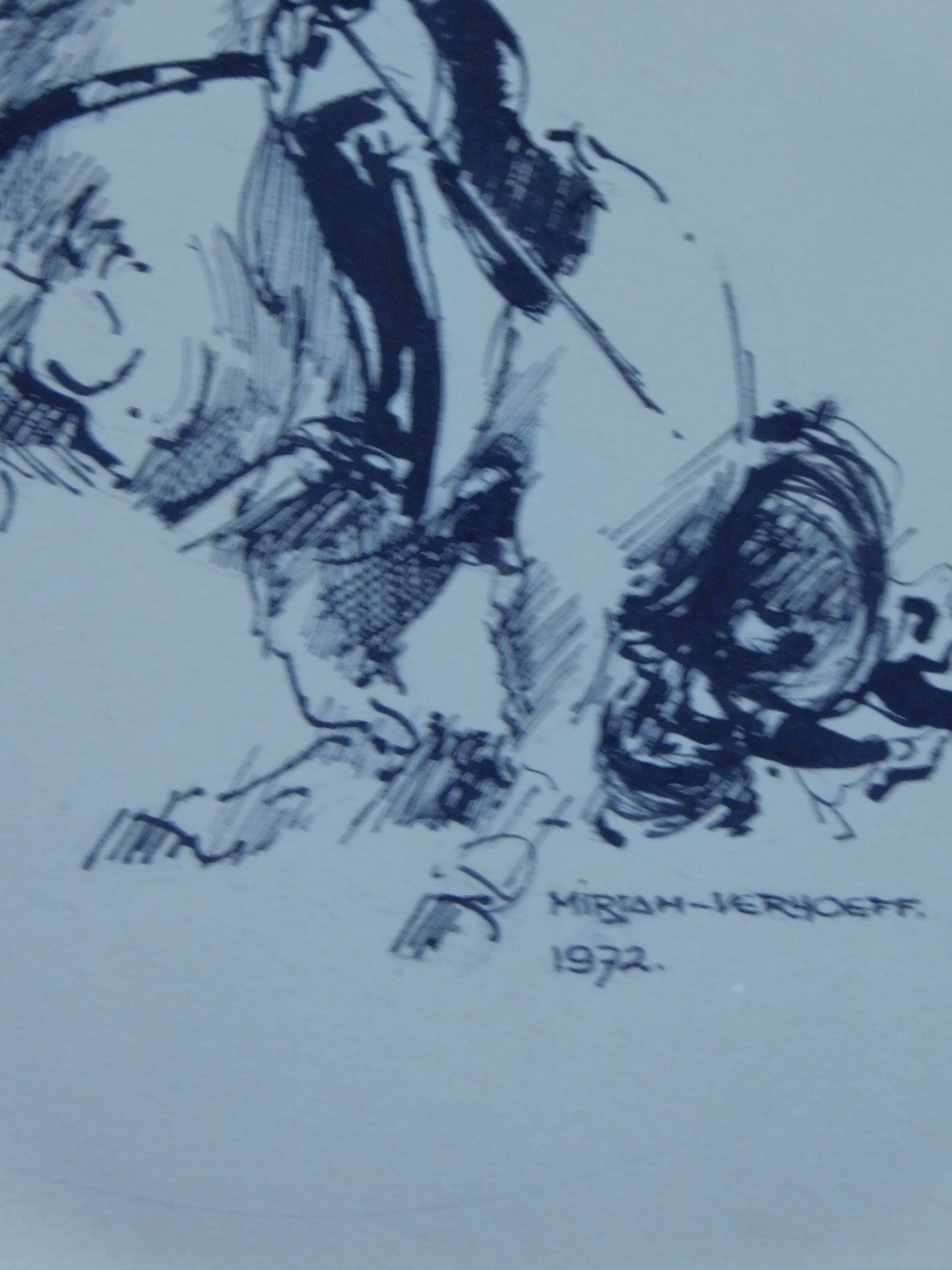 Ingelijst achter glas in een goudkleurige lijst in zwarte Passe Partout.Lijst is beschadigd. Wordt zorgvuldig verpakt en verzekerd verzonden.