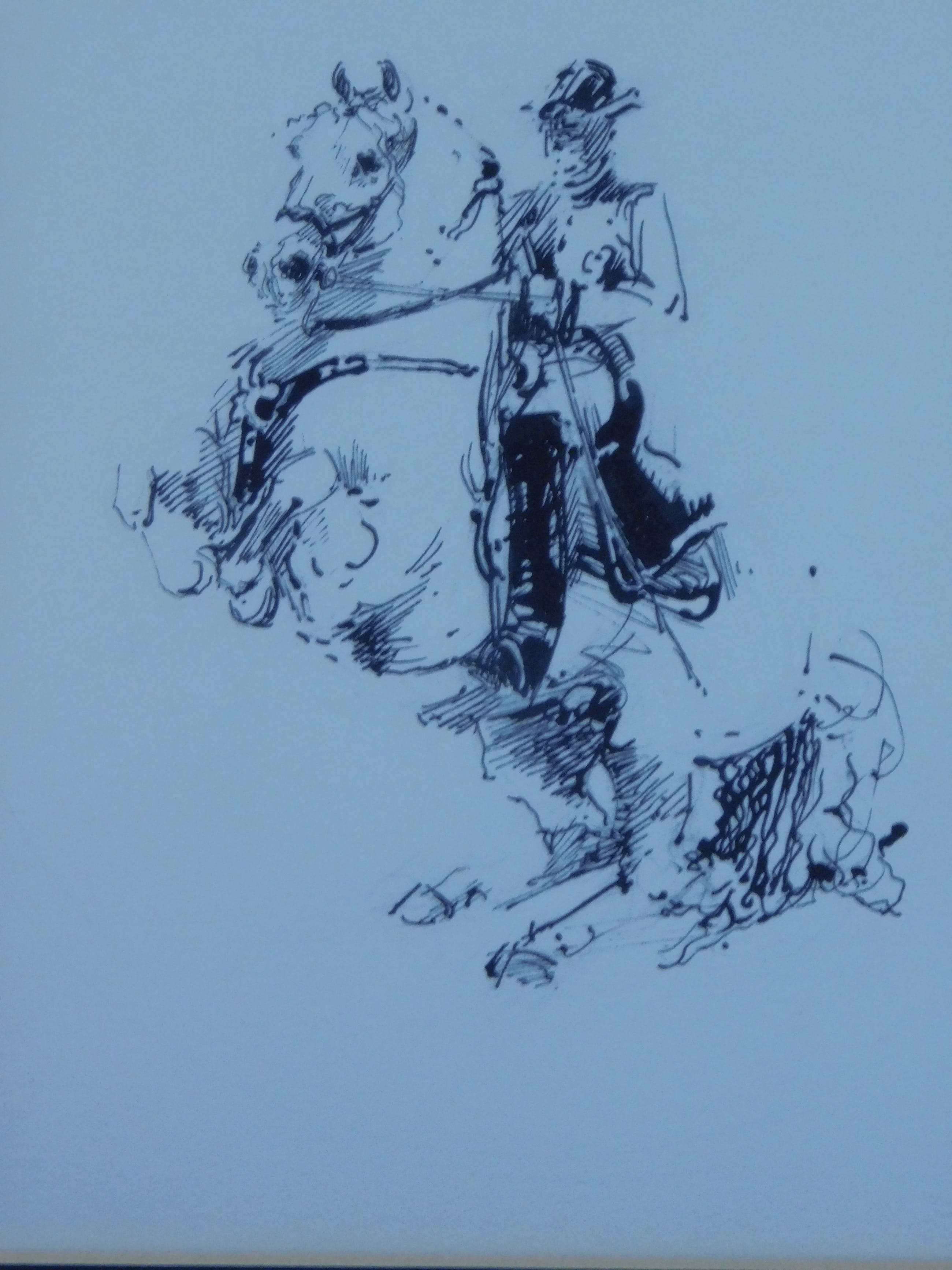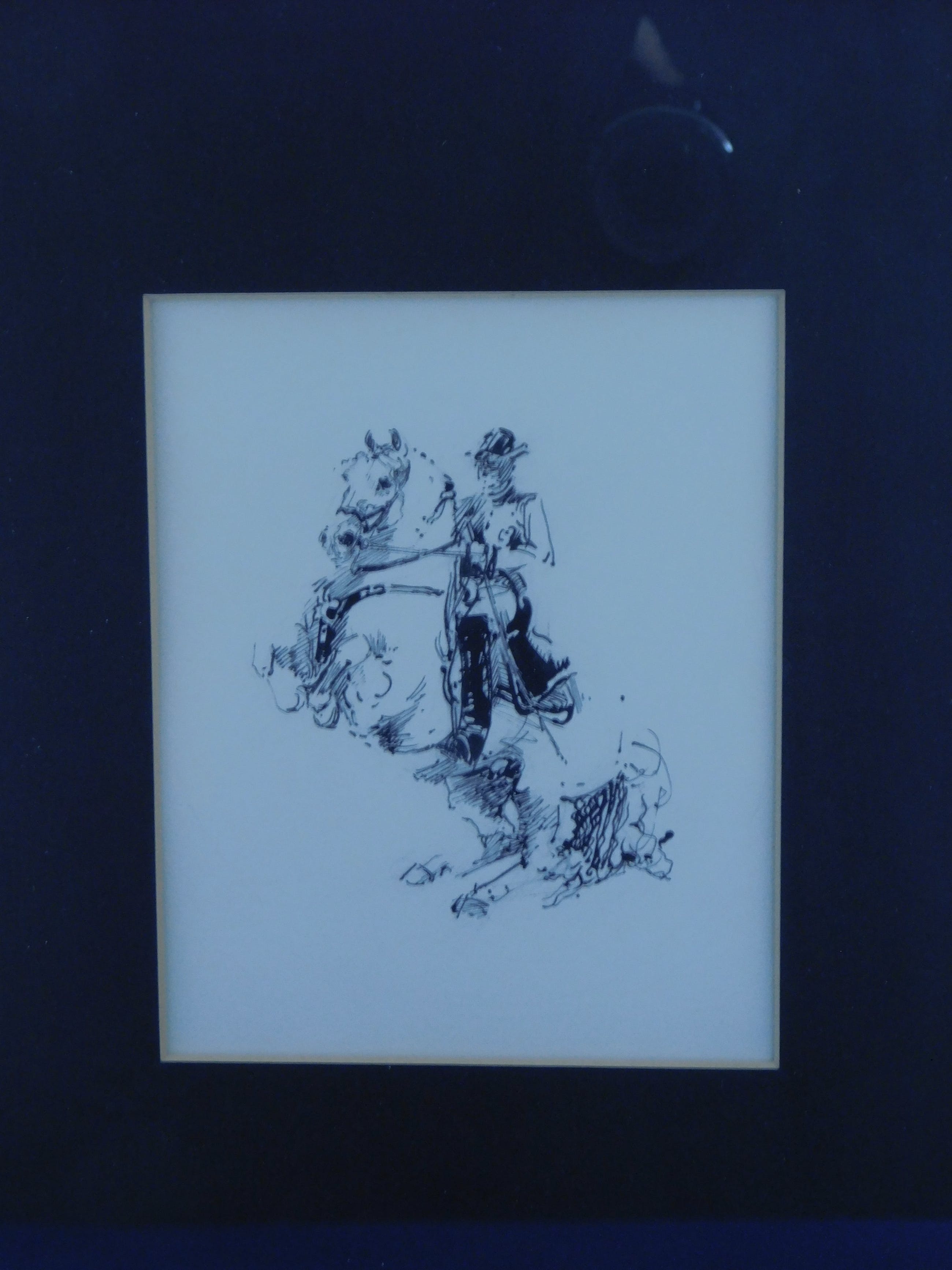 Ingelijst achter glas in een goudkleurige lijst in zwarte Passe Partout.Lijst is beschadigd. Wordt zorgvuldig verpakt en verzekerd verzonden.