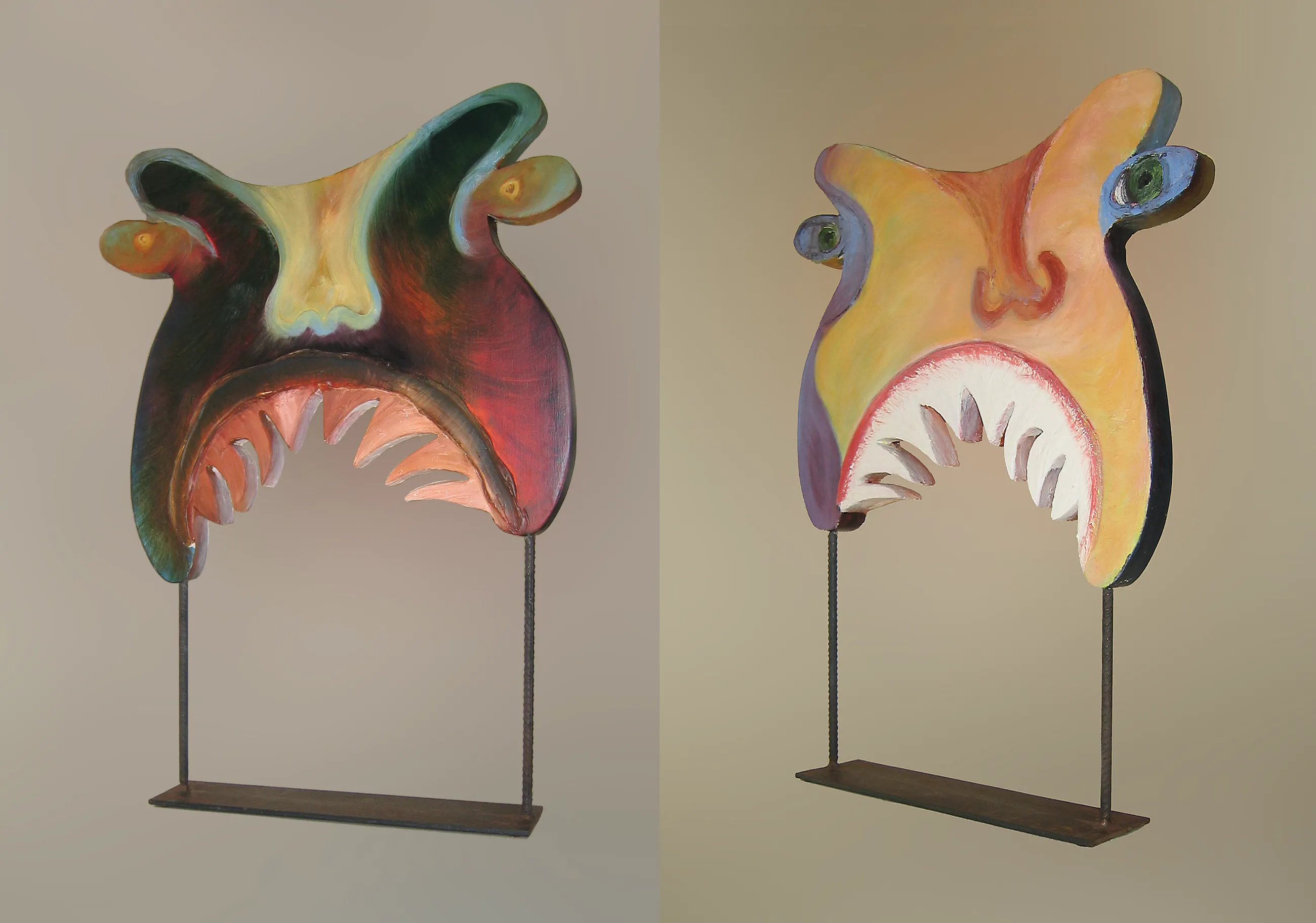 Beschilderd sculptuur van Mirko Krabbé, 2002 Afmeting 71 cm( h), 56 cm (b), 4 cm (d) - IJzeren voet 10 x 43 cm Mirko Krabbé (Amsterdam, 1960) is beeldend kunstenaar en ontwerper. Krabbé is een zoon van de schilder Maarten Krabbé en een halfbroer van schrijver Tim en acteur/schilder Jeroen Krabbé.