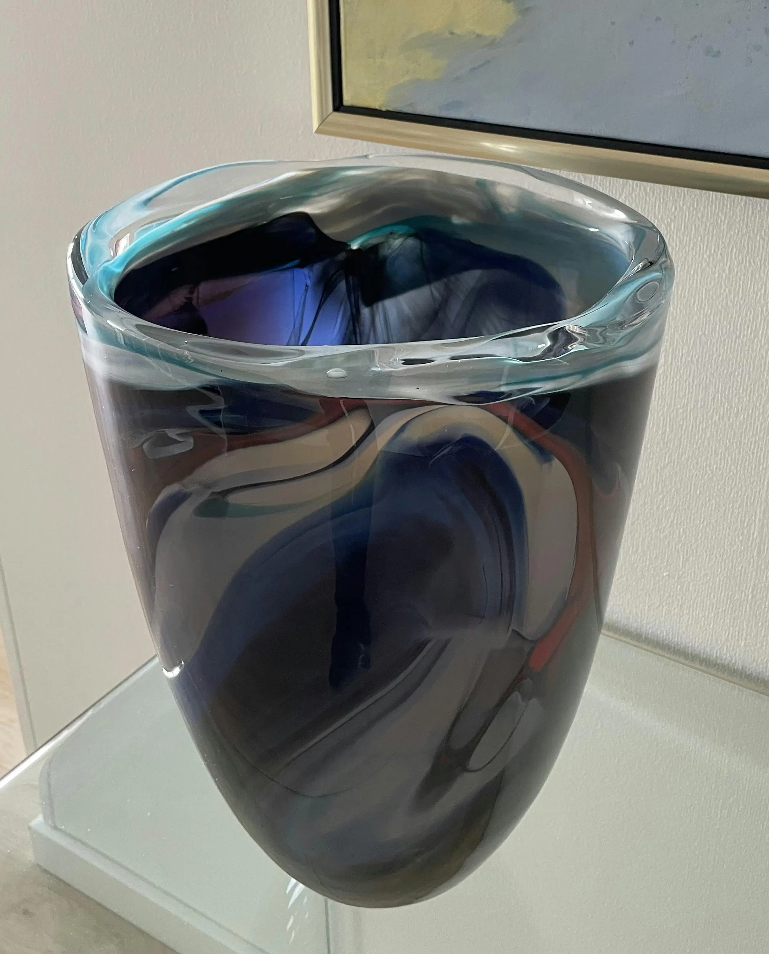 Imposant groot glasobject “ Nocturno Dream “ van glaskunstenaar Misha Ignis. Unique, mondgeblazen en handgevormd. Aan de onderkant een signatuur met diamant stift M.Ignis Nocturno’98 Dream. Werk van Misha Ignis maakt o.a. deel uit van de collectie van Museum Boijmans van Beuningen. Hoog 38 cm. Diameter 26 cm. Gewicht 8 kilo! In perfecte staat.