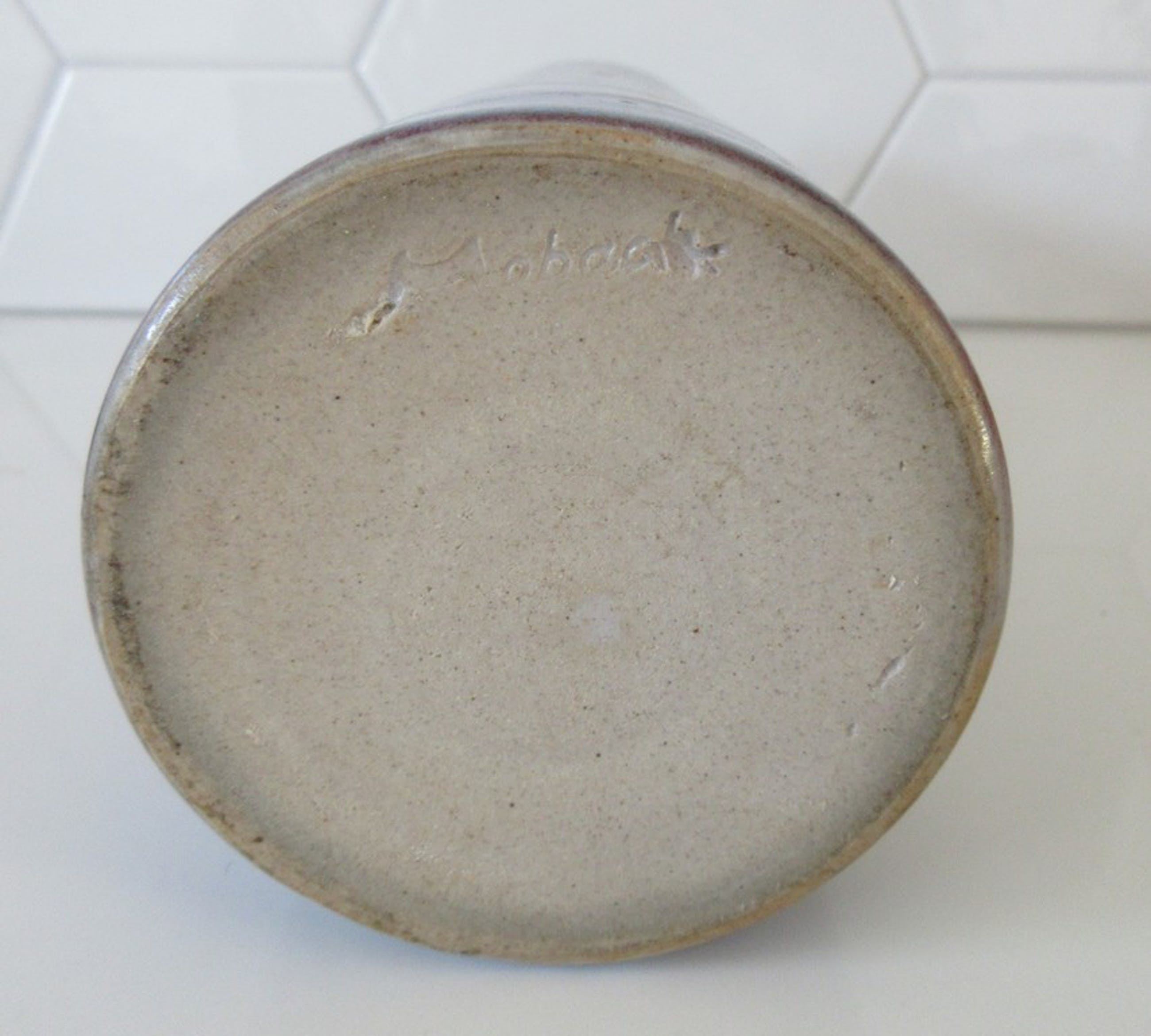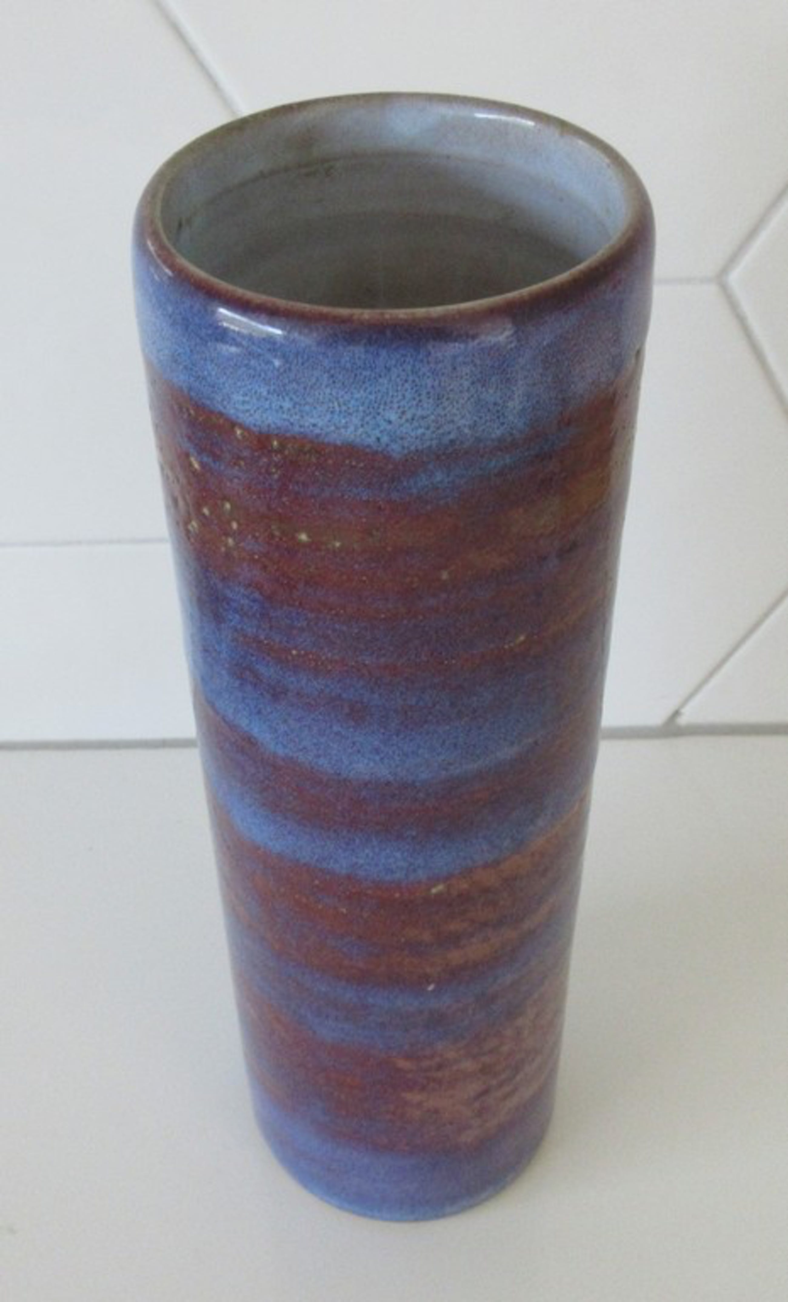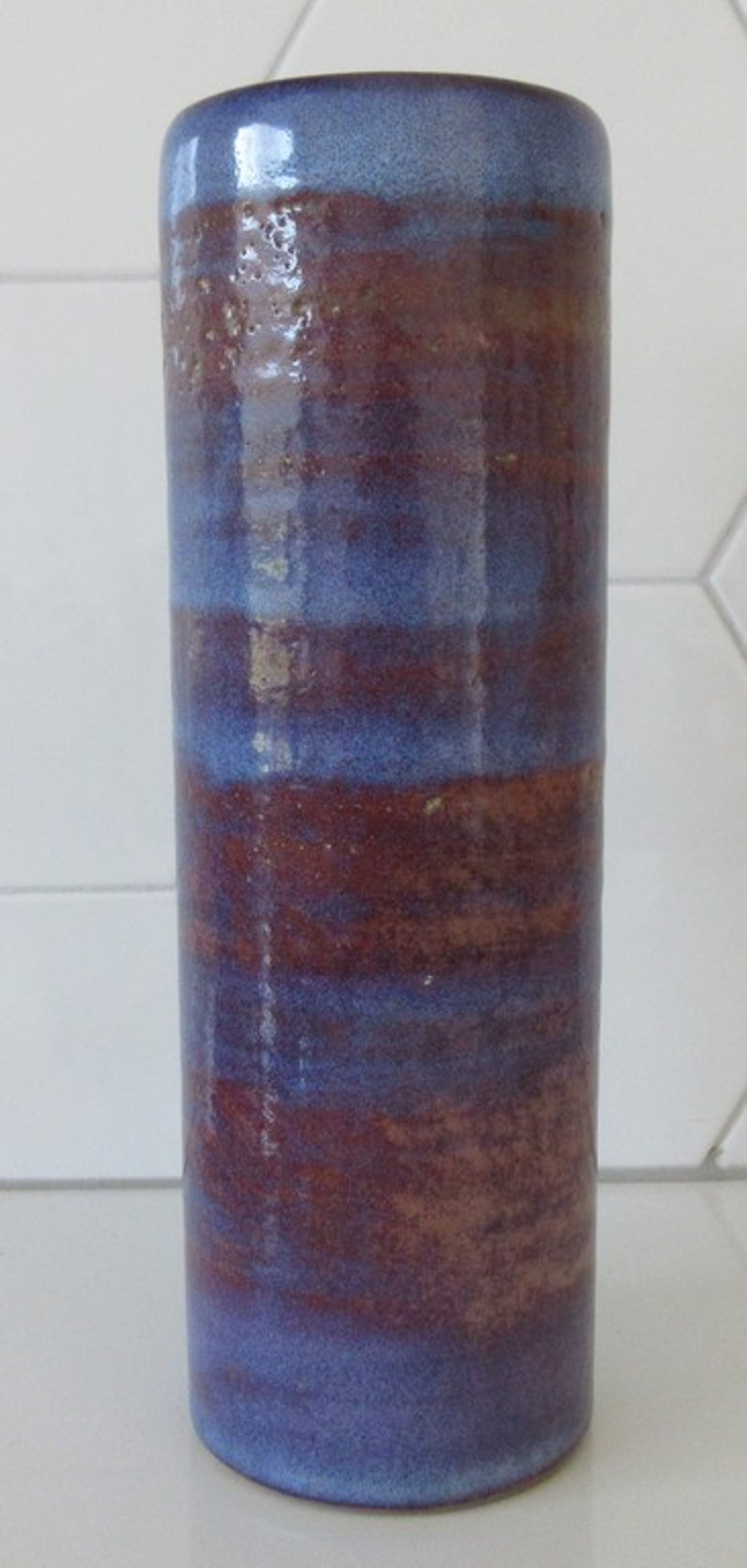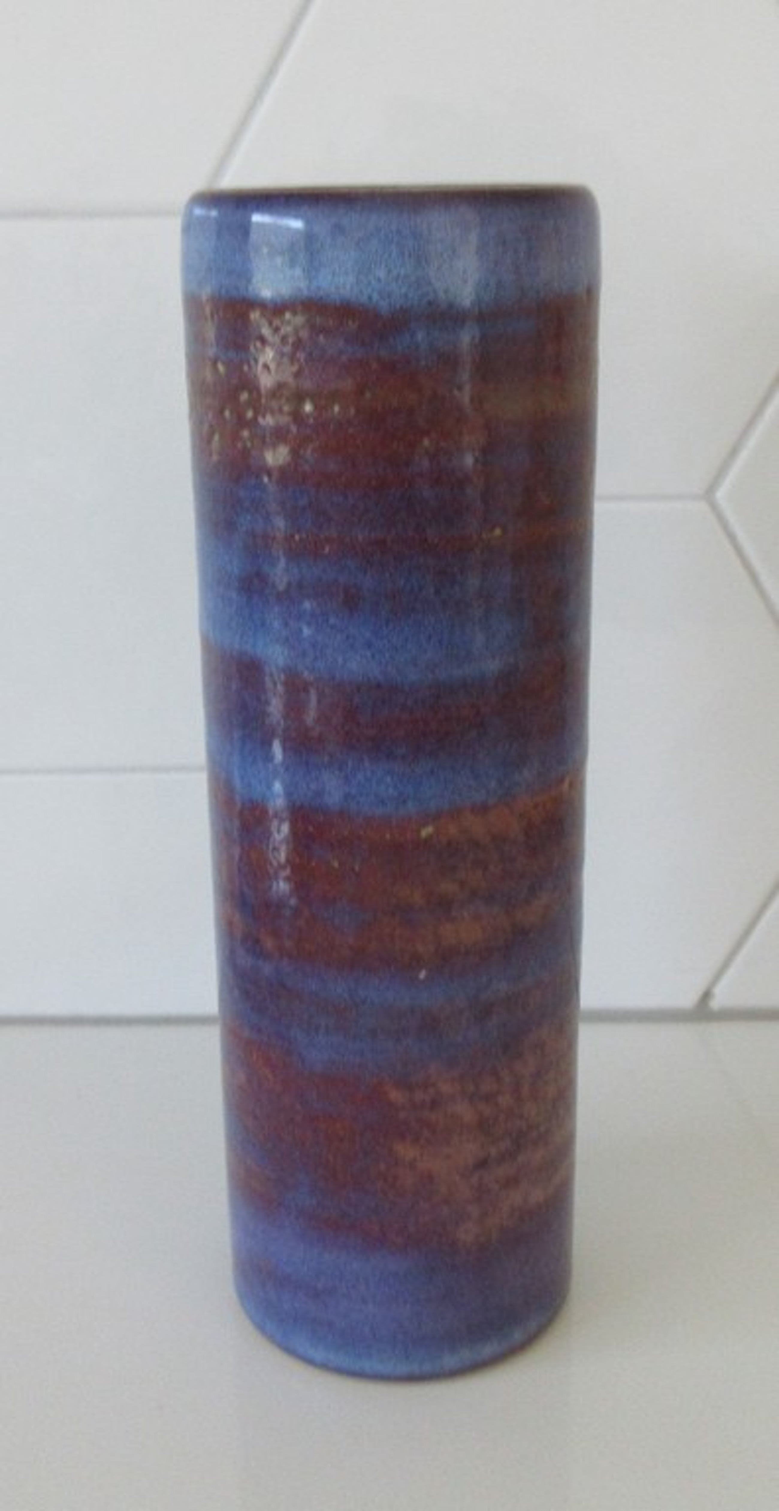 Mobach - Blauwe rode cilindervaas. Prachtig glazuur. In prima onbeschadigde conditie. Aan de onderzijde voorzien van een ingedrukt blindmerk.
