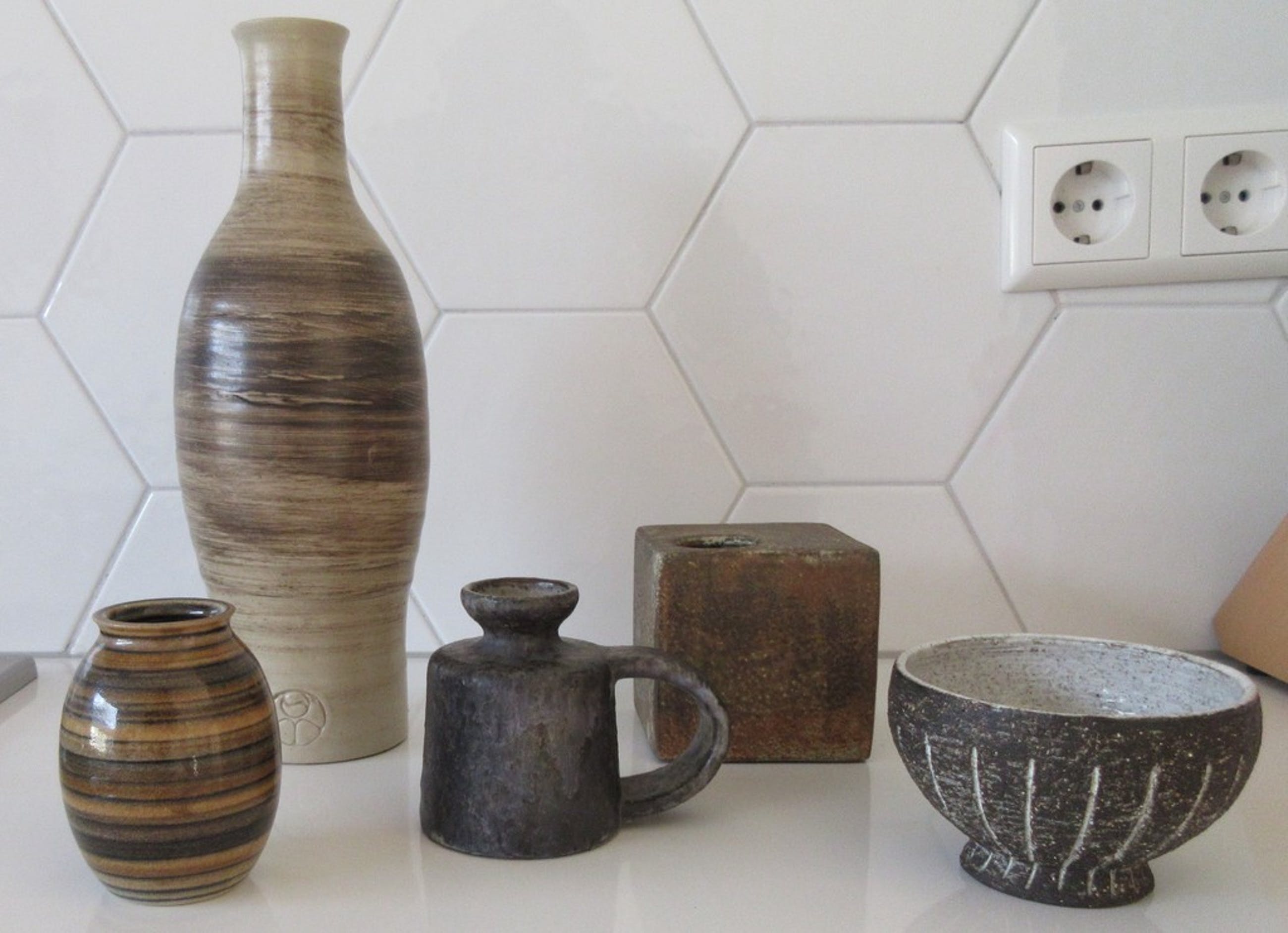 Een lot van vier Mobach vazen en een kom op voet van Westraven.