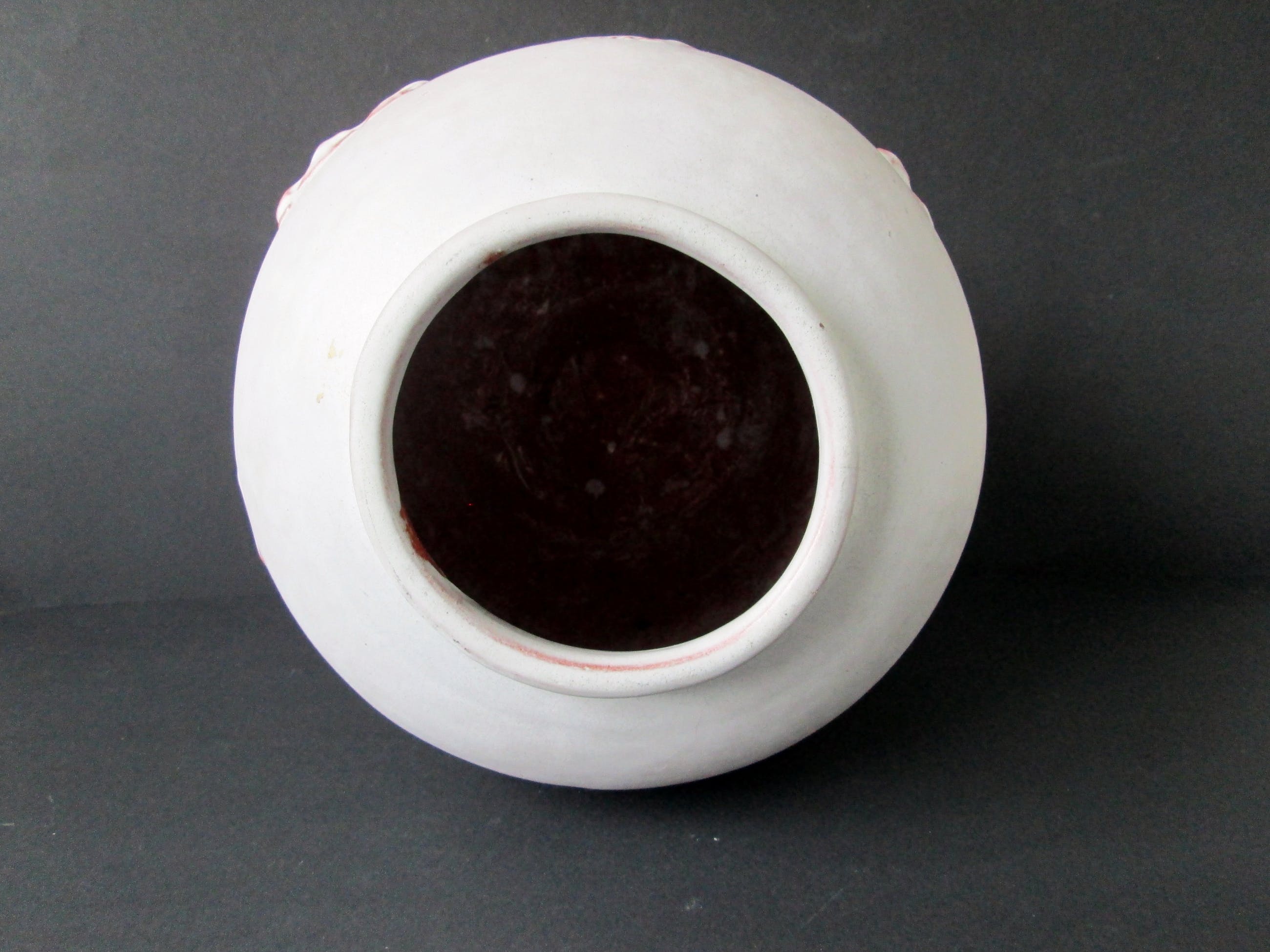 Grijs geglazuurde aardewerk vaas (rode klei) met reliëf-decoratie van kamelen, naar ontwerp van Bouke Mobach (2) en Klaas Mobach (2) in de periode 1950-1965, gesigneerd met reliefstempel Mobach en modelnummer 221