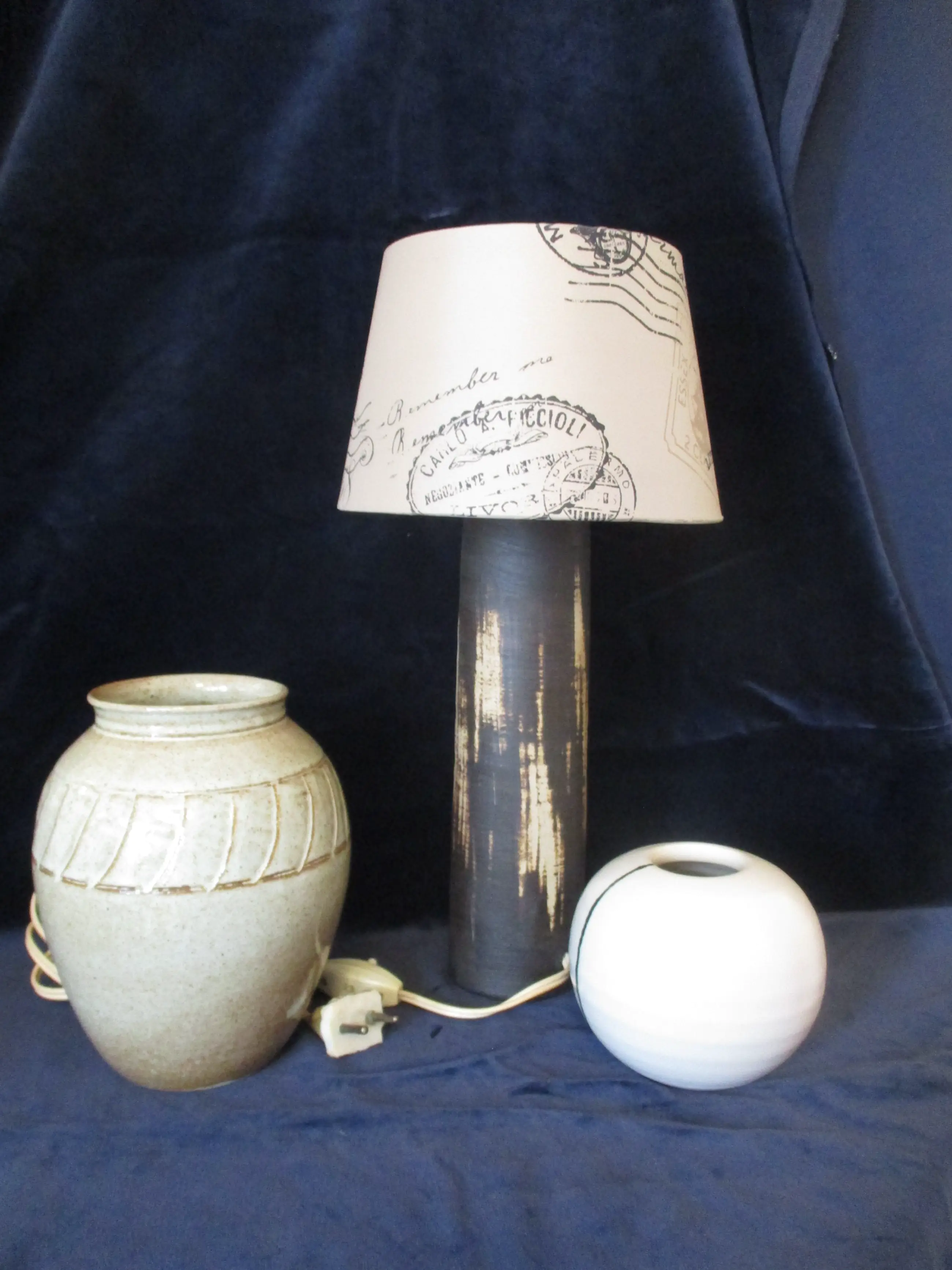 Mobach lampenvoet in mat bruin/beige. Inclusief kapje dit is echter niet origineel. Hoogte voet: 25 cm. en de voet heeft een doorsnede van 8 cm. De voet is aan de onderzijde gesigneerd.