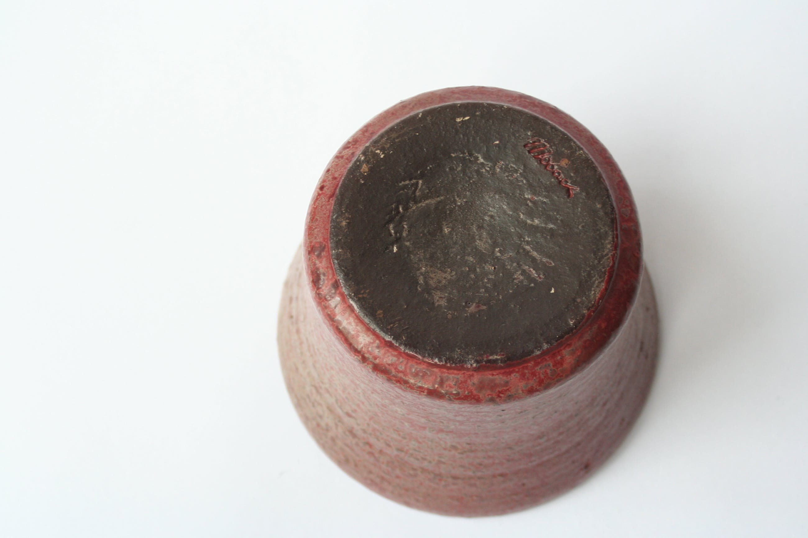 Deze pot heeft aan de onderzijde een diameter van 12,5 cm en aan de bovenzijde 17. Gemerkt met Mobach.