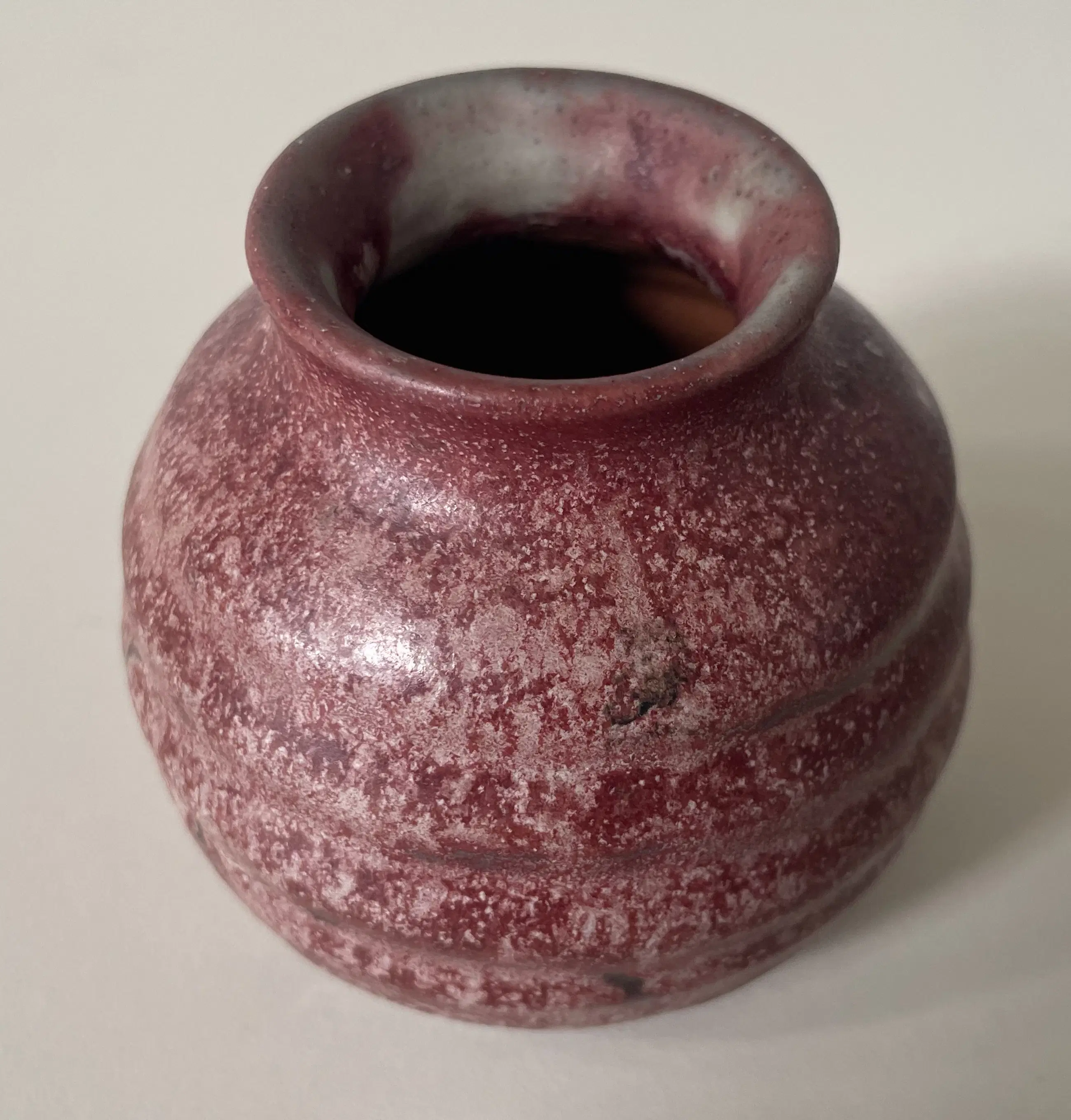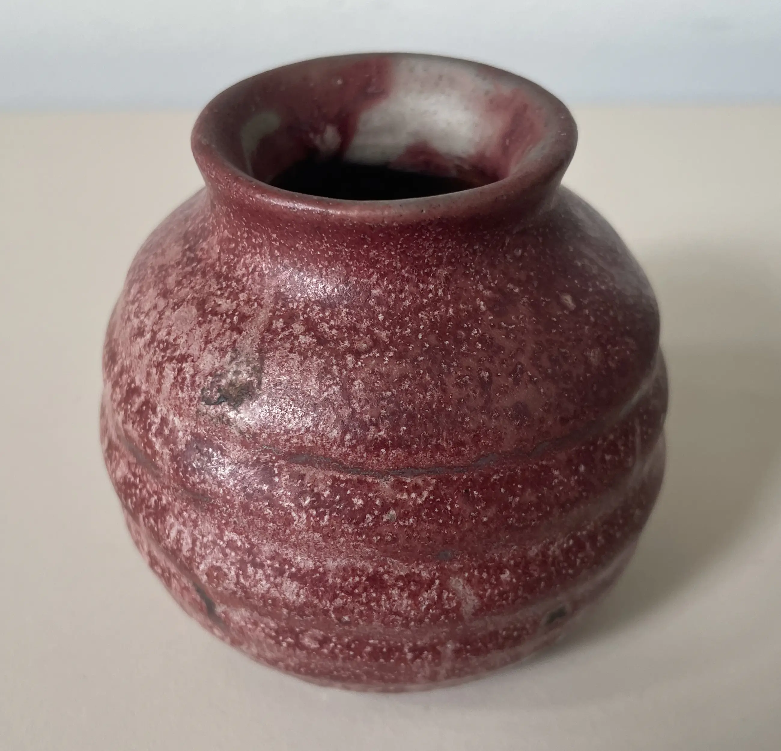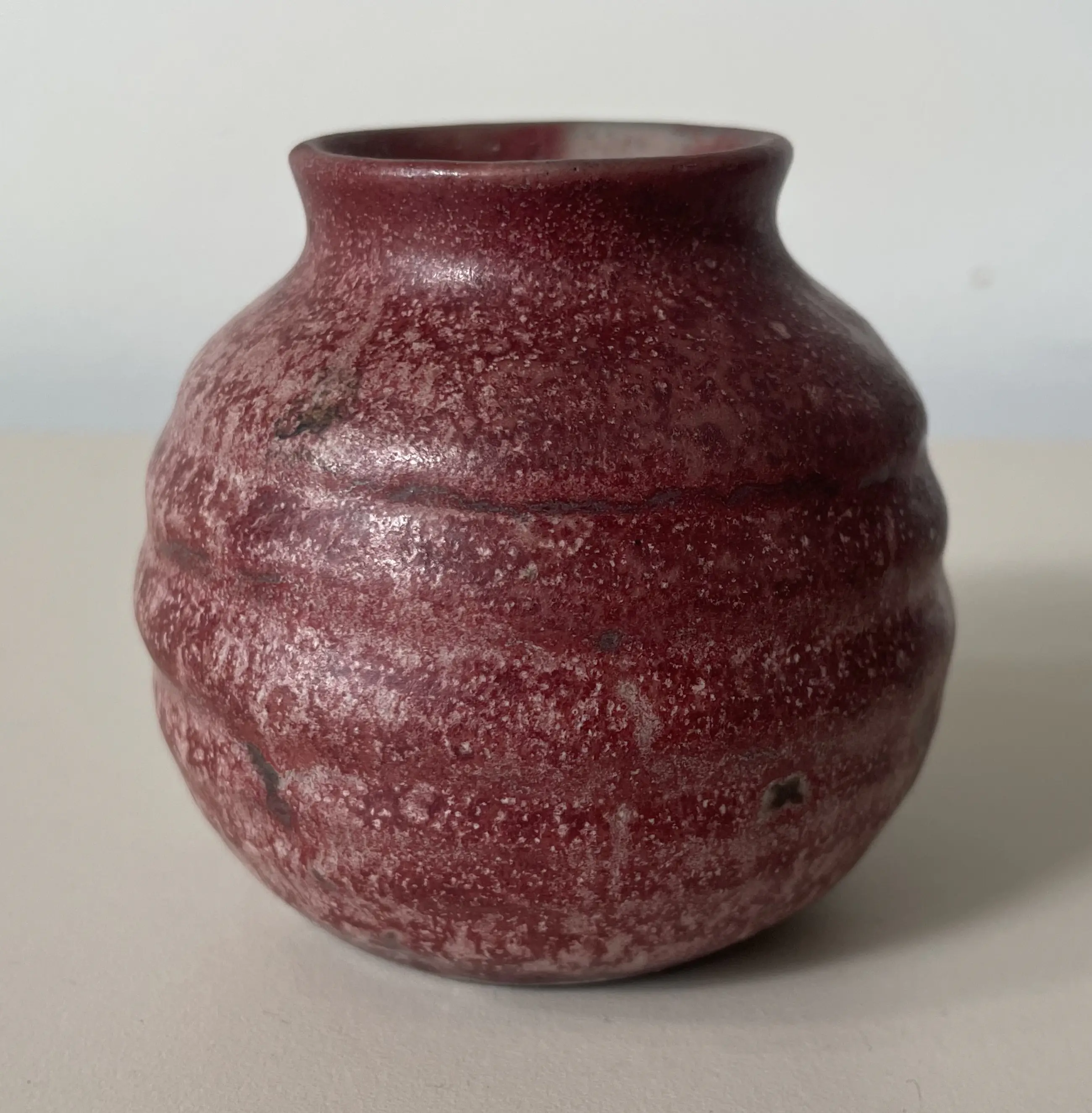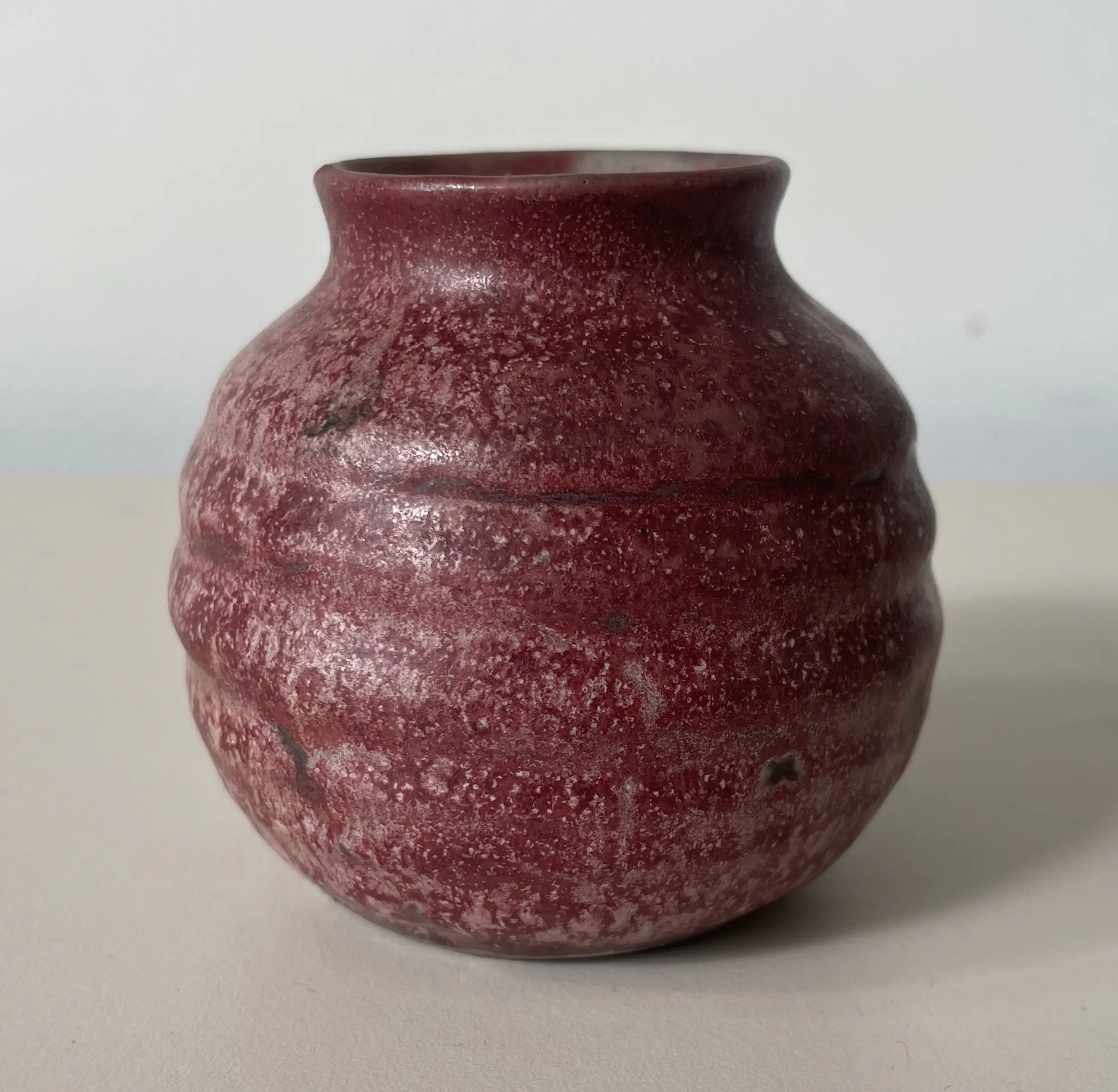 Rood kunstaardewerken ribbelvaasje van Mobach. In perfecte conditie, gemerkt aan de onderkant.