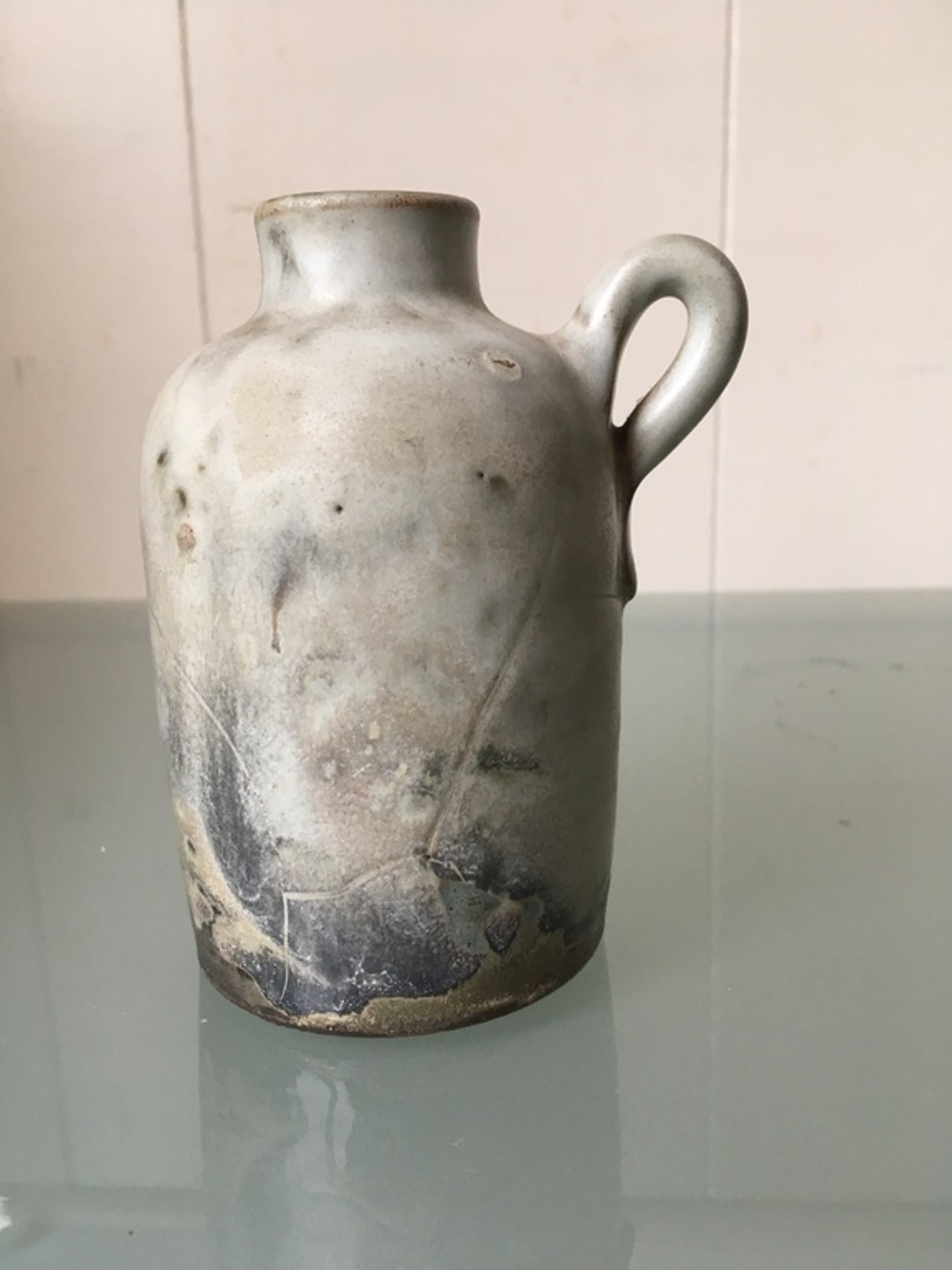 Goed Mobach Utrecht Unica oorvaasje met interessant glazuur in diverse grijstinten - 2e helft 20e eeuw