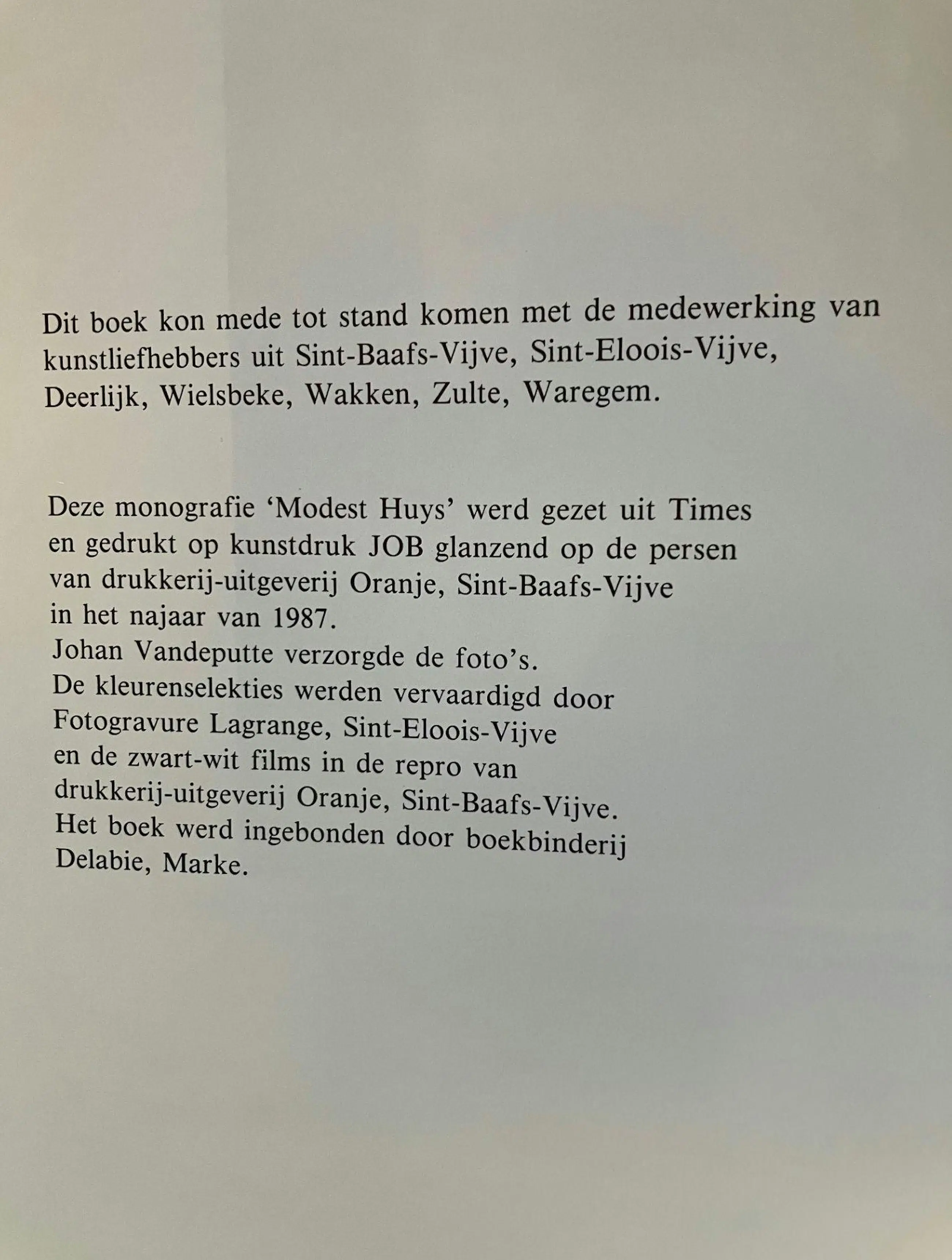 Hardcover boek, linnen kaft met blinddruk van naam kunstenaar, gelamineerde stofwikkel. 62 kleurillustraties binnenin, 5-tal zwart-wit illustraties. Samengesteld door Rik en Paul Huys. Gedrukt in 1987 op JOB kunstdrukpapier, garengenaaid gebonden. ISBN 90-6661 017-4 - D/1987/2726/1