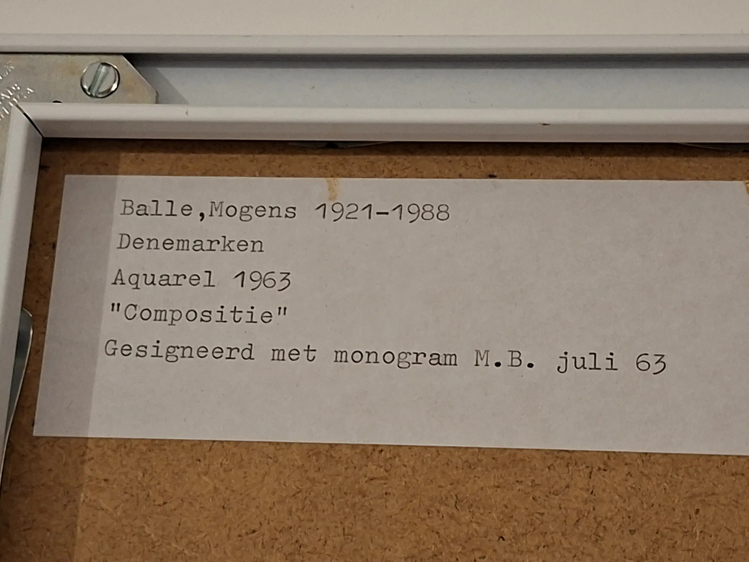 origineel kleurrijk werk op papier van Mogens Balle in zijn typische stijl.