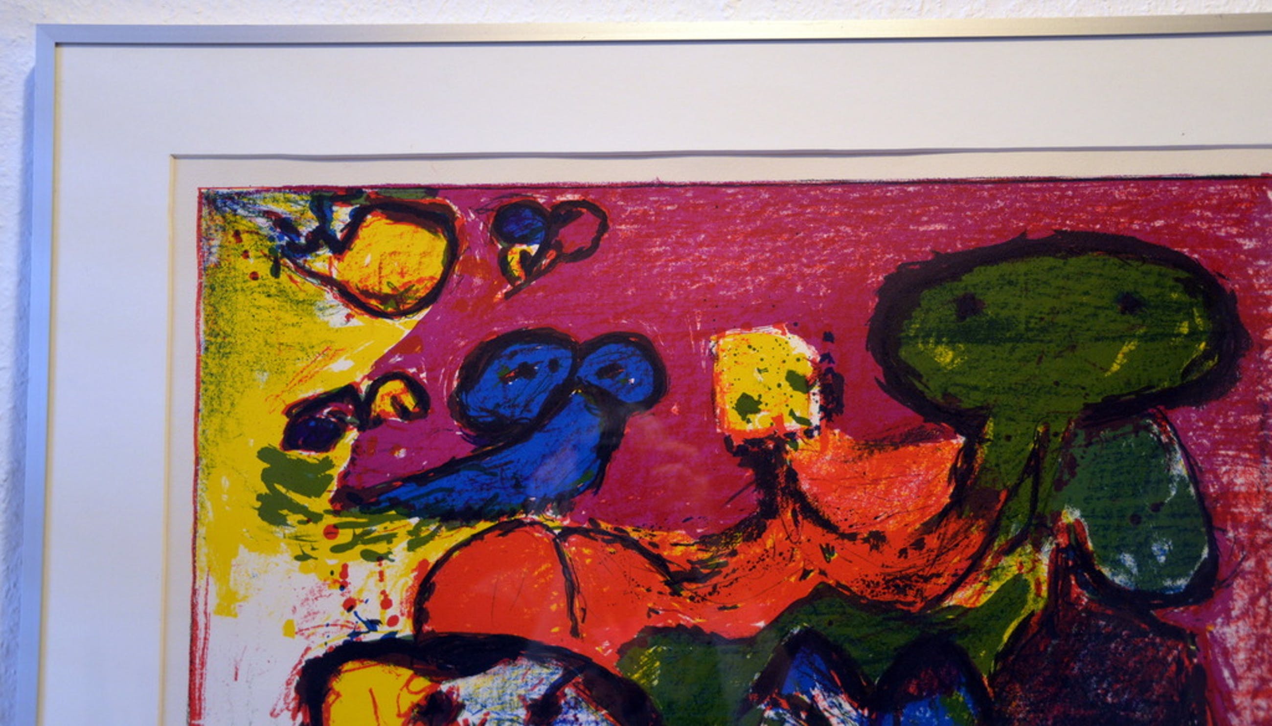 Prachtige - redelijk grote - originele kleurenlitho ( zeefdruk ) van de Deense CoBrA kunstenaar Mogens Balle. Het betreft hier een H.C. exemplaar van de kunstenaar zelf - zonder titel. Gemaakt in de typische, eigen CoBrA stijl van Mogens Balle. Kleurrijk en vol met de meest intrigerende fantasiefiguren.