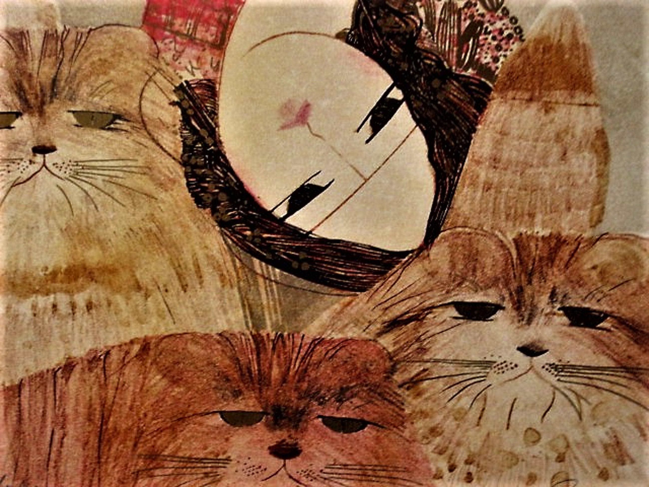 Schilder, graveur, illustrator, Dariush schildert graag de menselijke figuur, koppels, katten en andere dieren met vals naïeve verve en verwijzingen naar Perzische miniaturen.