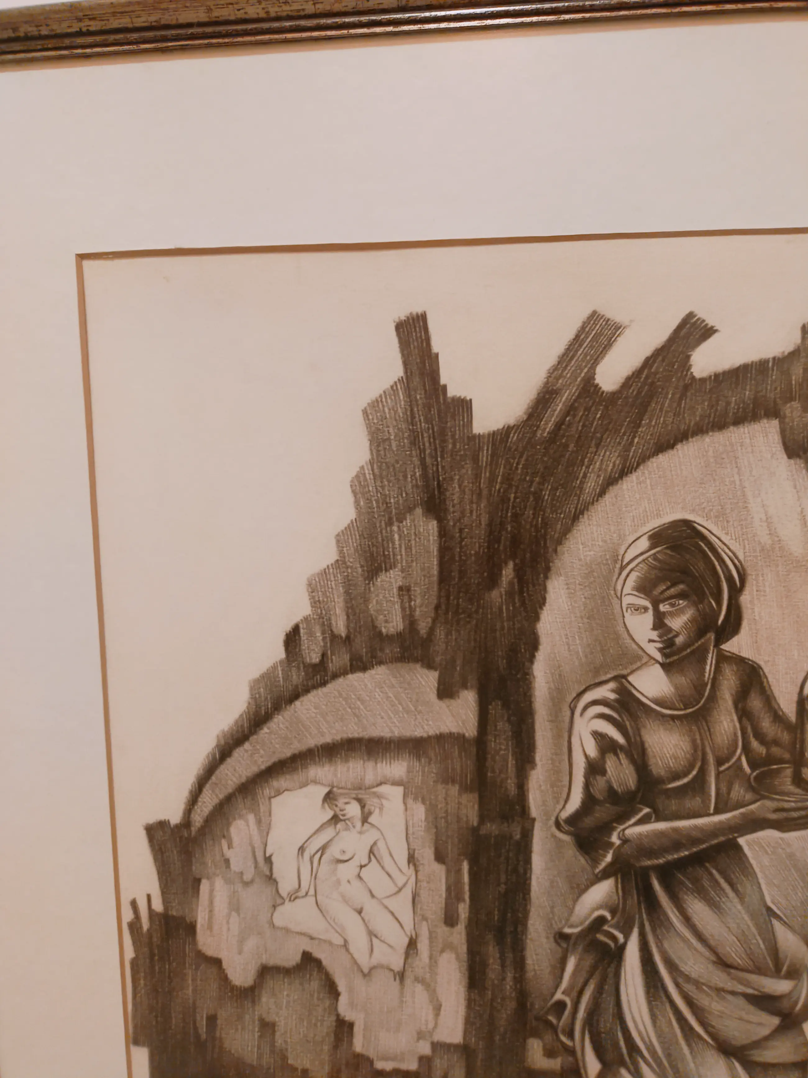 Originele tekening van Mon Thomas Ingekaderd (kader 82x63,5cm) Prachtige staat