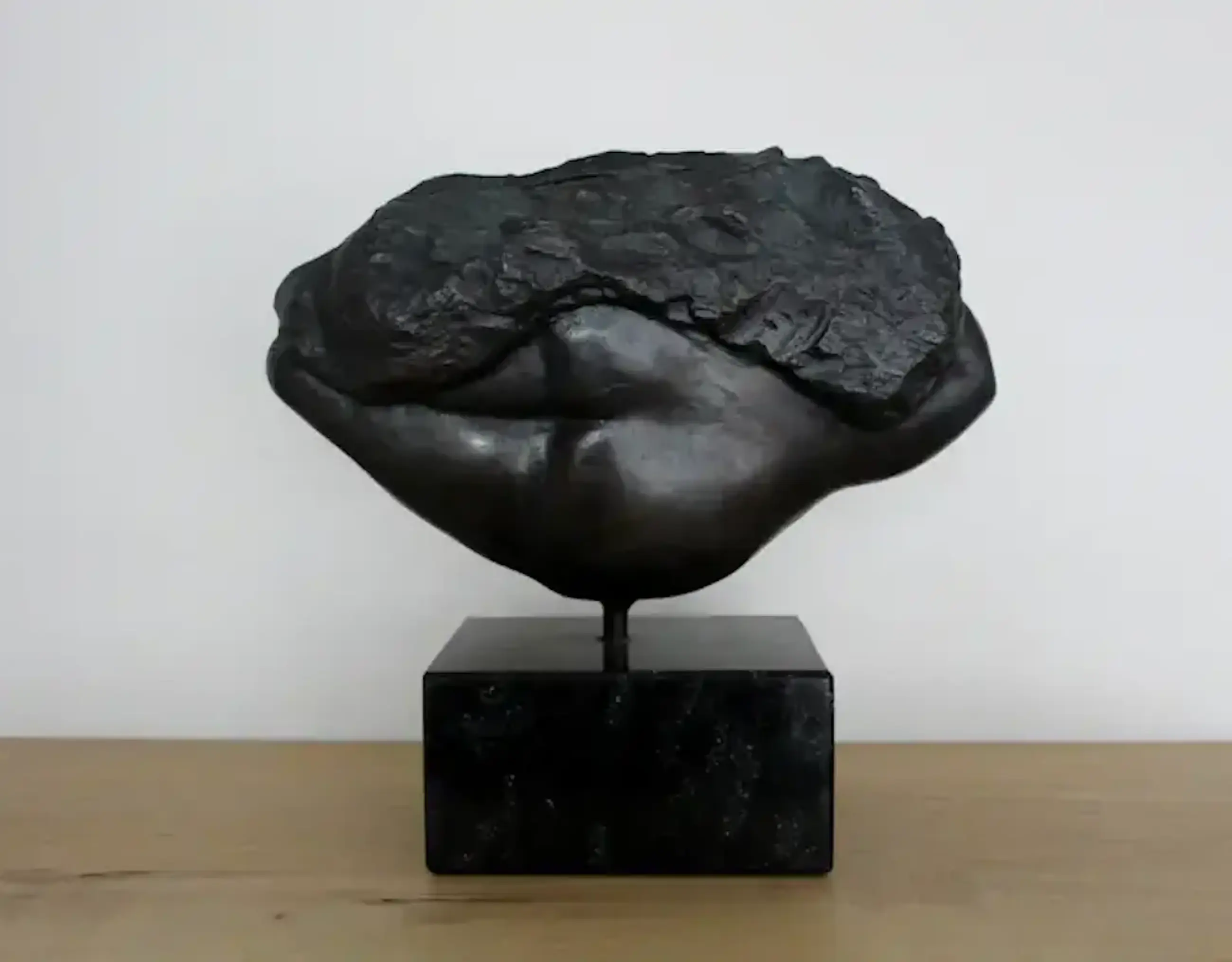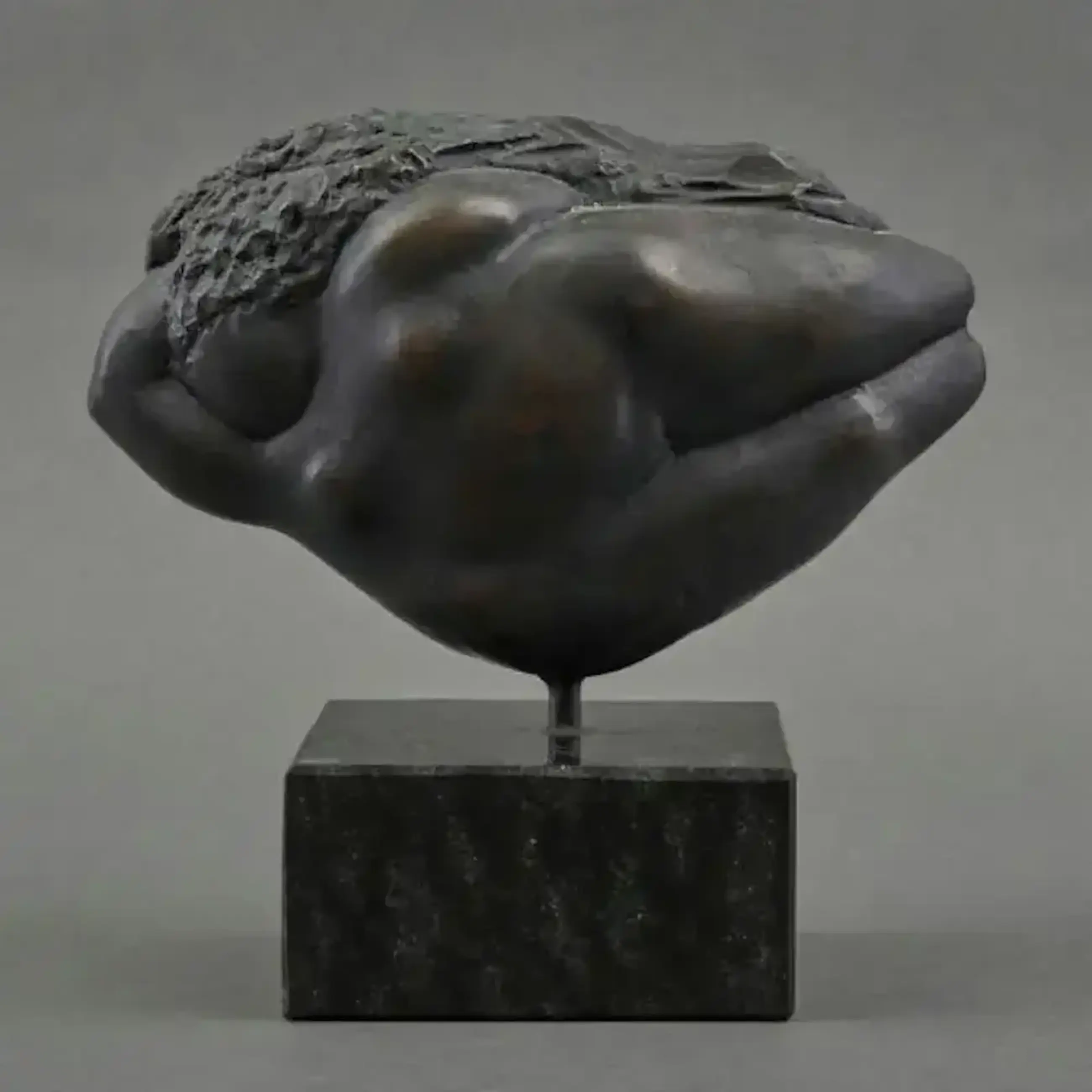 Bronzen beeld van Monica van Dael. Voorstelling van zwevend naakt. Afmetingen beeld: H21 x b23cm x d7cm. Afmetingen sokkel: H10 x b11.5cm. Het beeld is, onderaan, gesigneerd door de kunstenares.