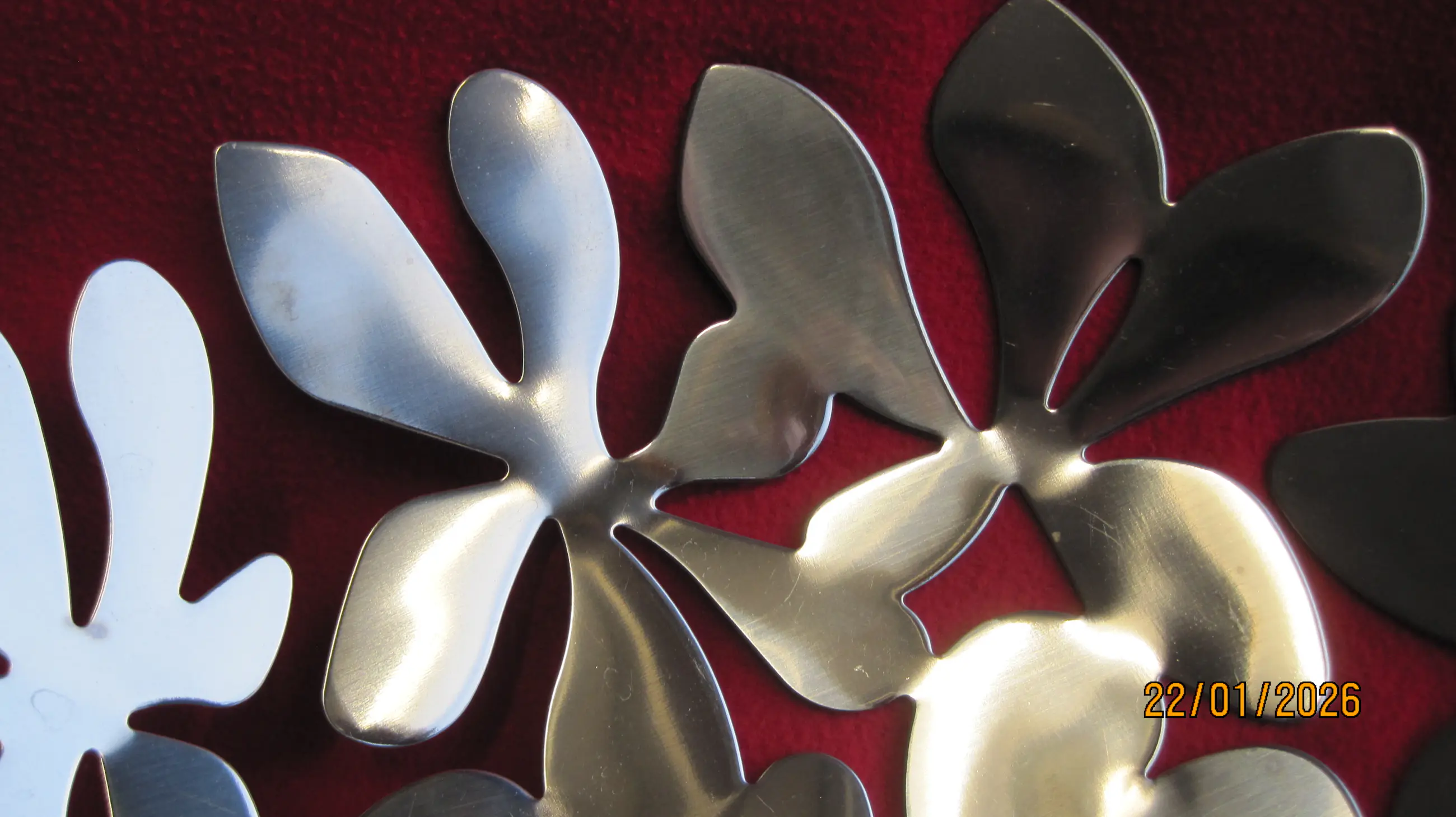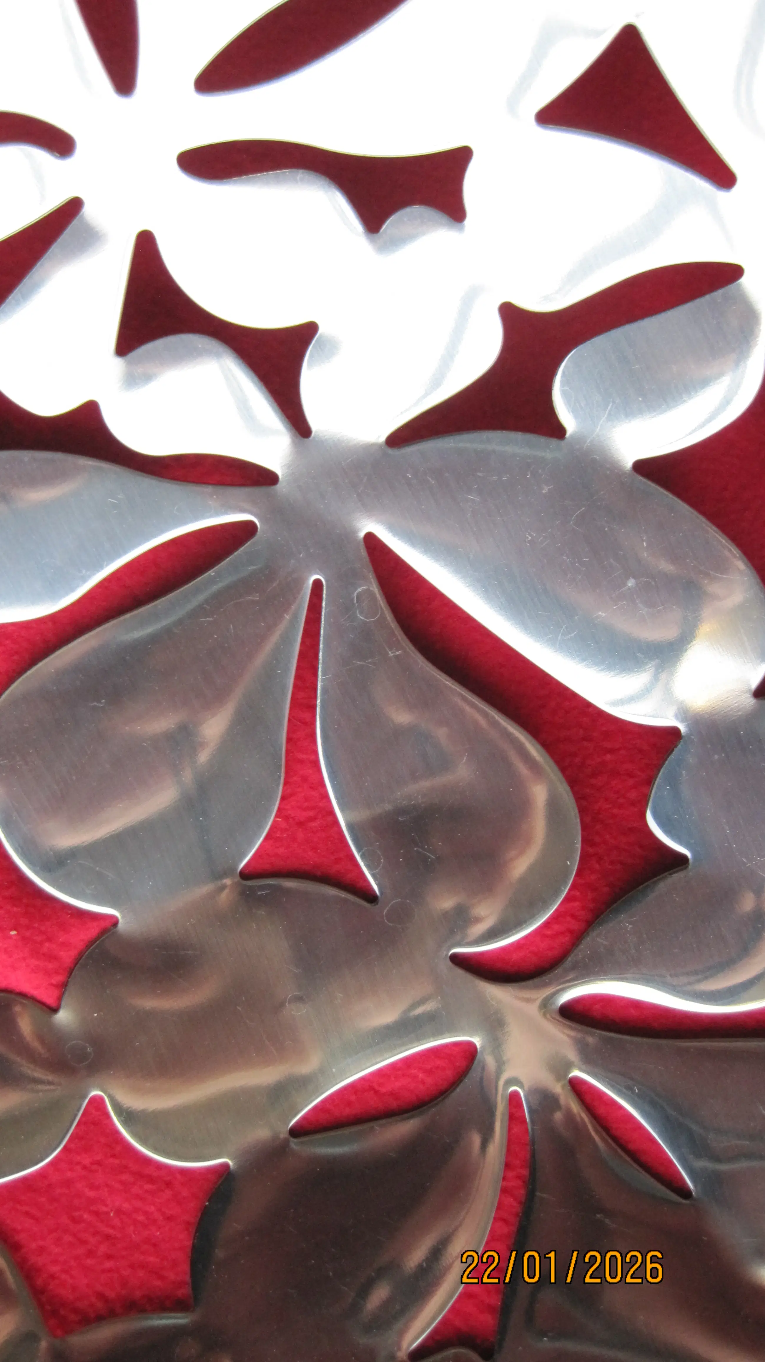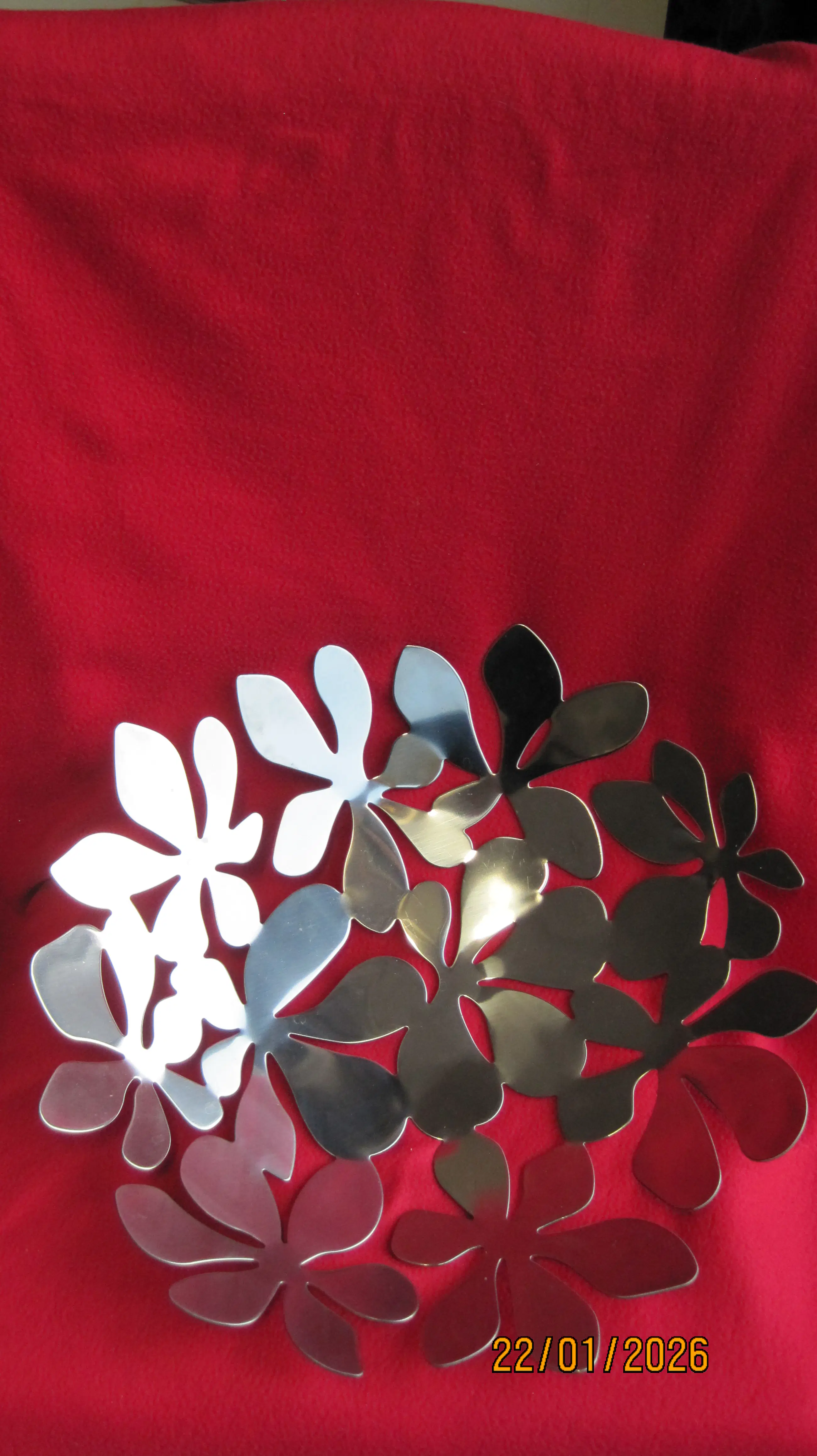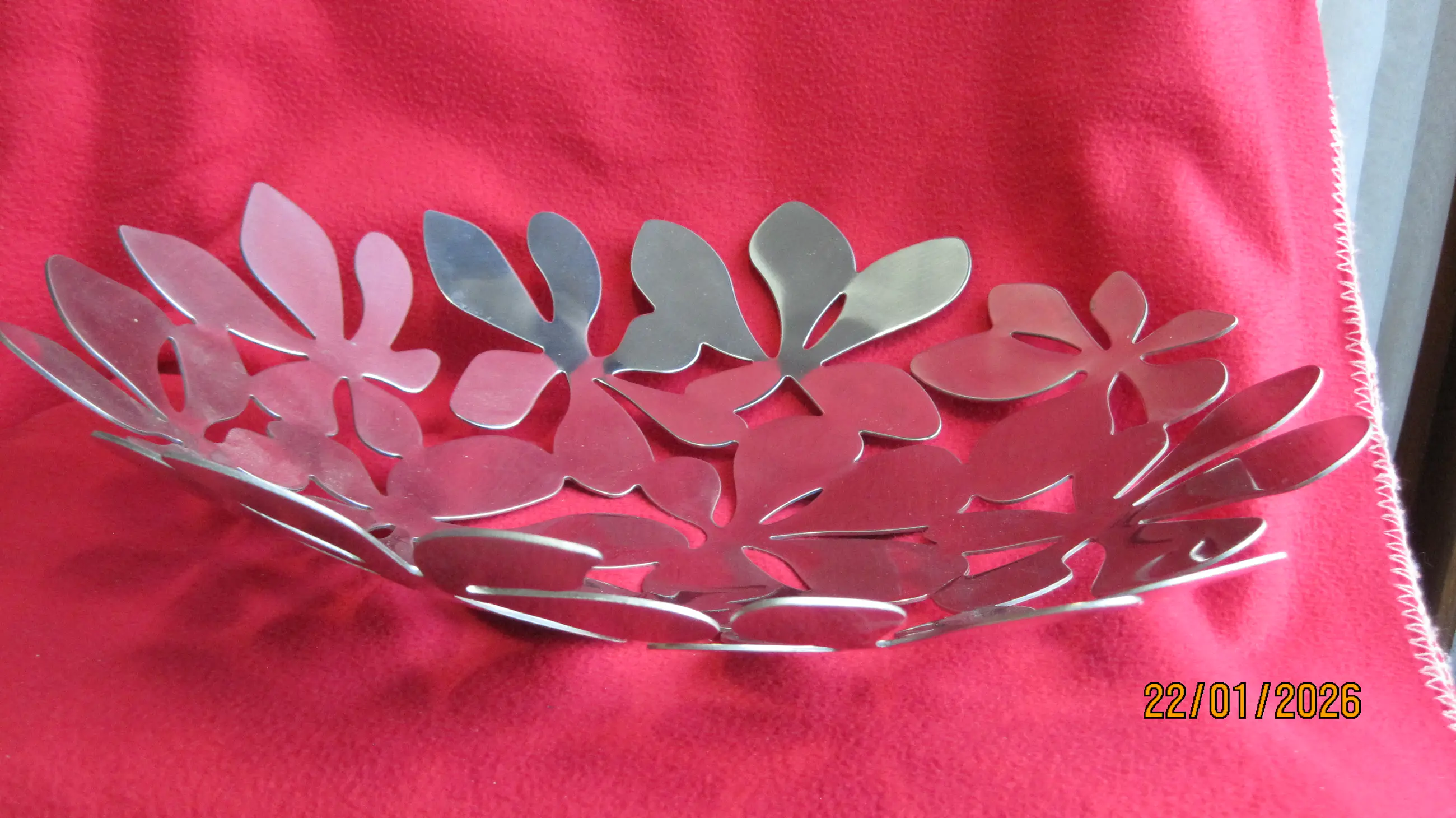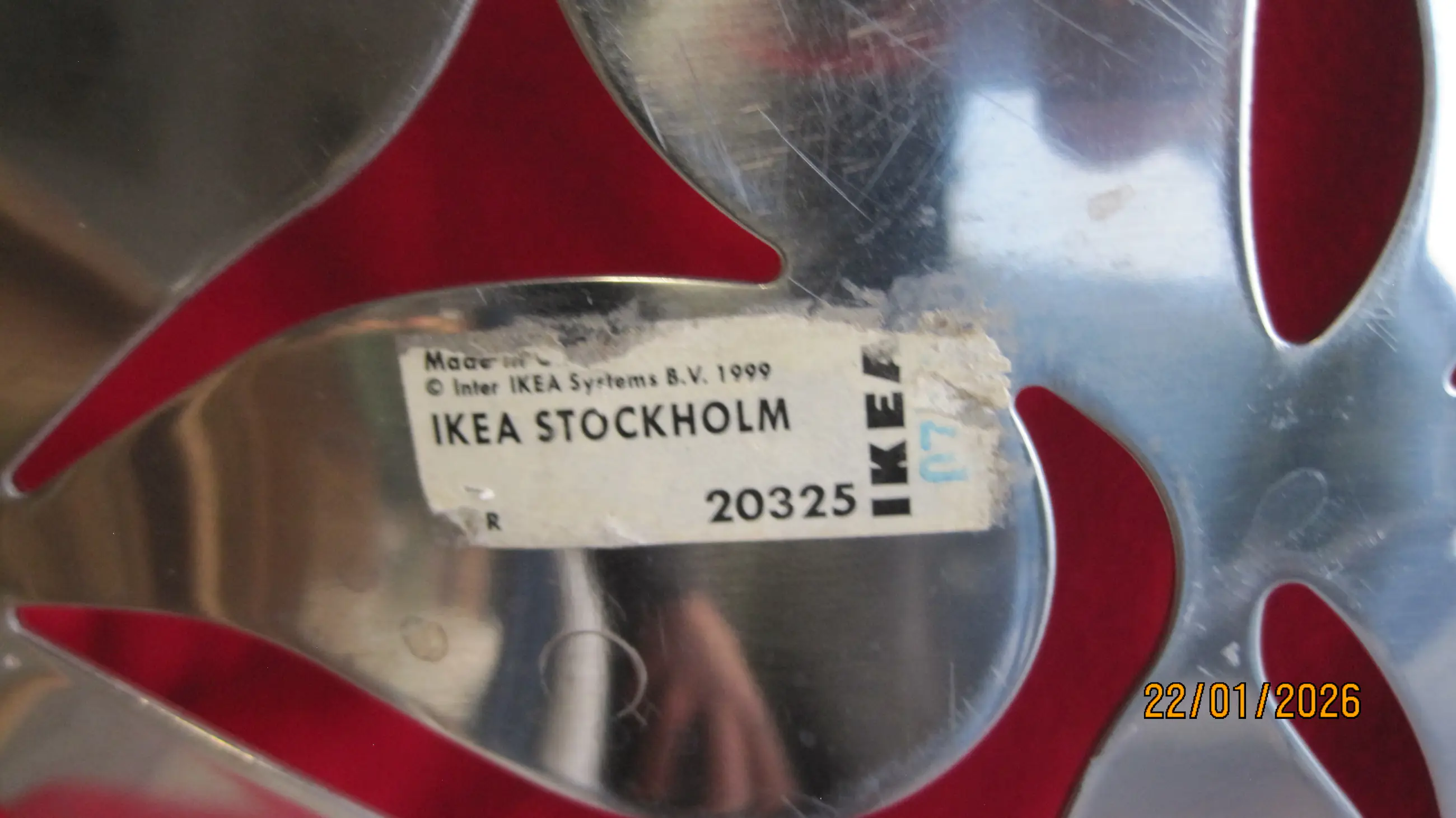 Prachtige vintage Stockholm schaal ontworpen door Monika Mulder. Deze iconische schaal is gemaakt van roestvrij staal en heeft een uniek open bloemmotief. De schaal is onderdeel van de Stockholm collectie en werd oorspronkelijk ontworpen in 1999 en later opgenomen in de 2006 collectie. Met een diameter van ongeveer 42-43 cm is dit een echte eyecatcher. Een gewild designitem voor liefhebbers van vintage IKEA!