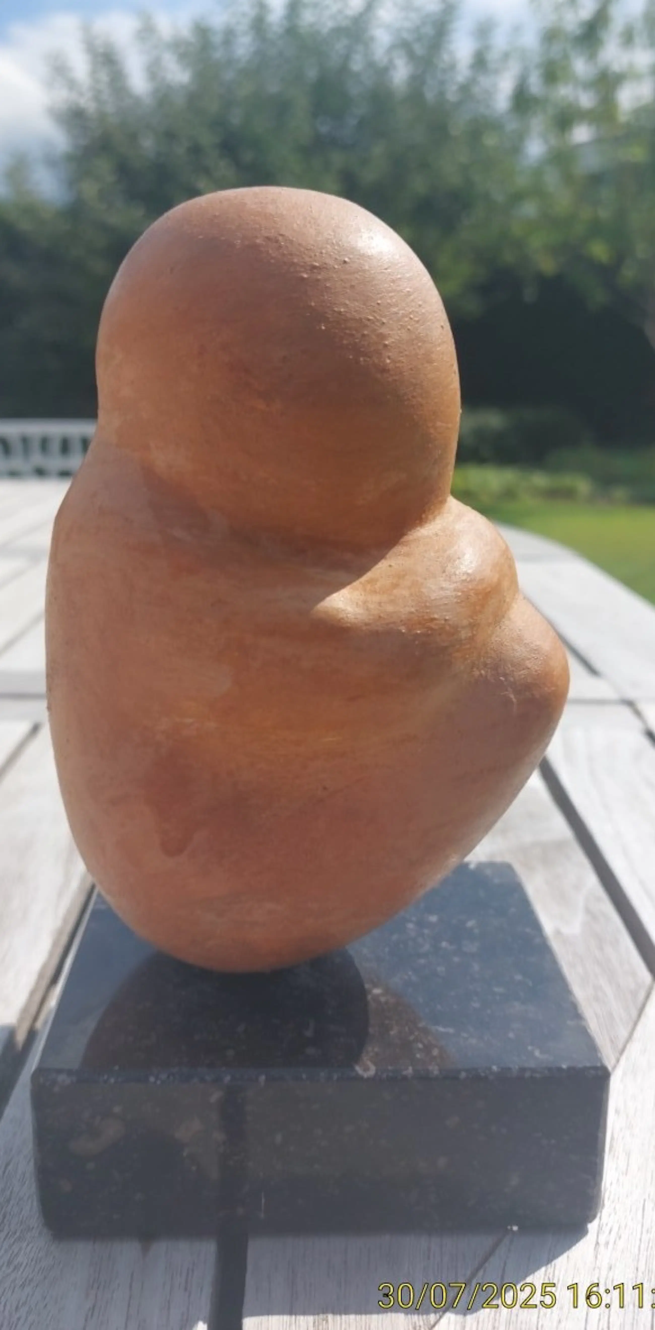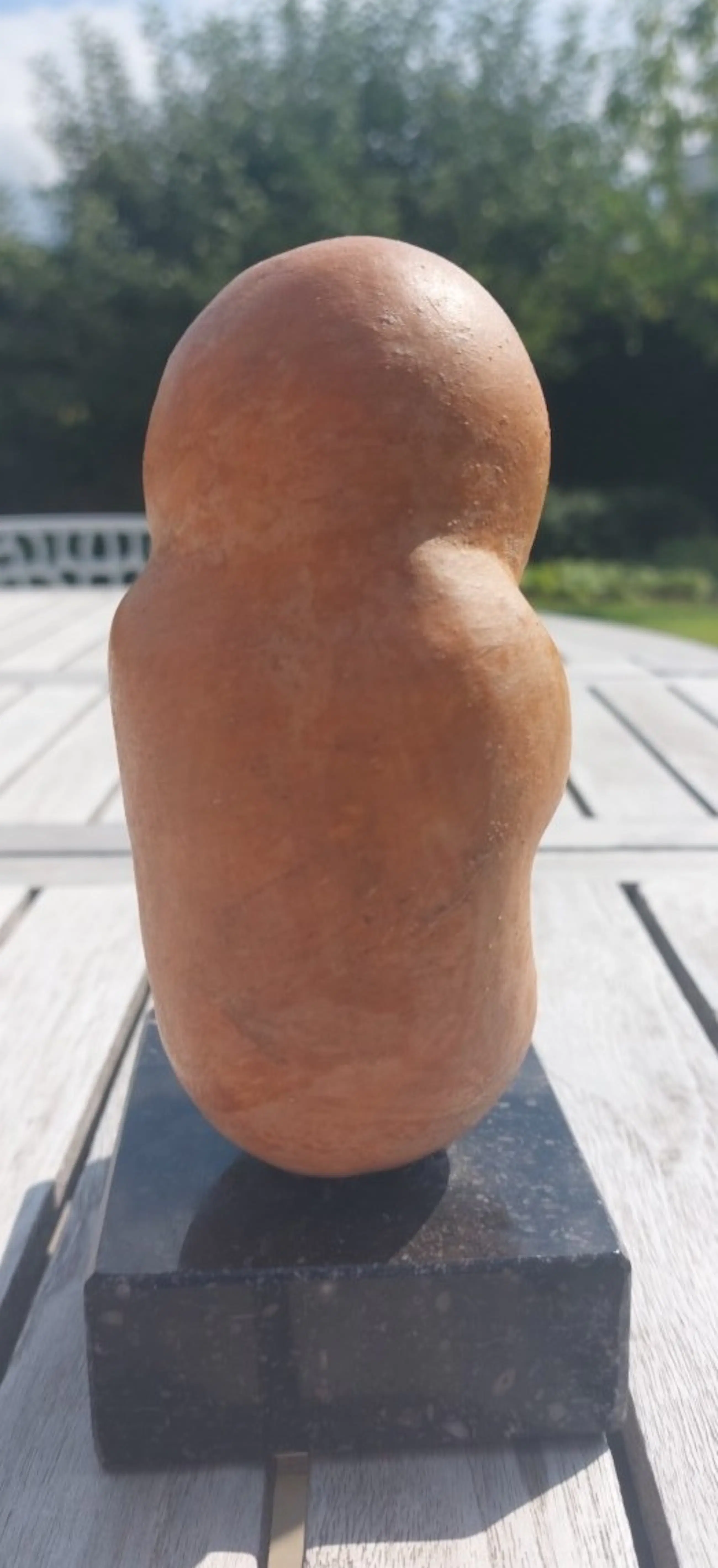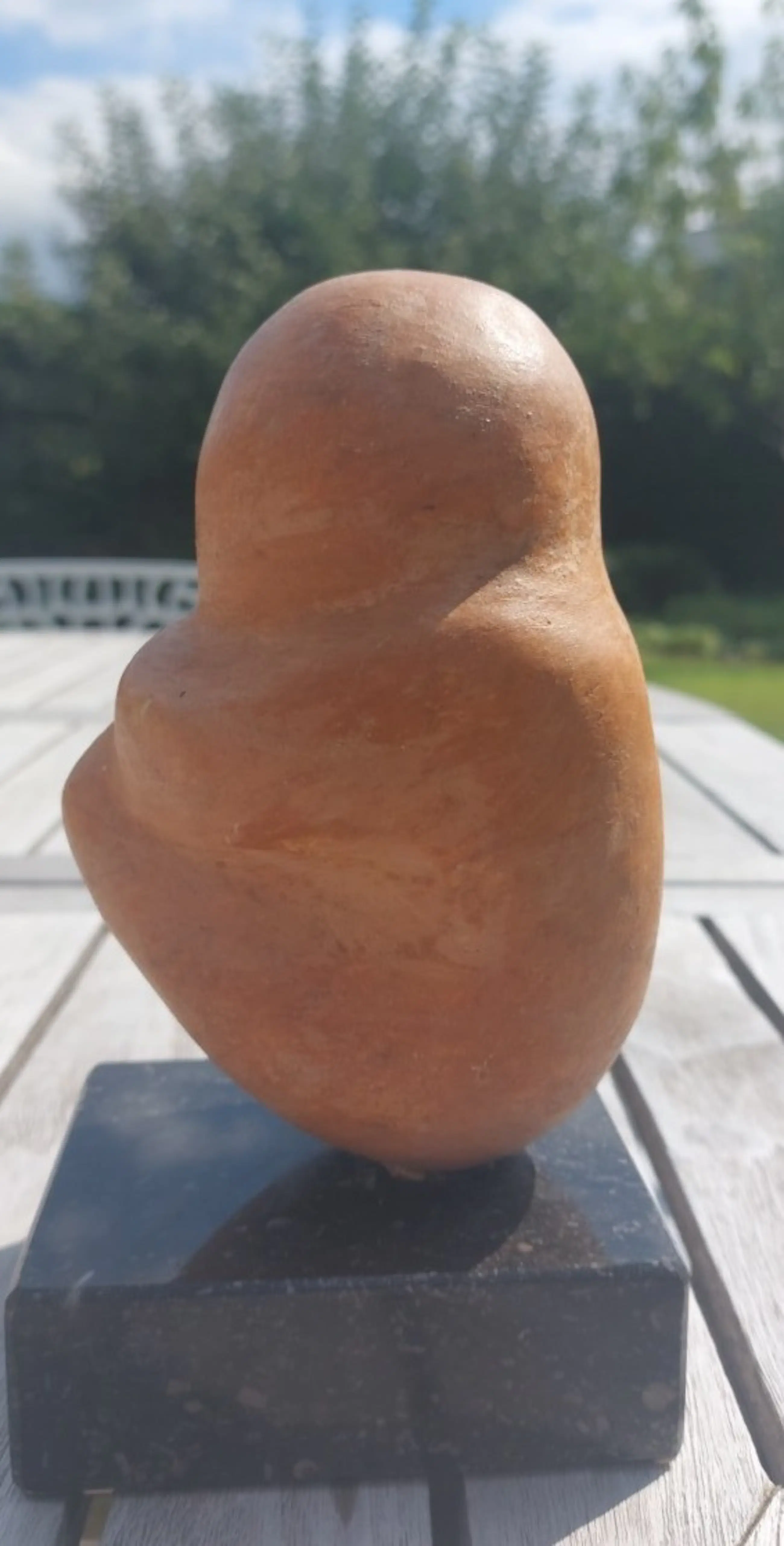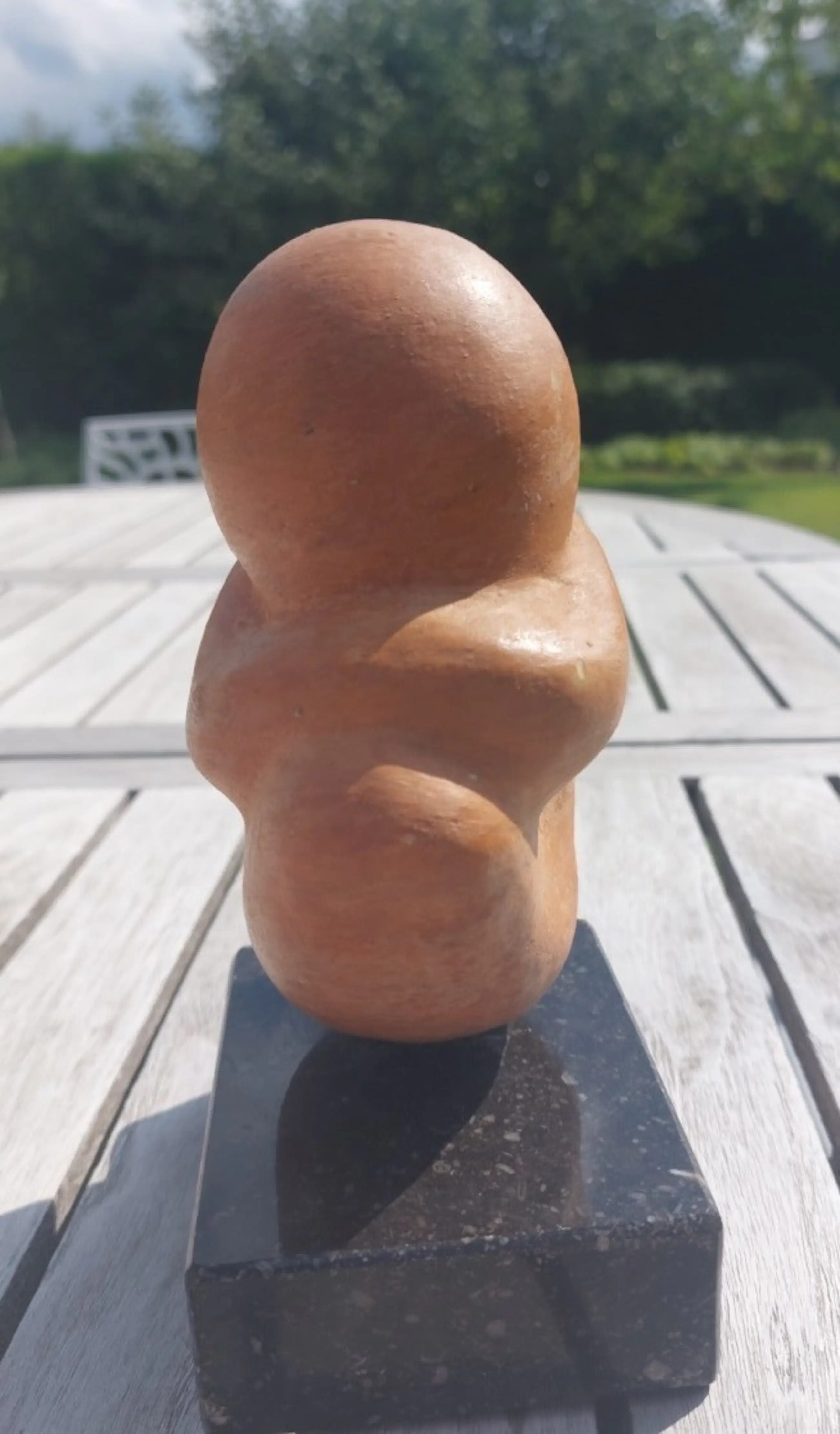 keramieken beeldje goede staat gesigneerd sokkel in gepolierd graniet