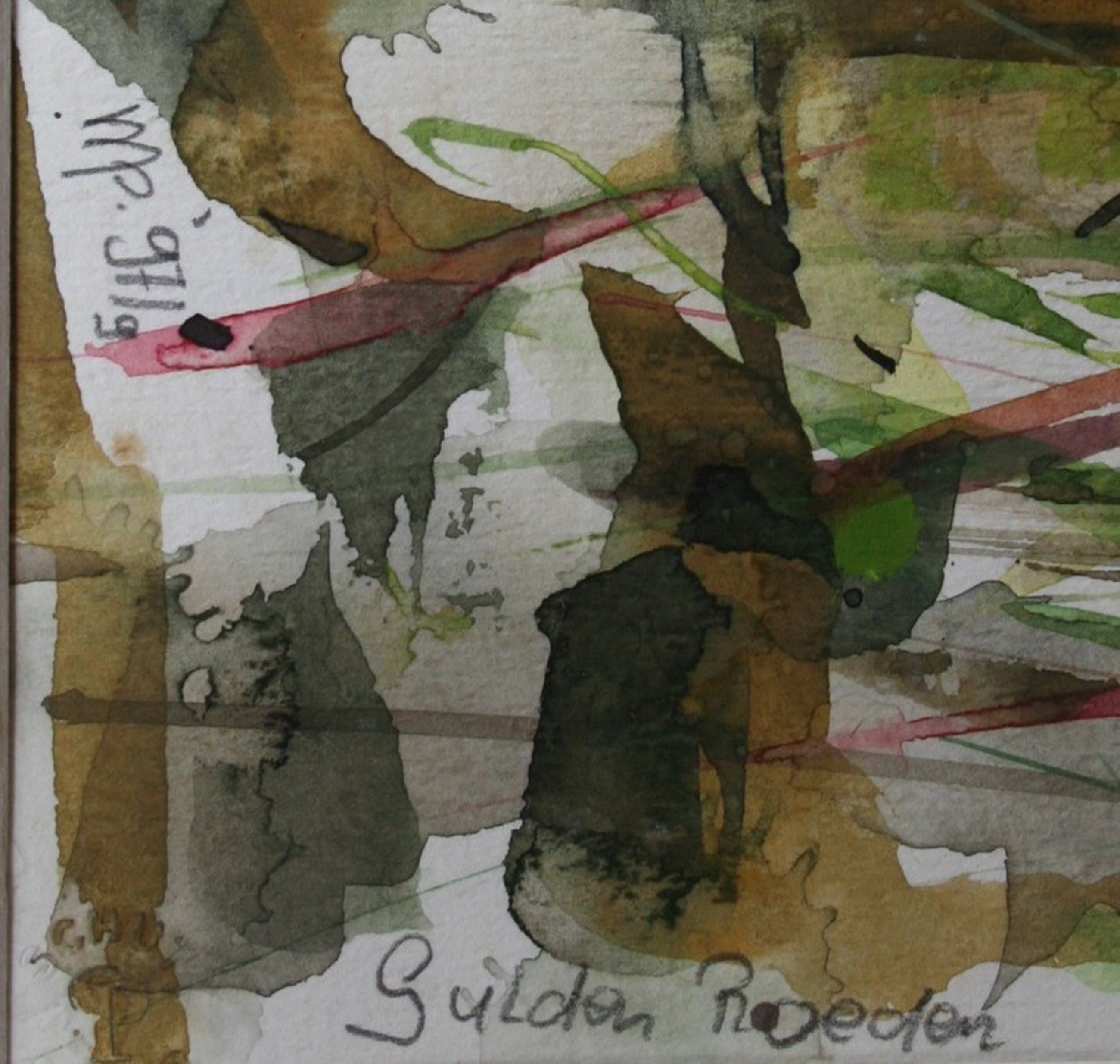 Grote aquarel van de planten in de tuin van de kunstenares in Dordrecht.