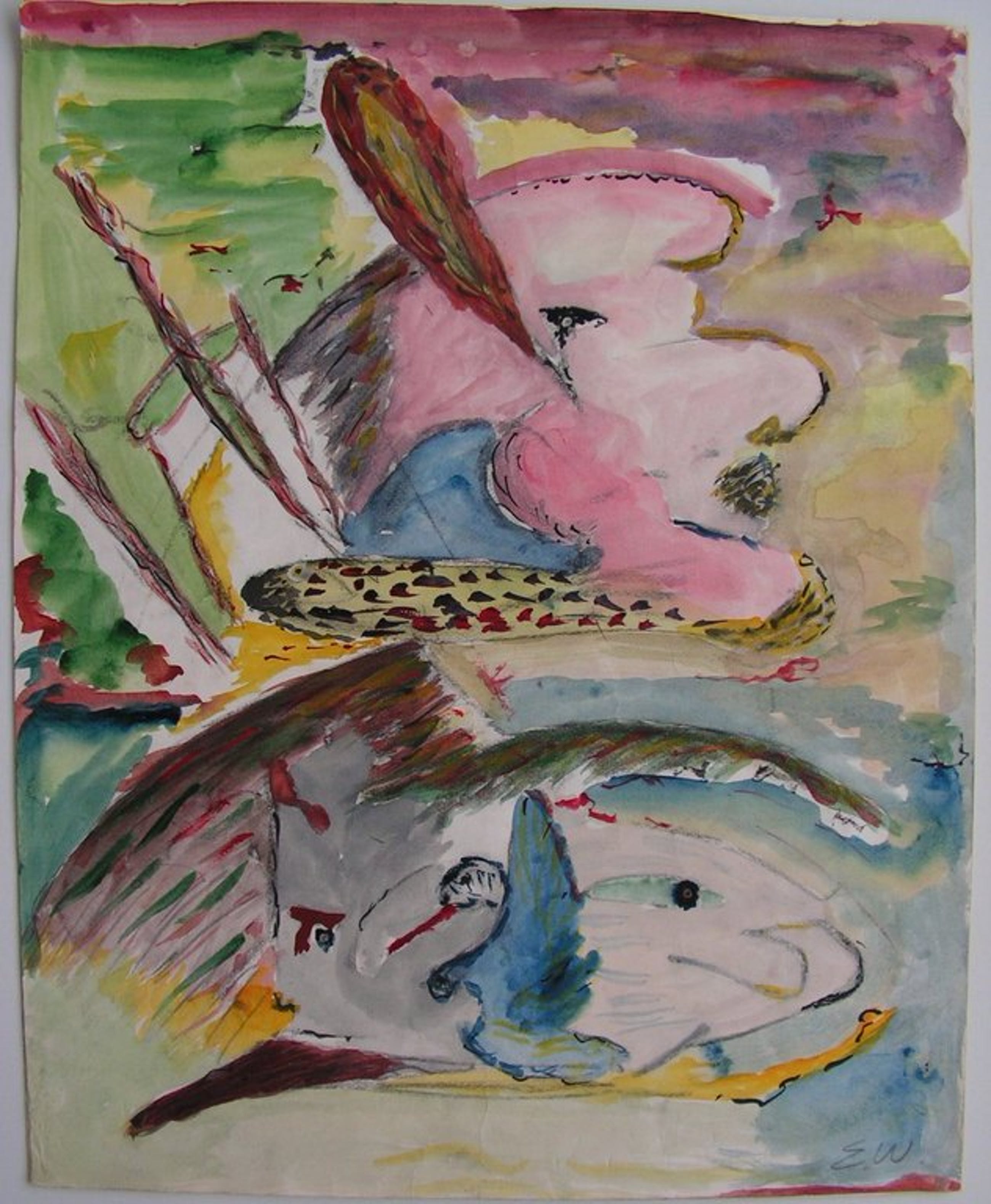 E.W. vervaardigde dit aan de Horra Cobra aandoende aquarel. Afmetingen; 49,5 x 39,5 cm. Conditie is goed. Verzending aangetekend in koker Nederland 10 €, EU 17 € en wereled 27 €.