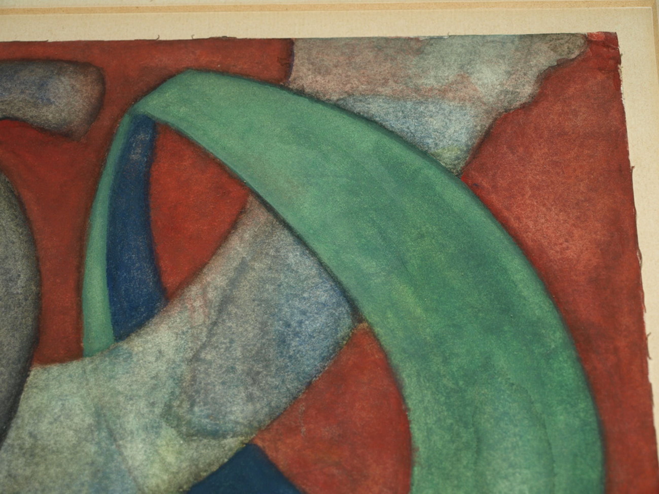 Een aquarel uit 1989 met een abstracte voorstelling van 2 ringen ....(trouwringen?)