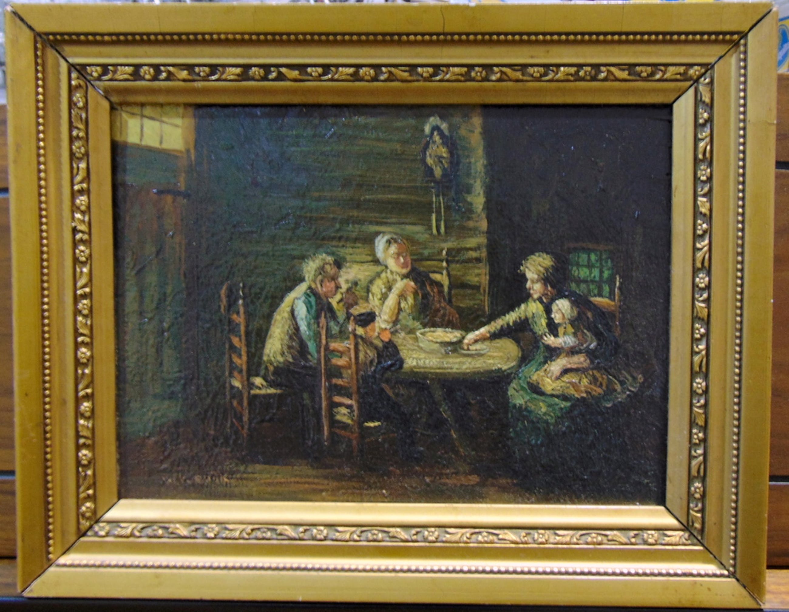 Sfeervol werkje van onbekende kunstenaar. Olieverf op paneel in nette lijst. Geheel in mooie staat.