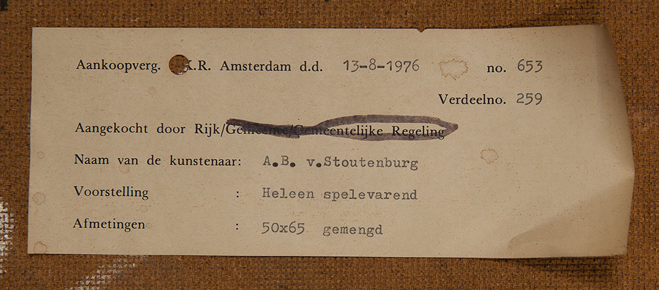 Herkomst: BKR Amsterdam (Het kunstwerk is afgevoerd uit de rijkscollectie in 2018)