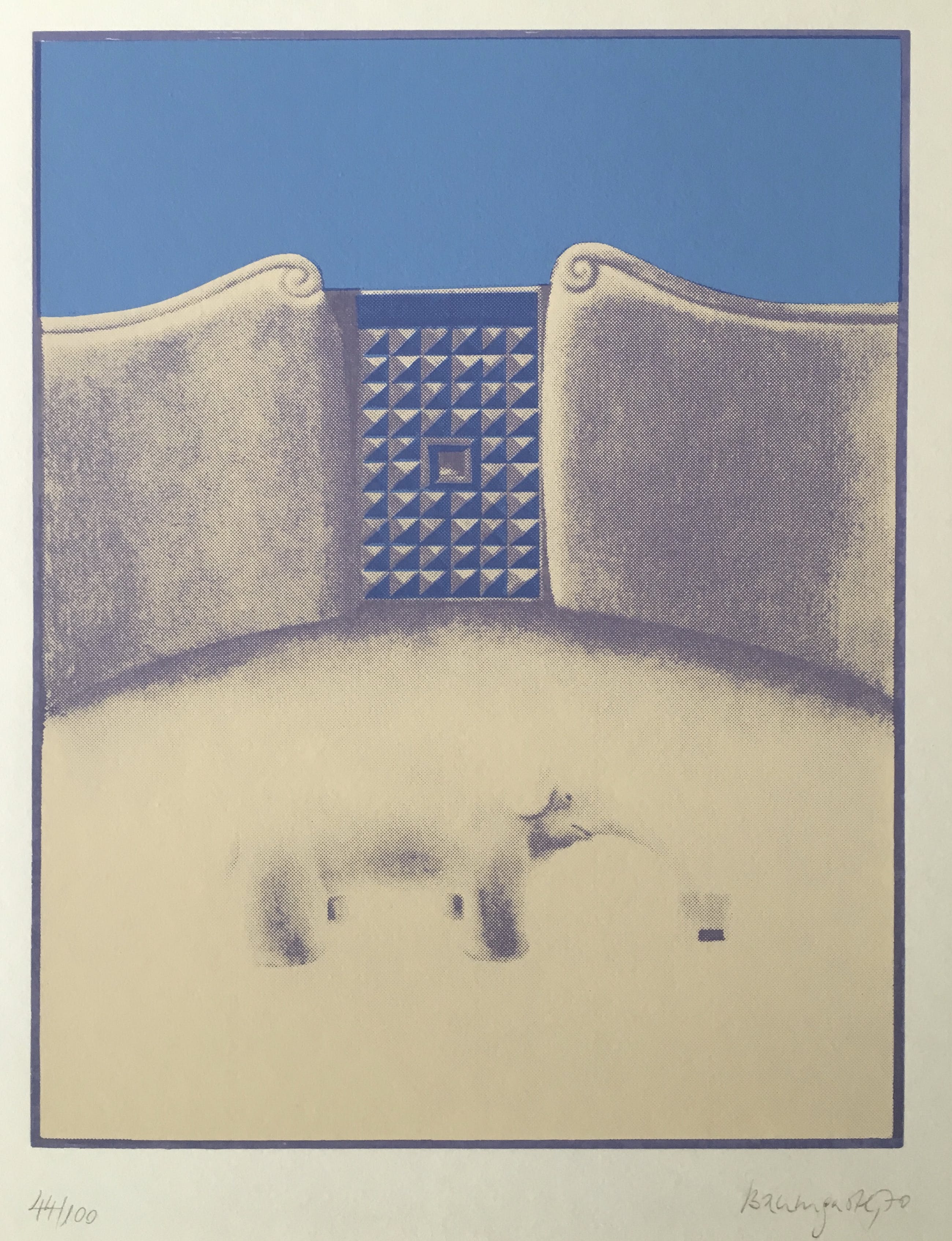 Prachtige surrealistische gesigneerde en genummerde originele zeefdruk uit 1970 met Pop-Art-elementen van de internationaal bekende kunstenaar en vertegenwoordiger van fantastische kunst die in Stuttgart woont Een van de slechts 100 exemplaren