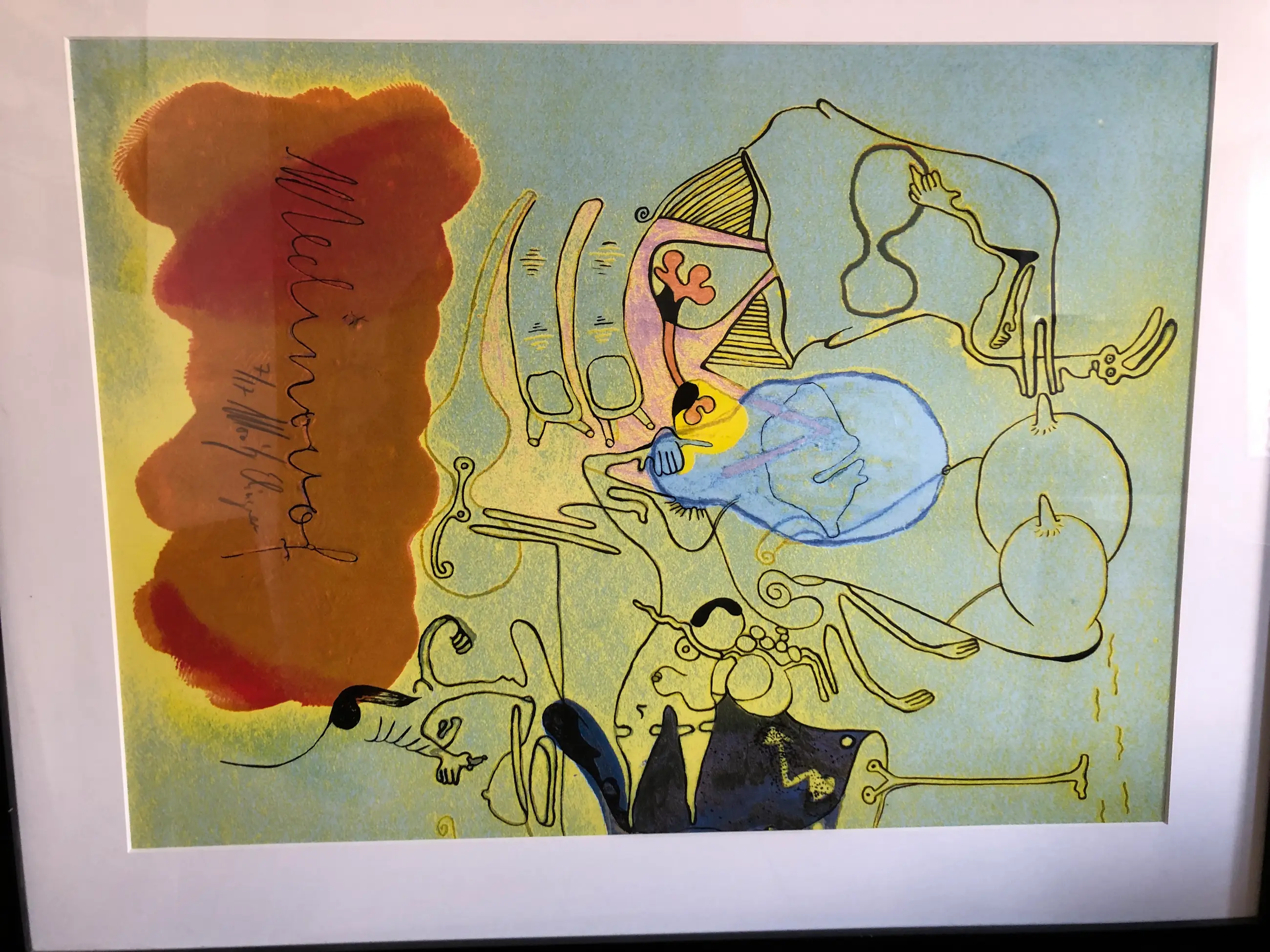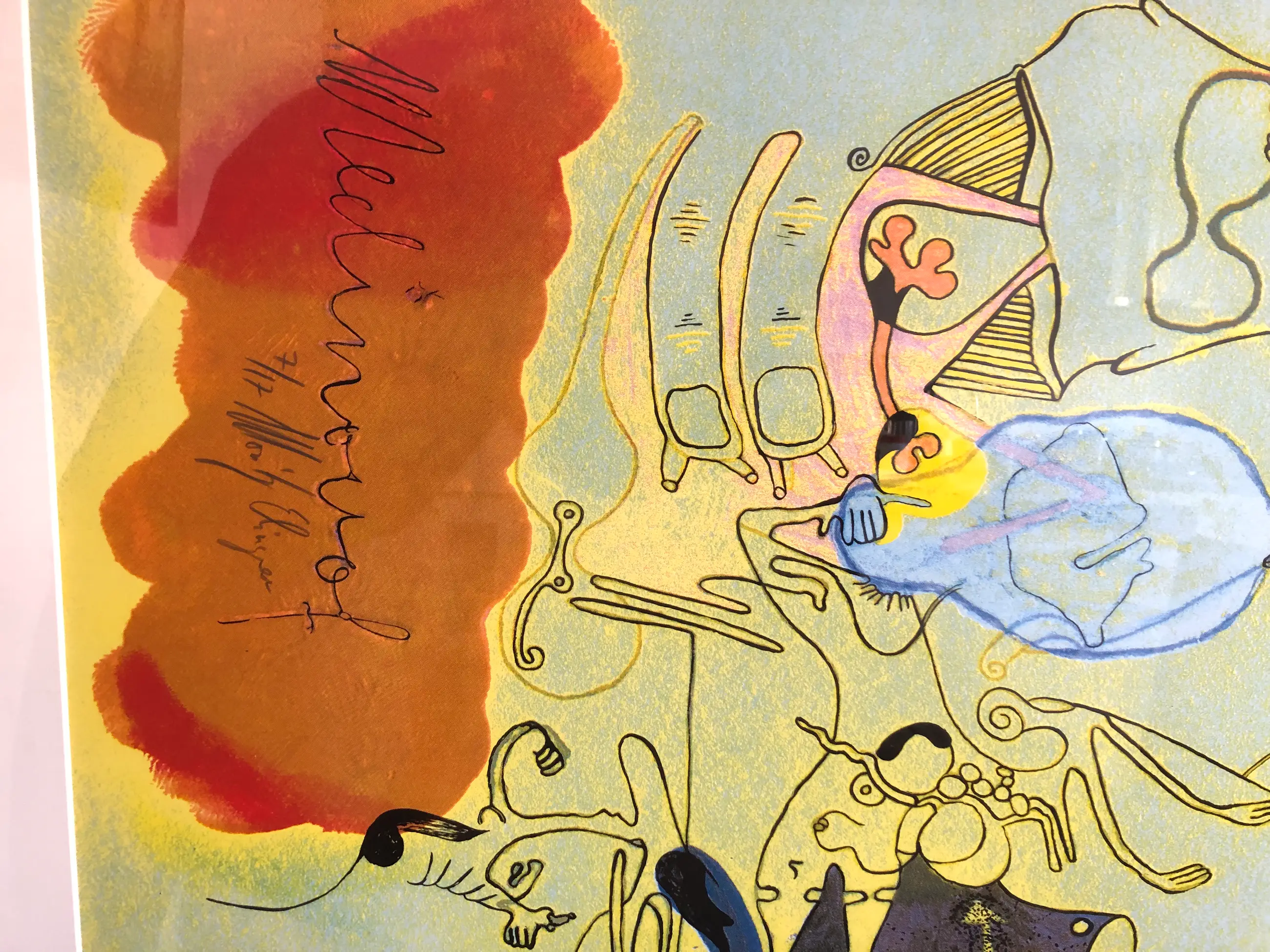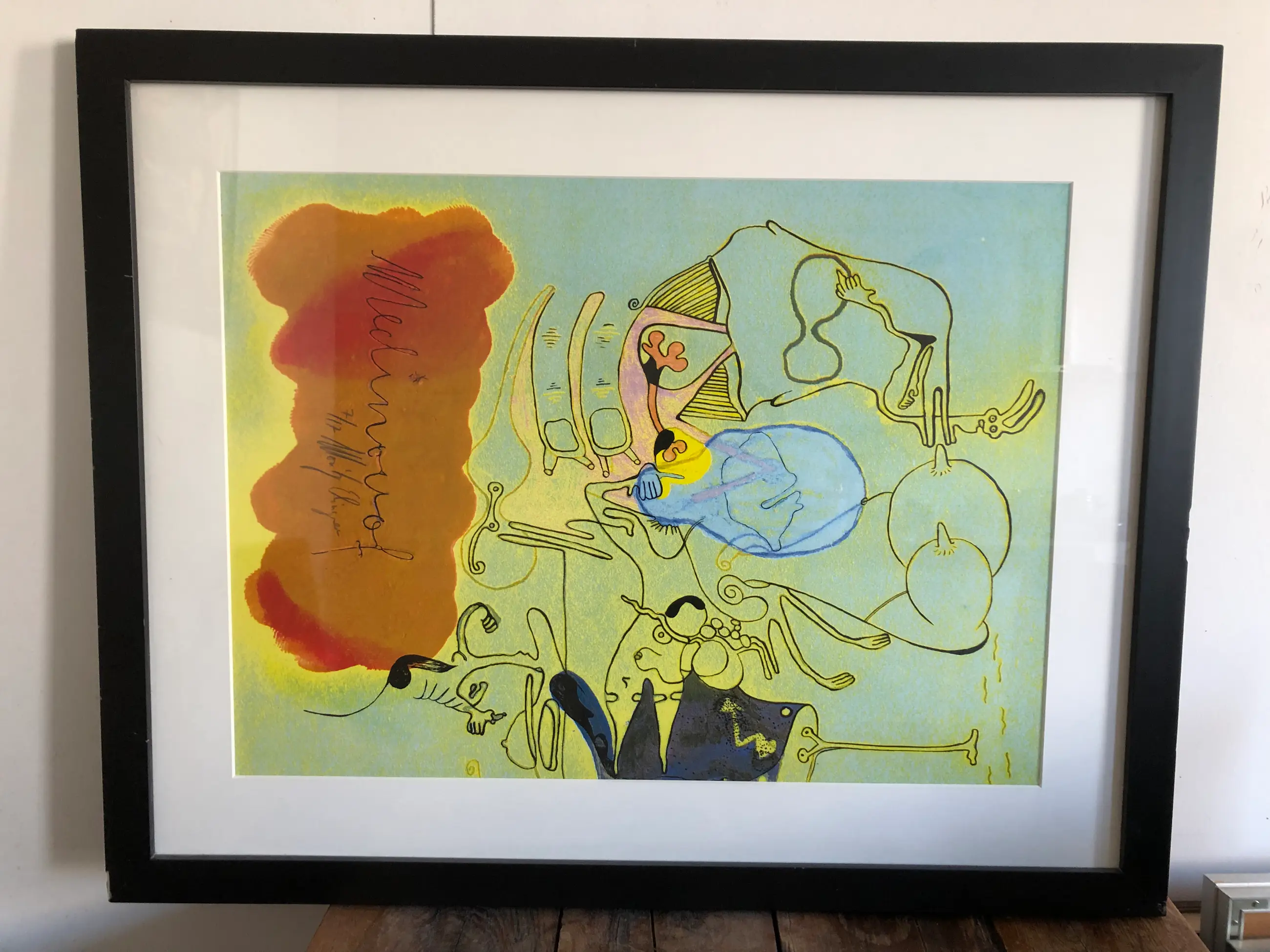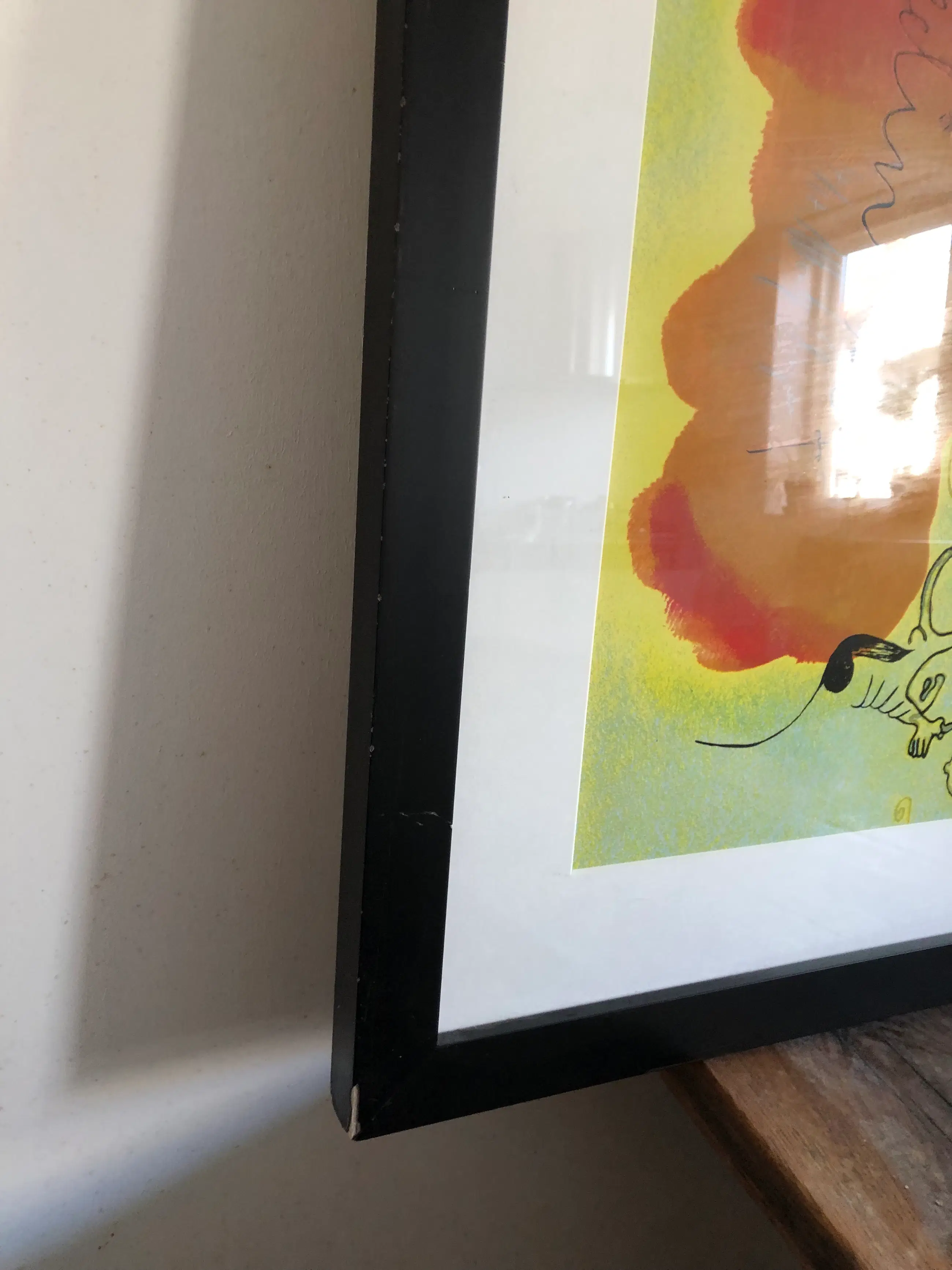 Een zeefdruk door Moritz Ebinger. Eigenlijk hebben hier drie kunstenaars aangewerkt. Zie de laatste foto. De druk is gesigneerd in de afbeelding en is in heel goede staat. De zware lijst heeft kleine beschadigingen. Deze staan ook op de foto's.