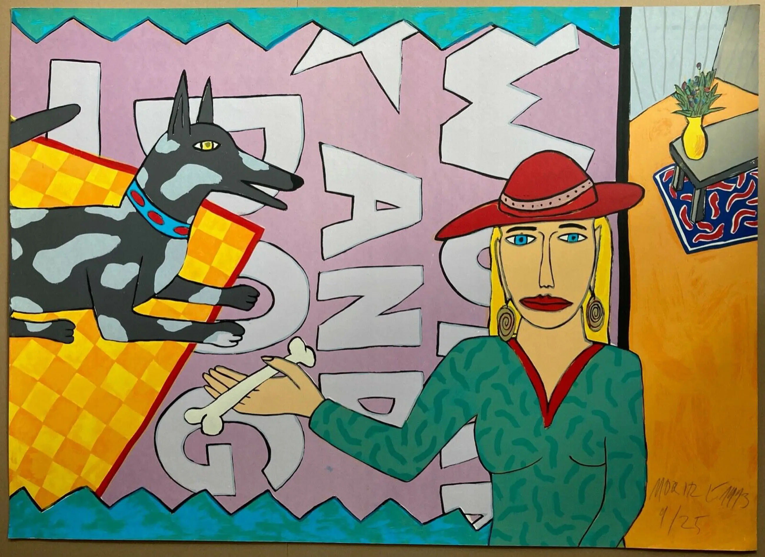 Gesigneerde en genummerde originele kleurenzeefdruk (zeefdruk) op karton door de belangrijke Duitse popart- en striptekenaar, die ook als kunstemailleur werkt en de laatste jaren steeds meer verzamelaars weet te inspireren voor zijn werken Genummerd, een van slechts 25 exemplaren op karton vanaf 1994 formaat 84 x 117 cm (vel)