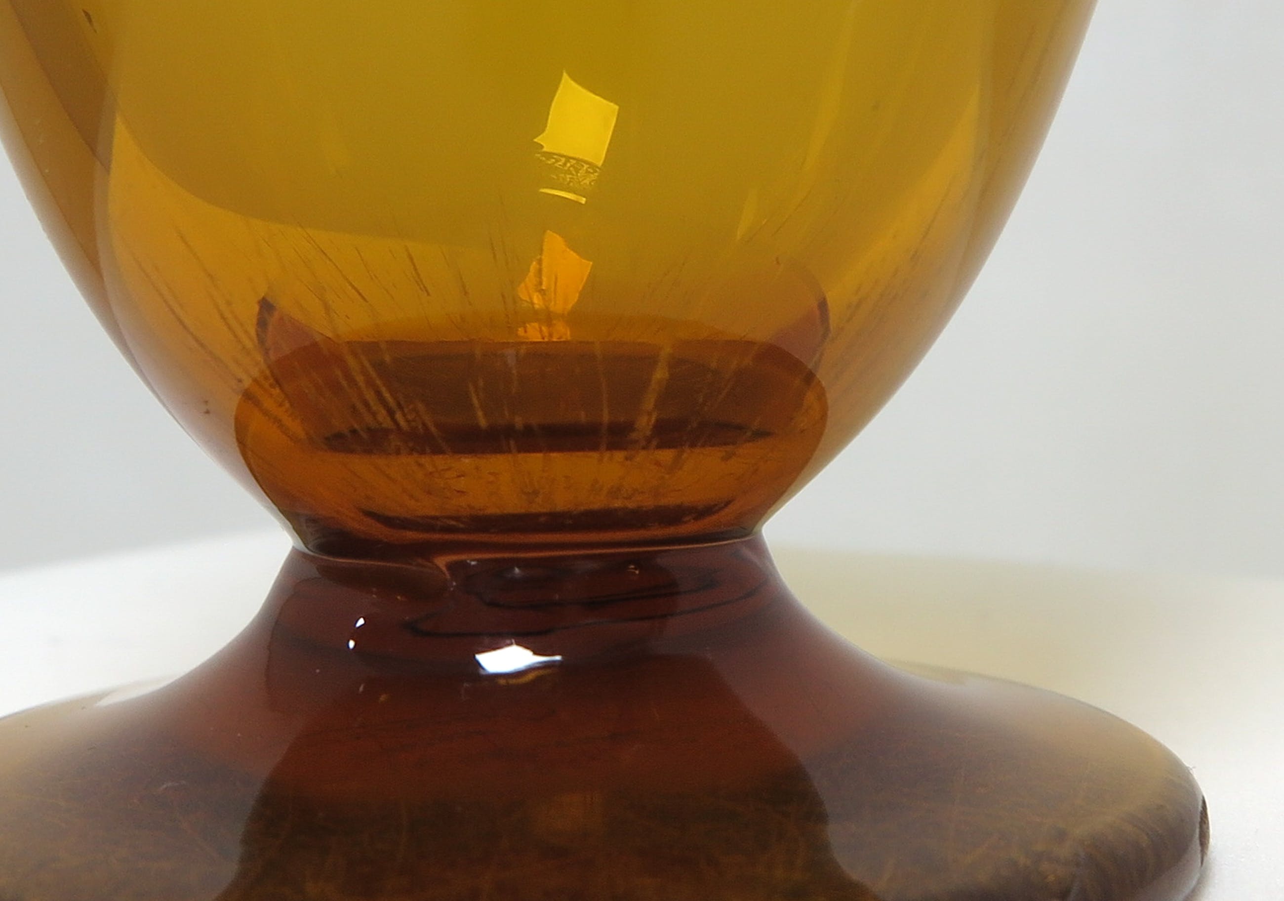| Goede staat, maar wel met (veel) zichtbare gebruikssporen. Krasjes in de hals en op de bodem, en ook aan de onderzijde. Paar imperfecties ontstaan tijdens het productieproces. | |||||||||||