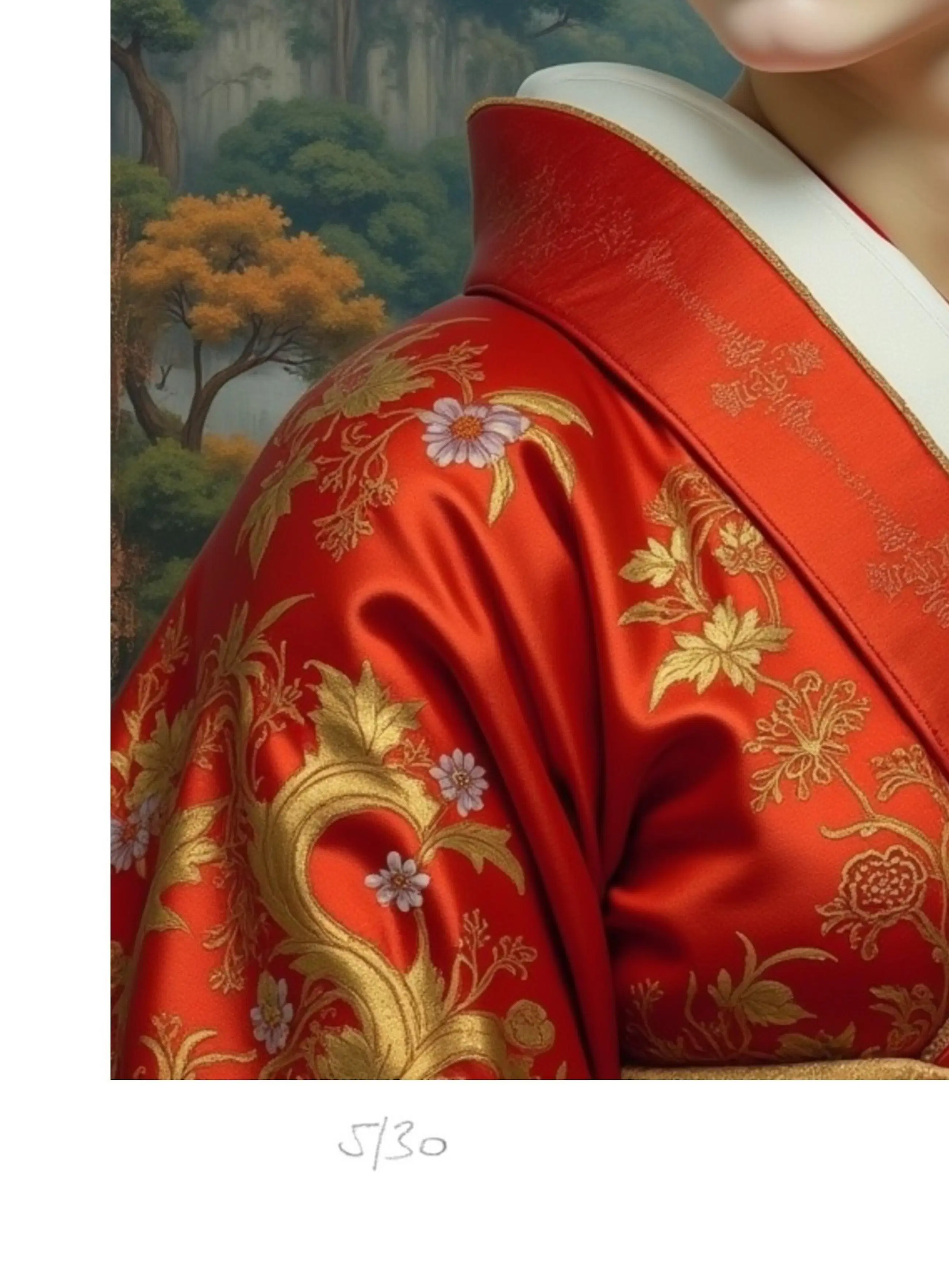 Digitaal kunstwerk / Door AI gegenereerd model / Fotomontage- of fotomanipulatietechniek. Giclee op Hanhemühle-papier. Proefdruk 5/30, genummerd en met de hand gesigneerd in de witte marge. Droogreliëfstempel van een kunstenaar. Wordt geleverd met echtheidscertificaat. Totale afmetingen: 70 x 50 cm. De witte rand maakt het gemakkelijker om het werk in een passe-partout te leggen. Nieuw / nooit ingelijst. Verzonden door vervoerder in een geschikte koker.