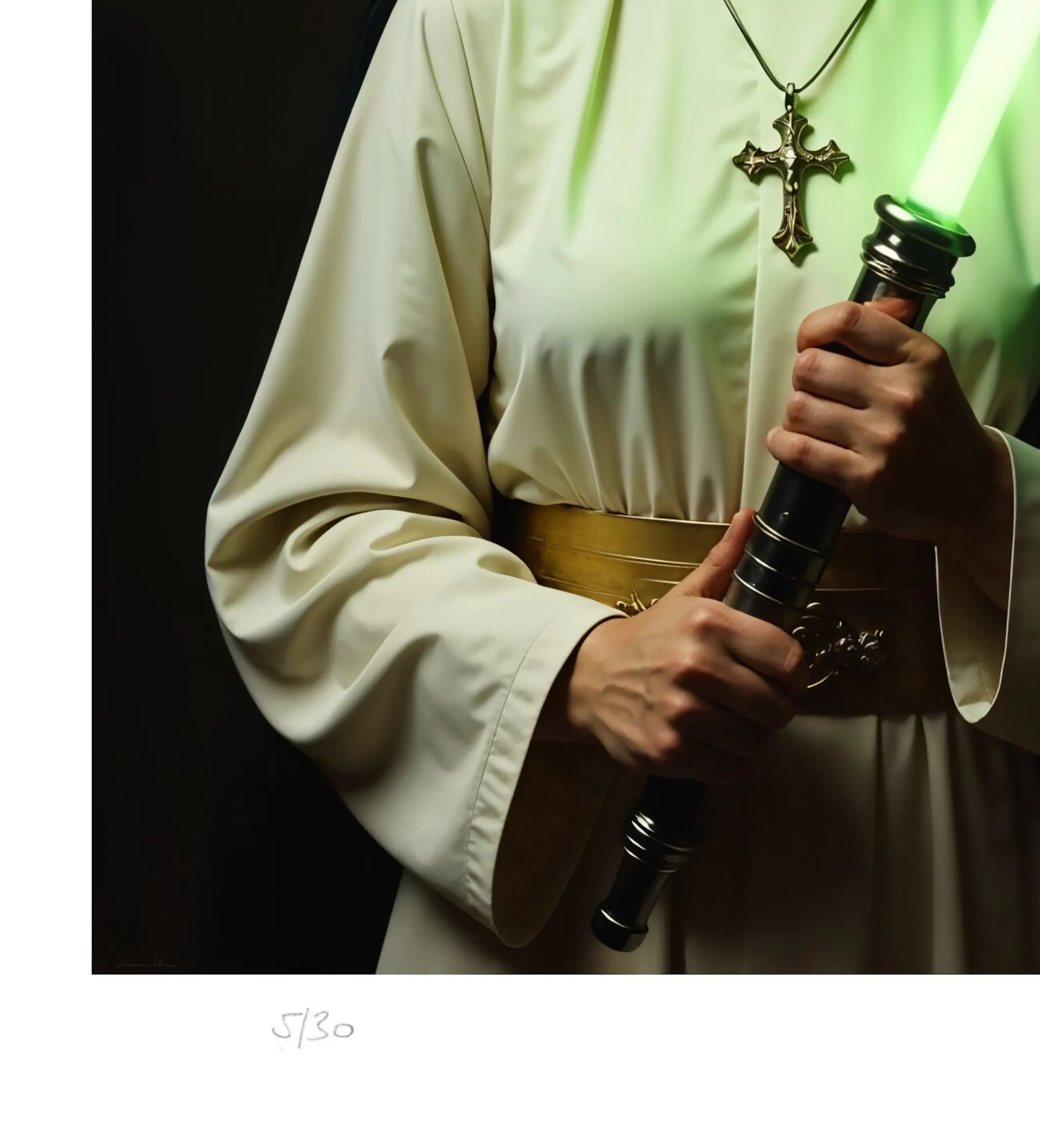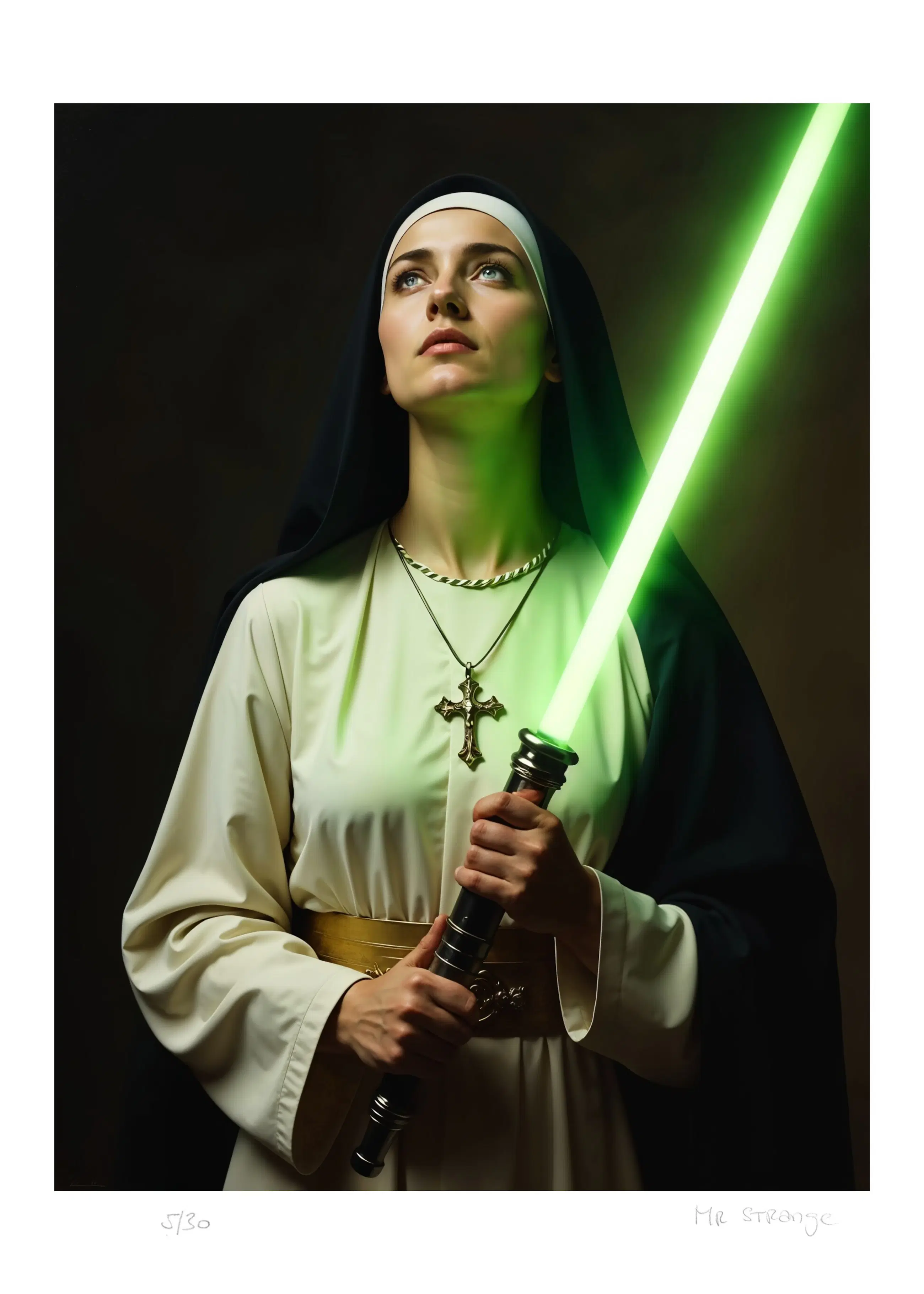 De witte rand maakt het makkelijker om het kunstwerk in een passe-partout te plaatsen.