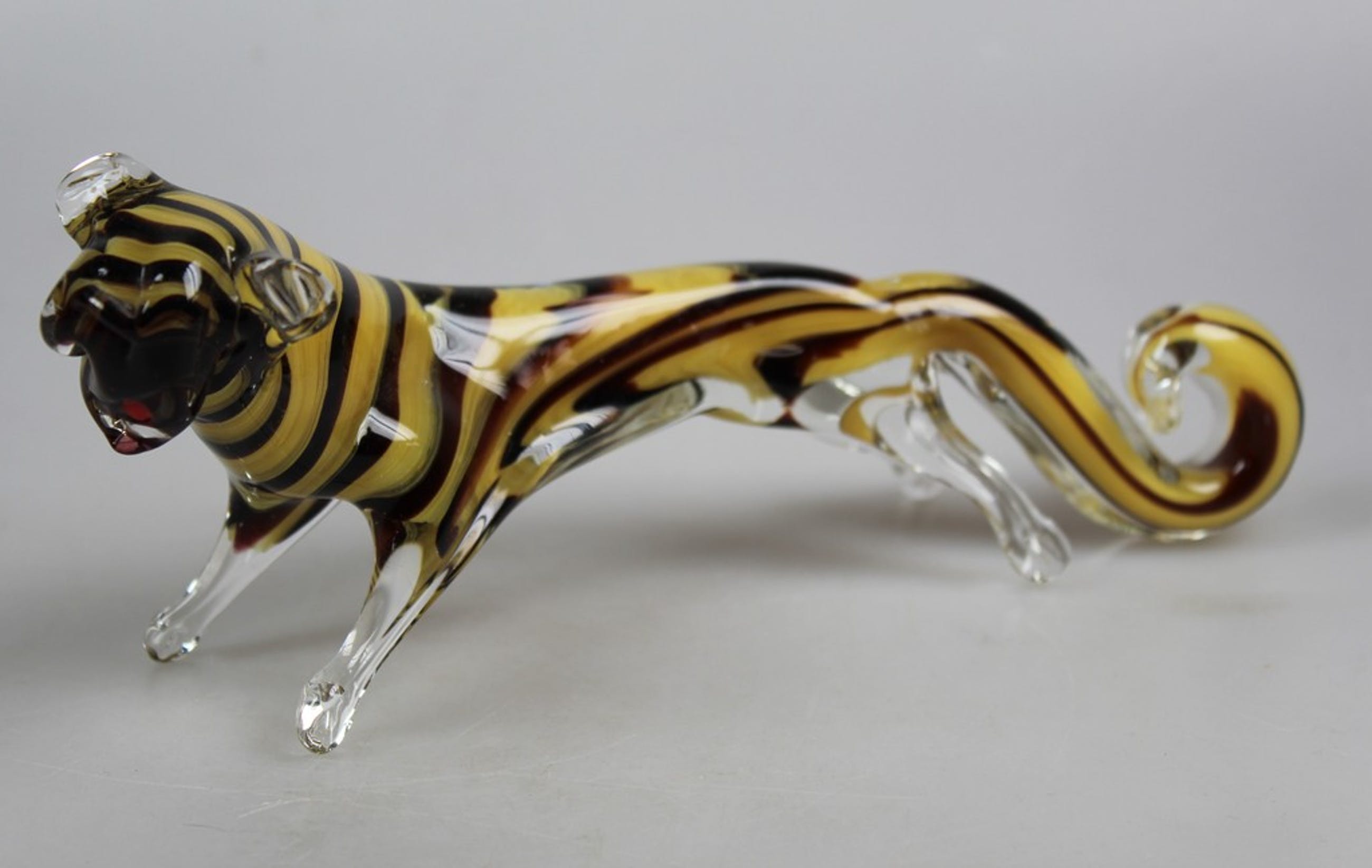 Murano glas beeld van een tijger. Lengte 23 cm en hoogte 8,5 cm. Gaaf.