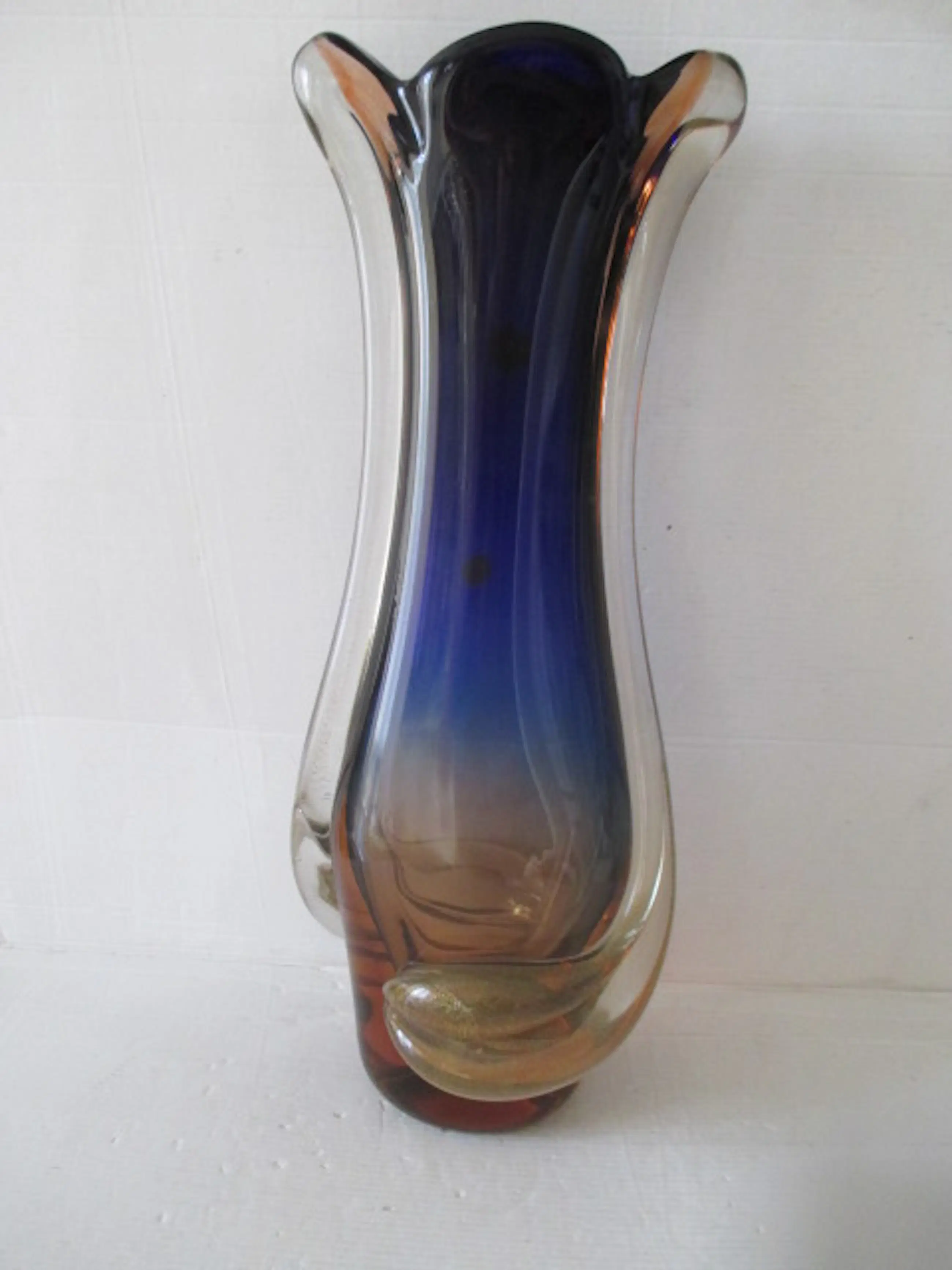 Grote meerkleurige vaas uit Venetie, CCC. Gemaakt van dikwandig glas (ca 5,5 kg). Gemerkt met 2 kleine labels. In perfecte staat behalve minuscule gebruikssporen op de bodem. Geen verzending buiten EU.