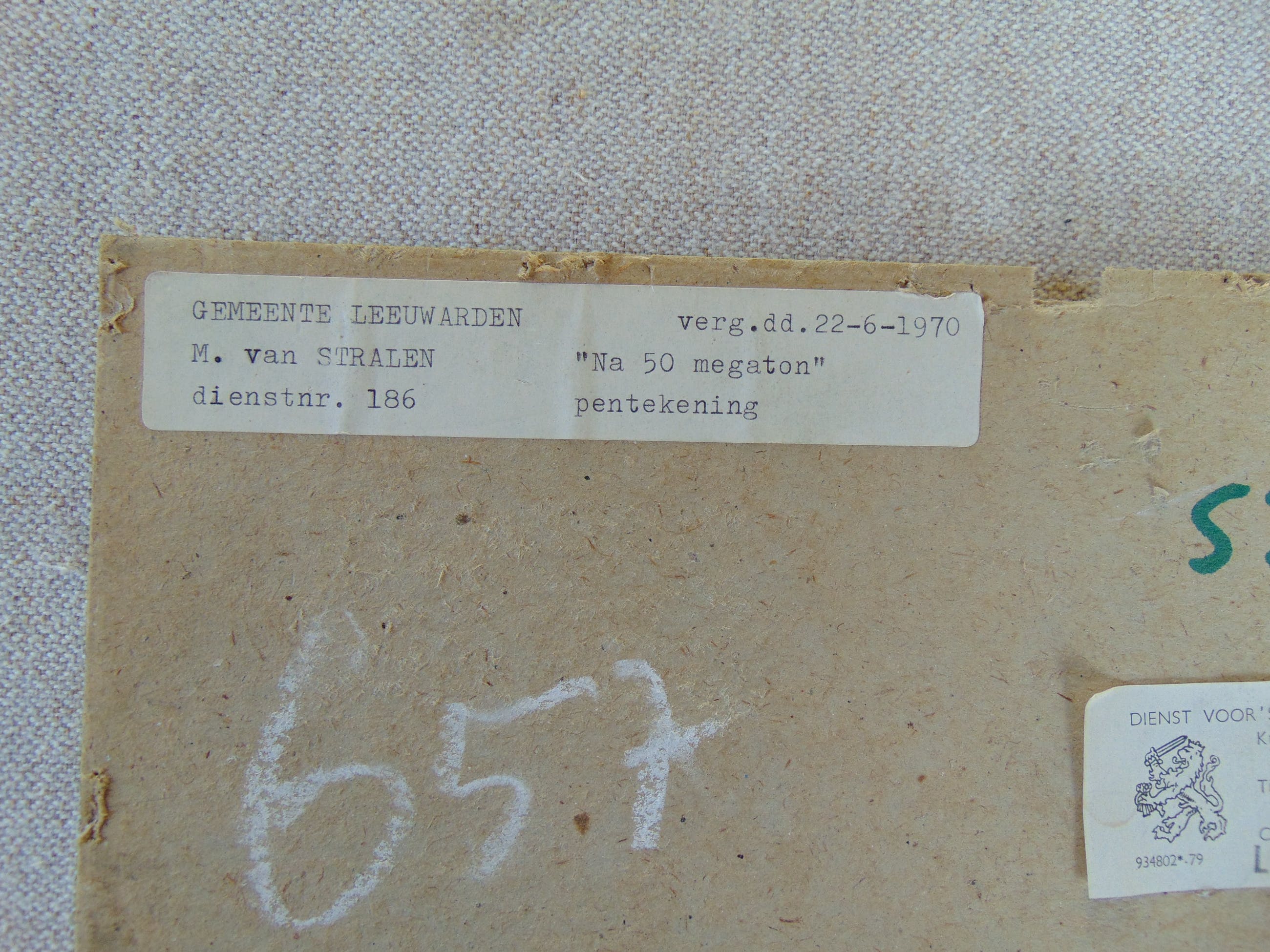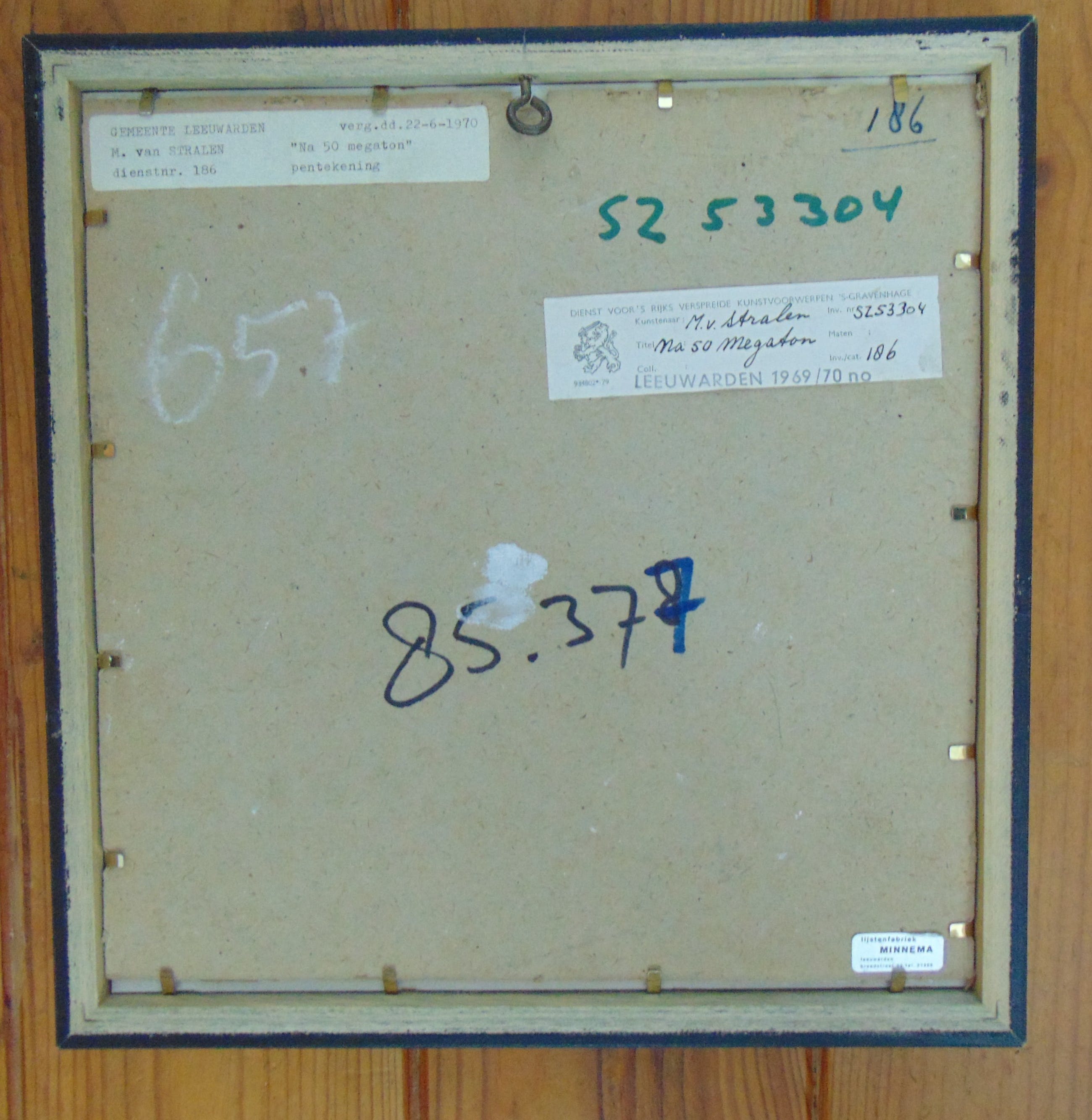 Deze pentekening is niet gesigneerd. Het werk komt uit de Dienst voor 's Rijks verspreide kunstvoorwerpen. Het is ingelijst met dubbele passe-partout en zit achter glas.