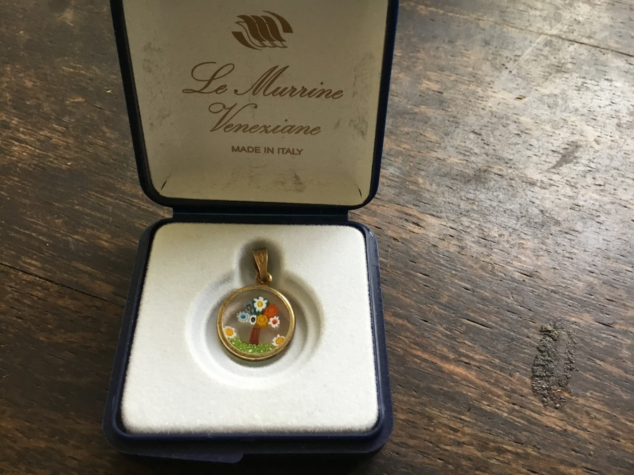 Murrina veneziana,Murano glas,zilver 925 en goud 18 ct