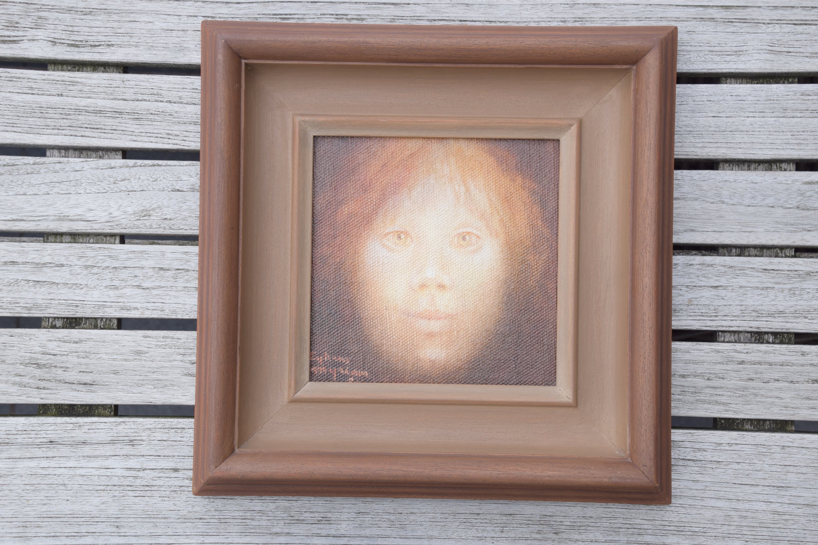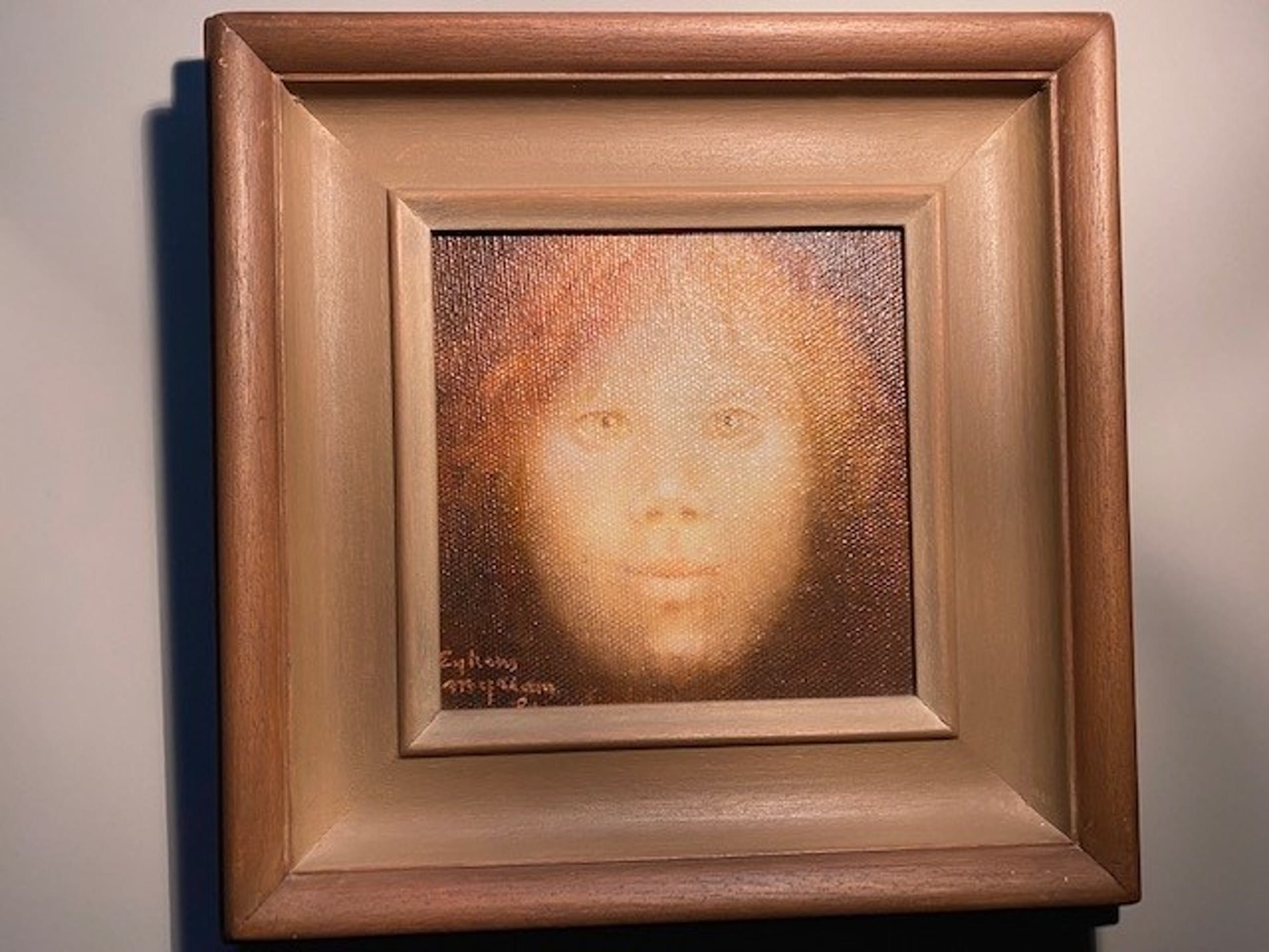 Myriam Eyckens' werk straalt steeds kalme noblesse en krachtige eenvoud uit. Ze heeft veel kinderen centraal in haar werk geplaatst. Kinderen voor haar staan gelijk met onschuld. Ook in dit werk brengt ze een meisjesportret dat geluk en onschuld uitstraalt. Warm, positief tevreden sfeer.
