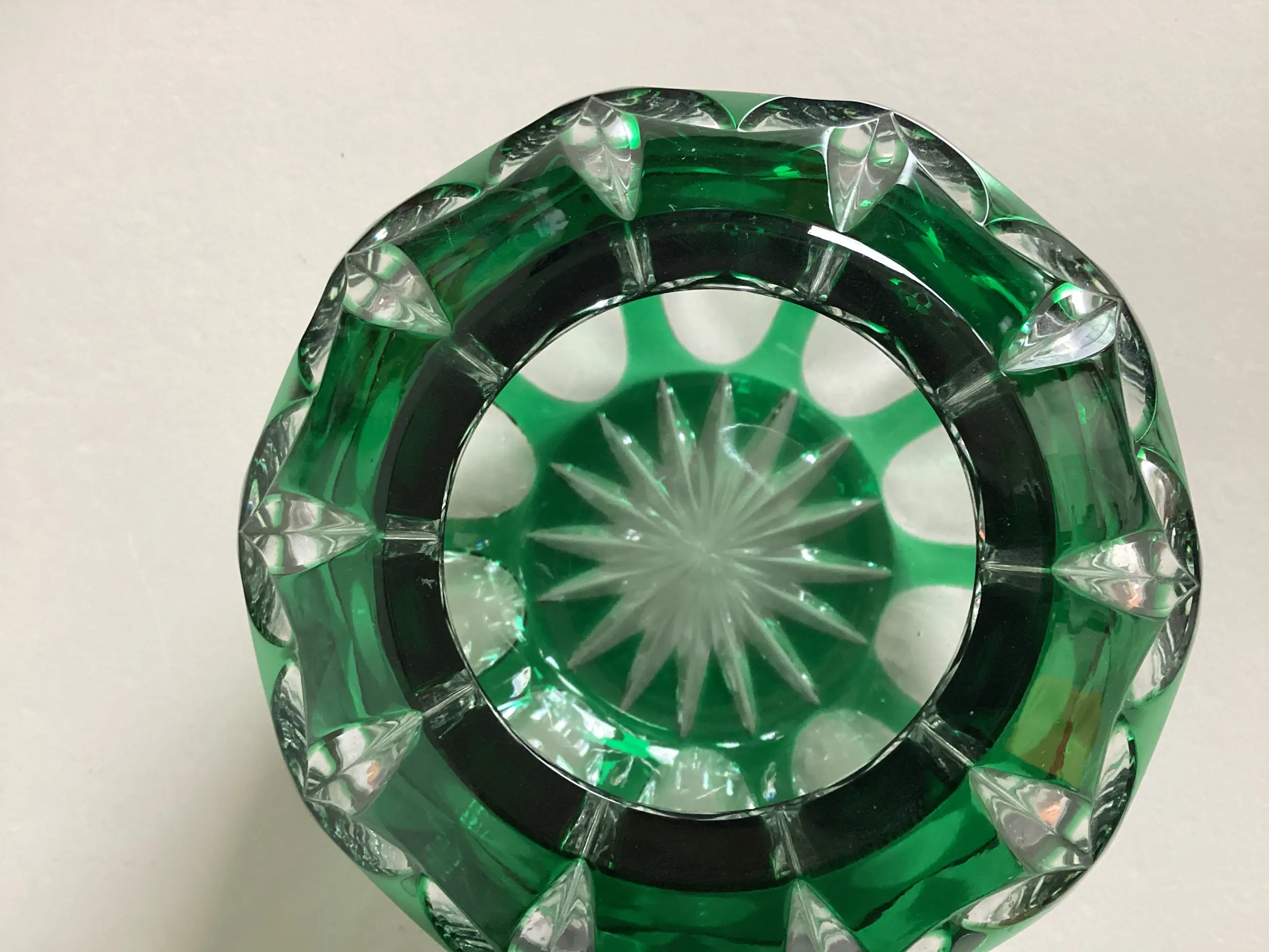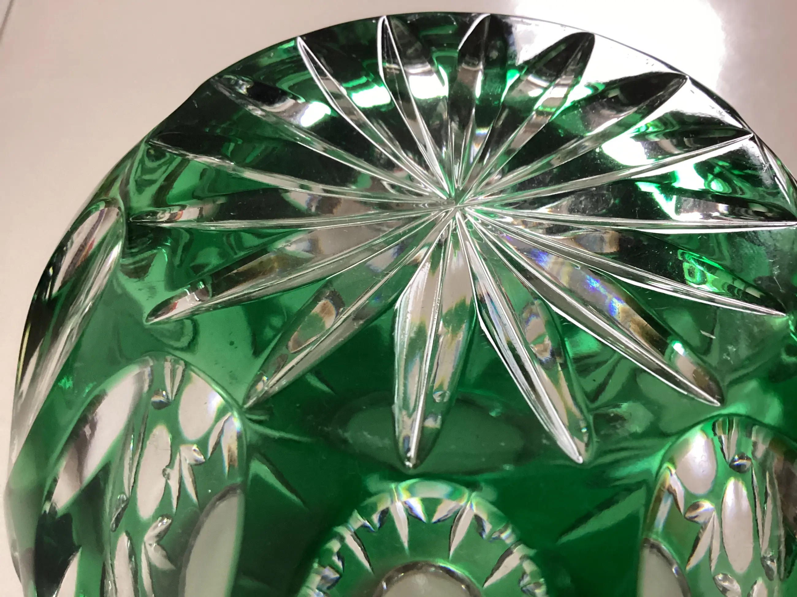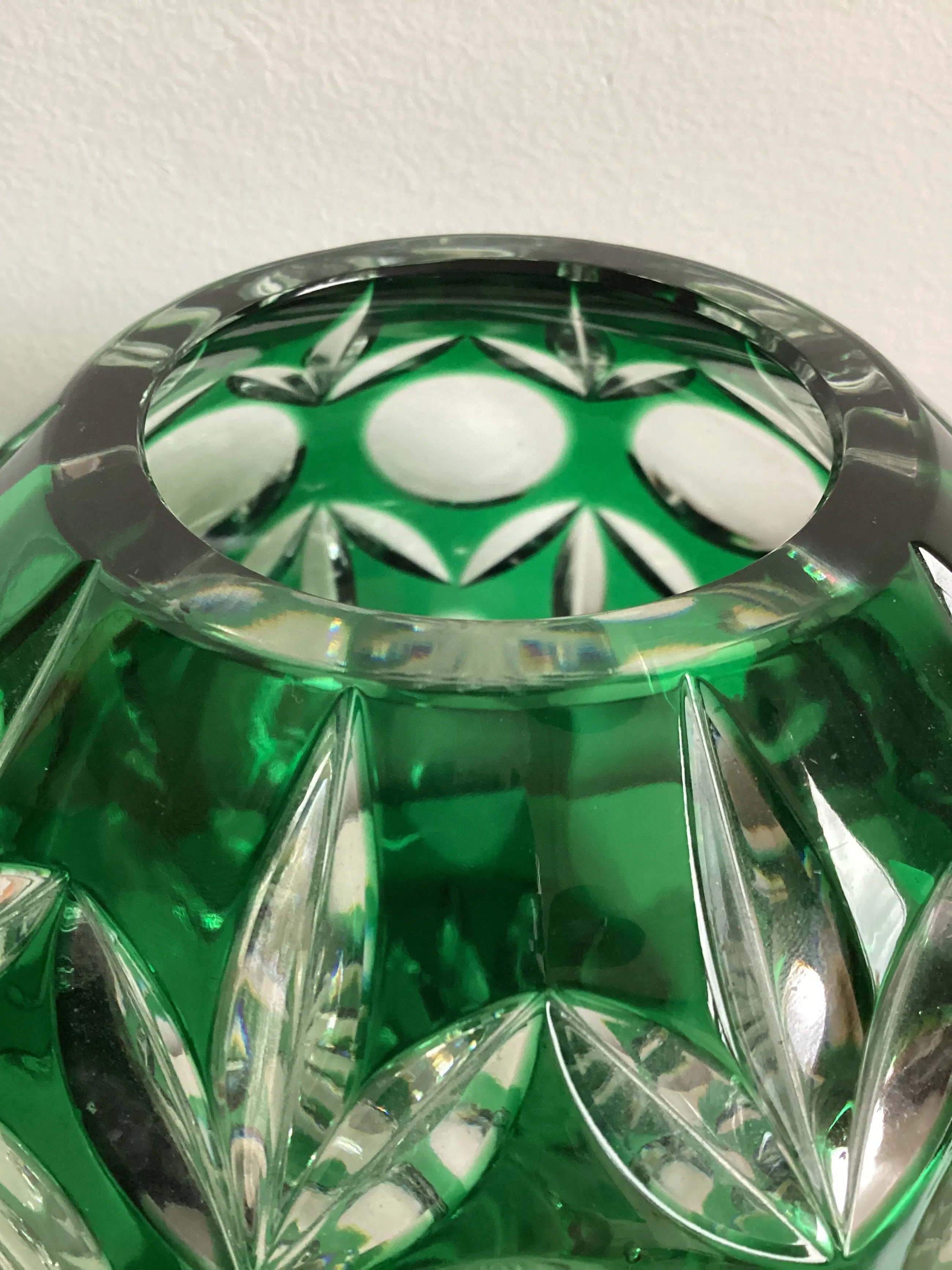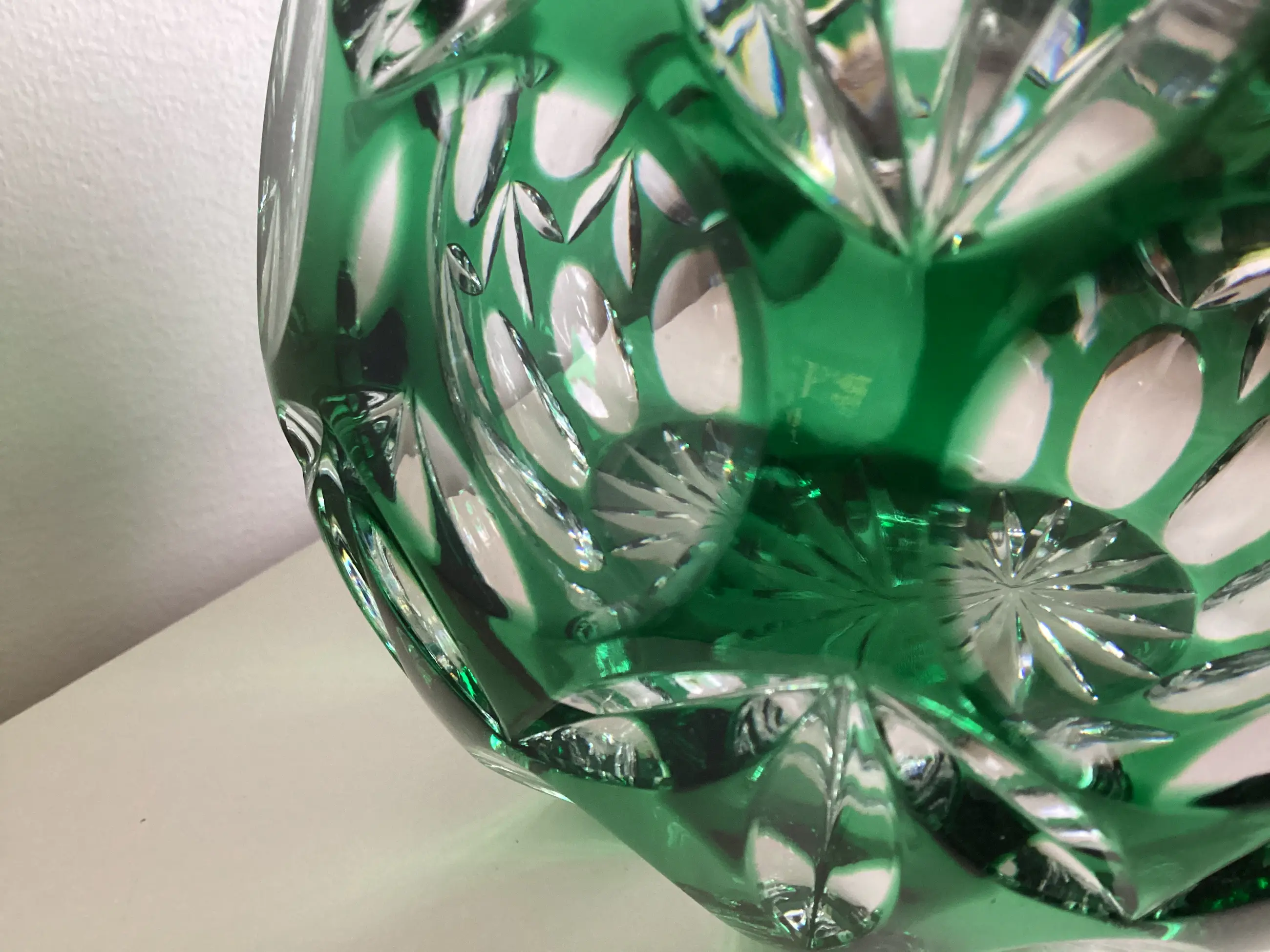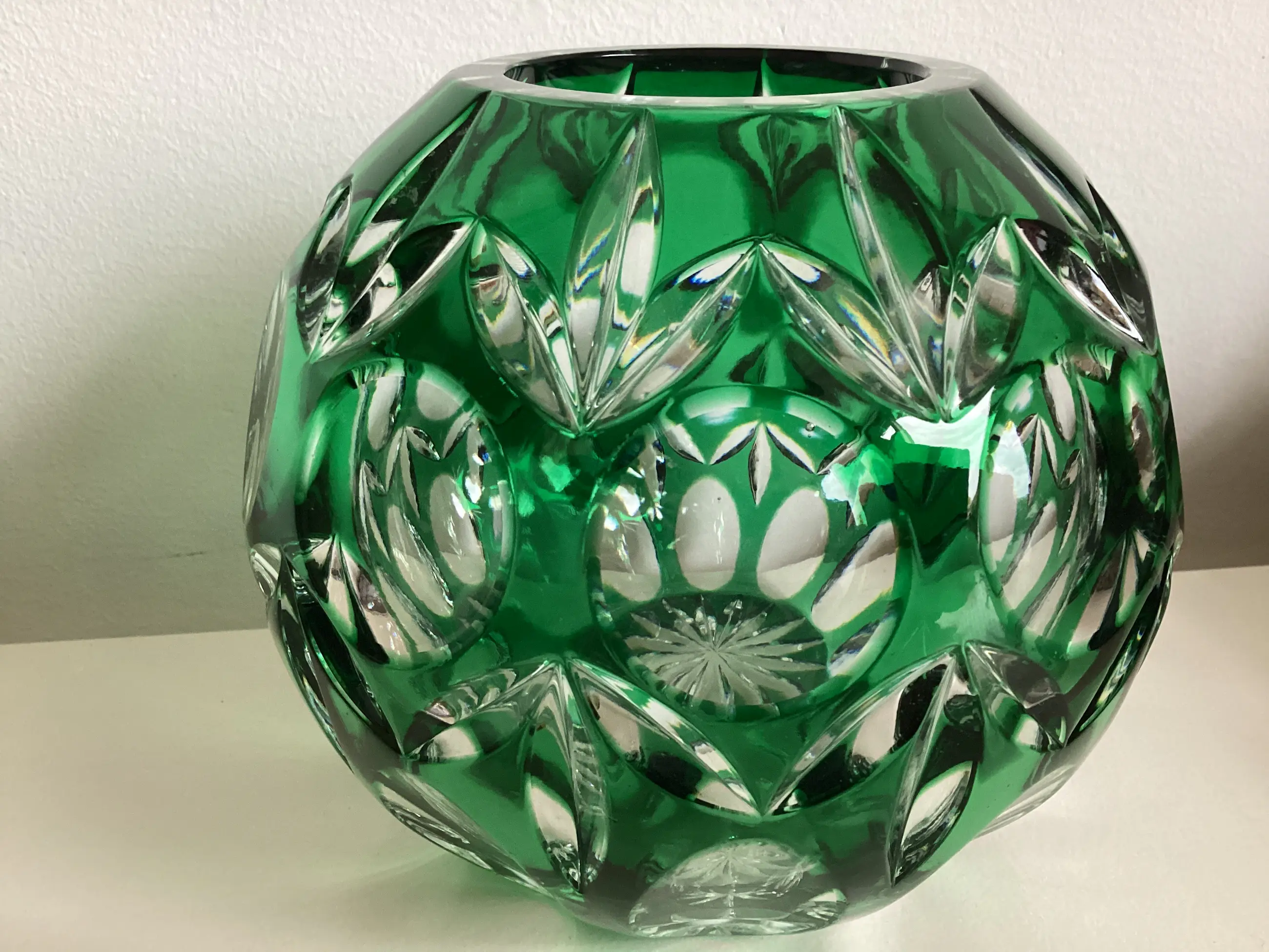 Nachtmann groen kleurige glazen bolvaas, met ovale vensters geslepen. Facet geslepen glaswerk. Hoogte 13 cm. Prima conditie.