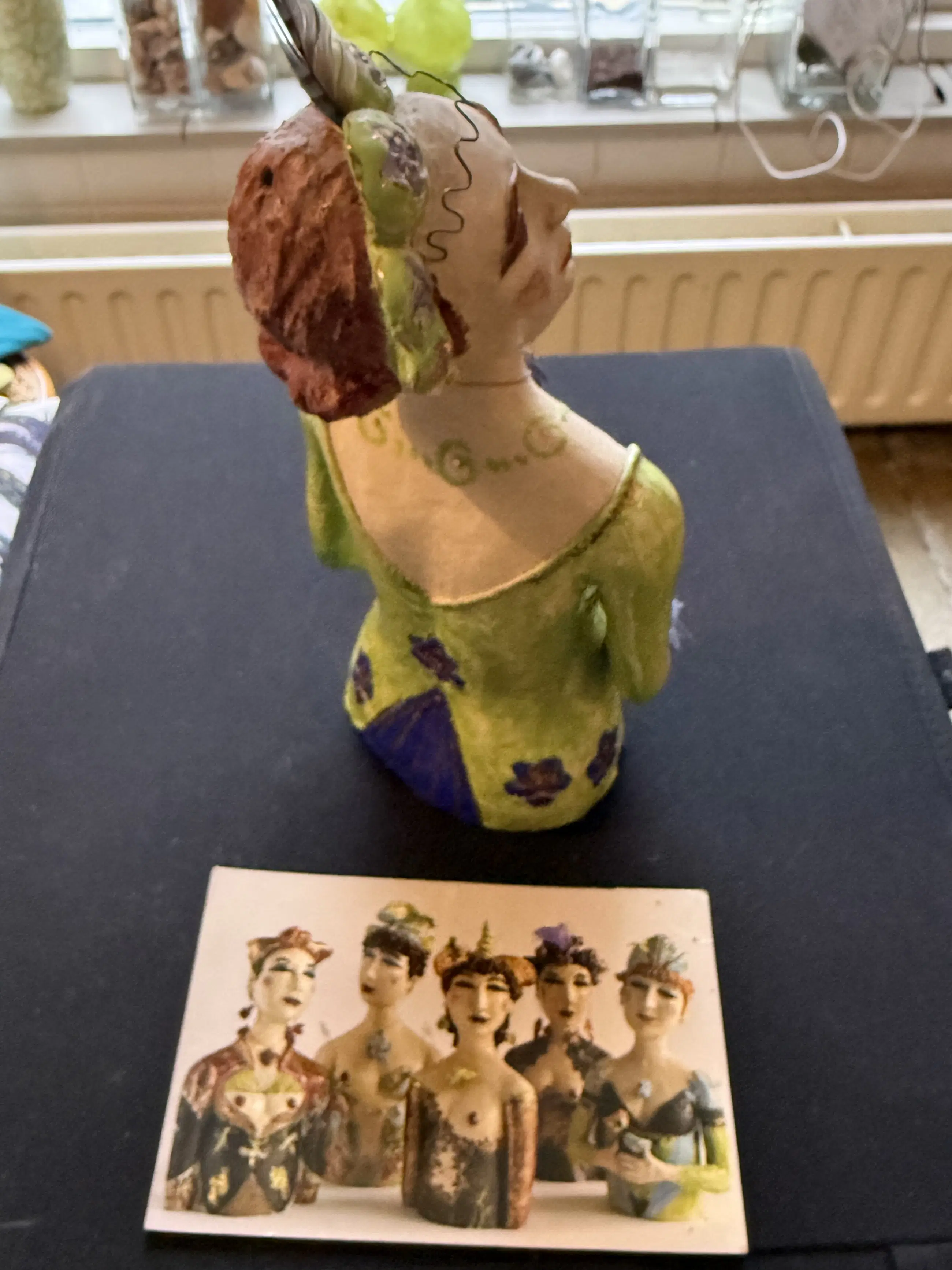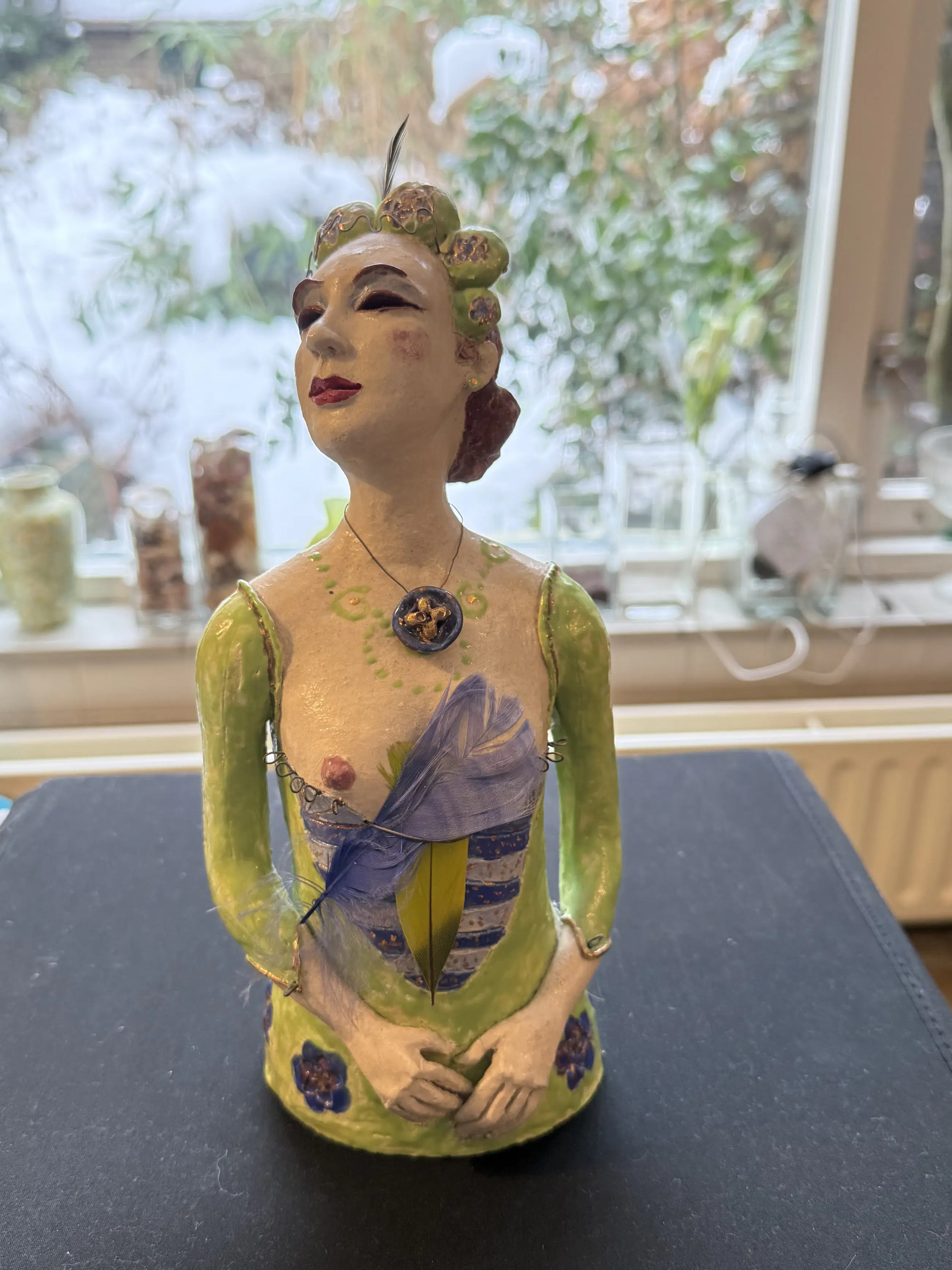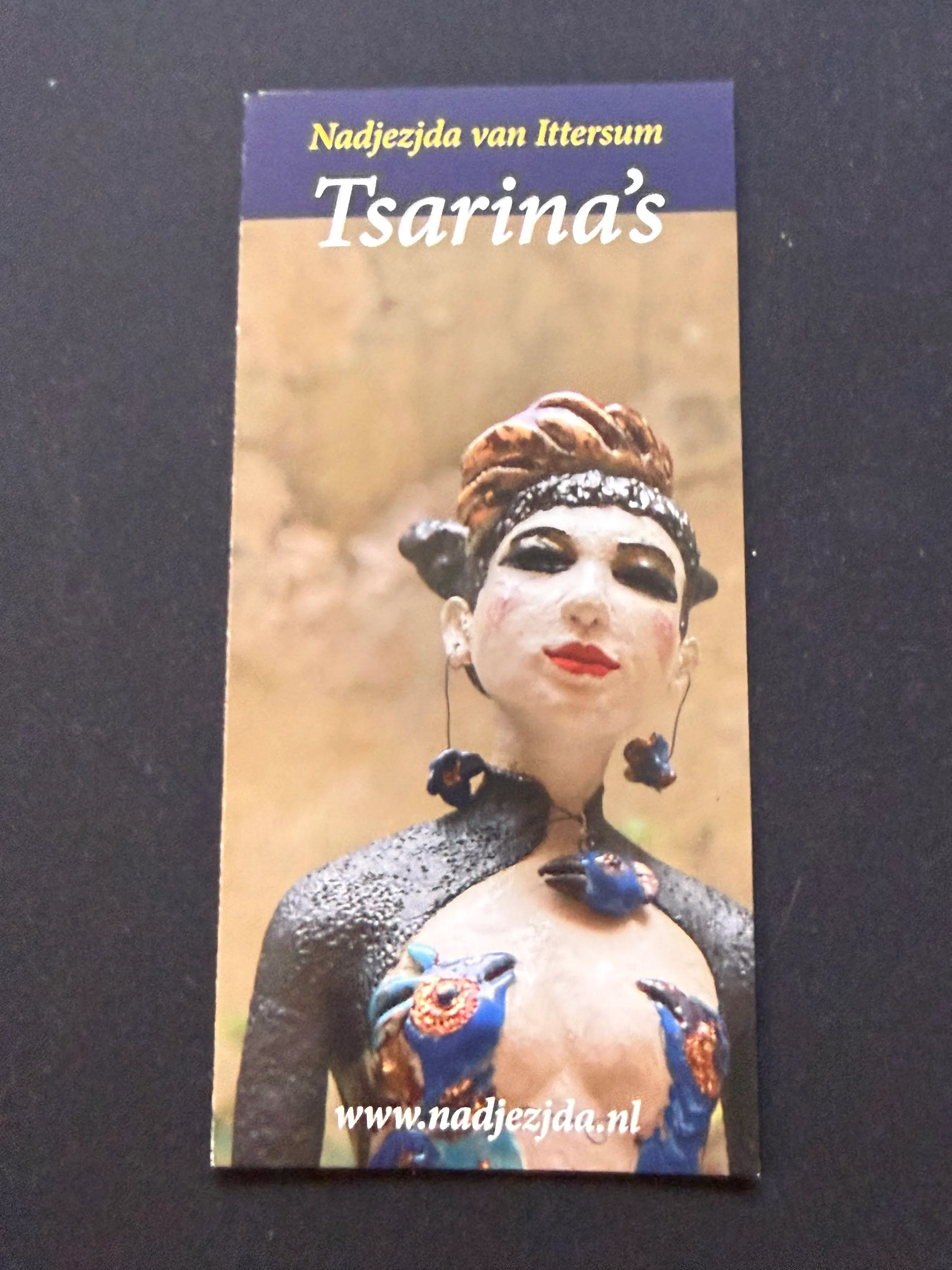 Nadjezjda van Ittersum is een veelzijdige kunstenares, die zich bij verschillende disciplines thuis voelt. Zij schildert met acryl, maakt grafiek, assemblages en installaties. Van chamotte klei creëert ze haar Pronte Tsarina’s. Ze dragen wulpse zomerjurken met rijglijfjes en frivole schouderbandjes om het statische karakter van keramiek op te heffen. De Tsarina’s kijken de bezoeker uitdagend aan van onder hun ludieke hoofdtooien, waarin vaak vogels, vissen en vlinders zijn verwerkt.