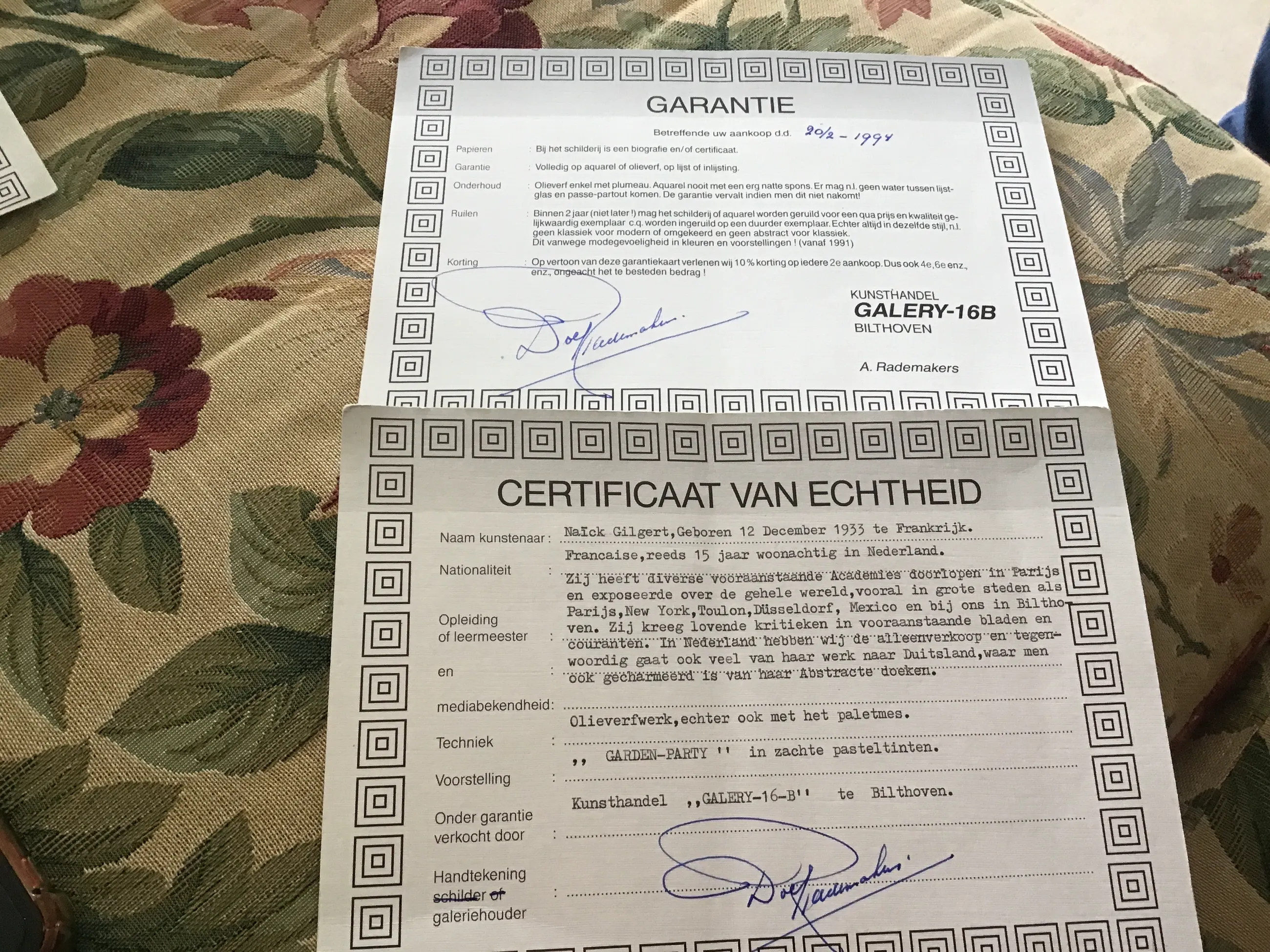 Is schilderij van overleden zwager wij hebben certificaat engarantiebewijs er bij
