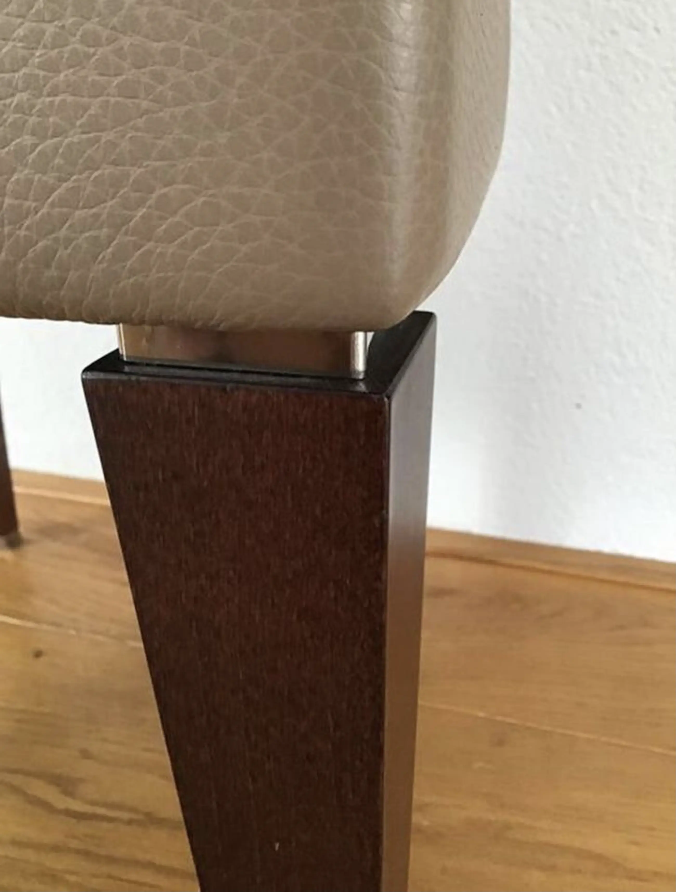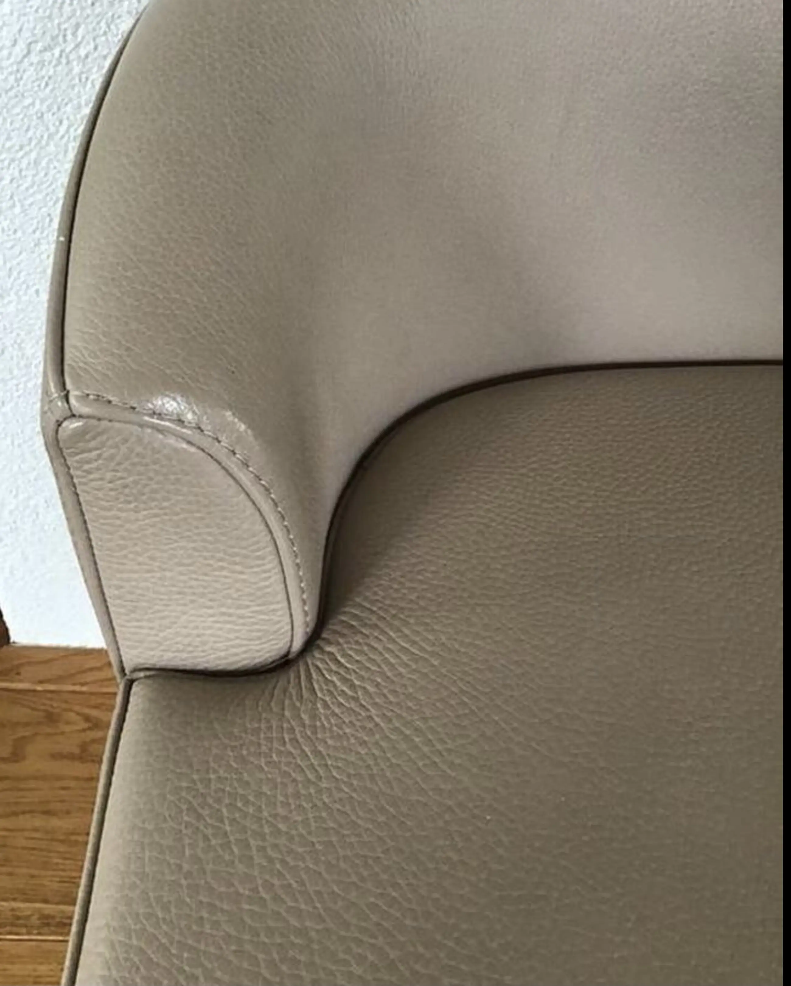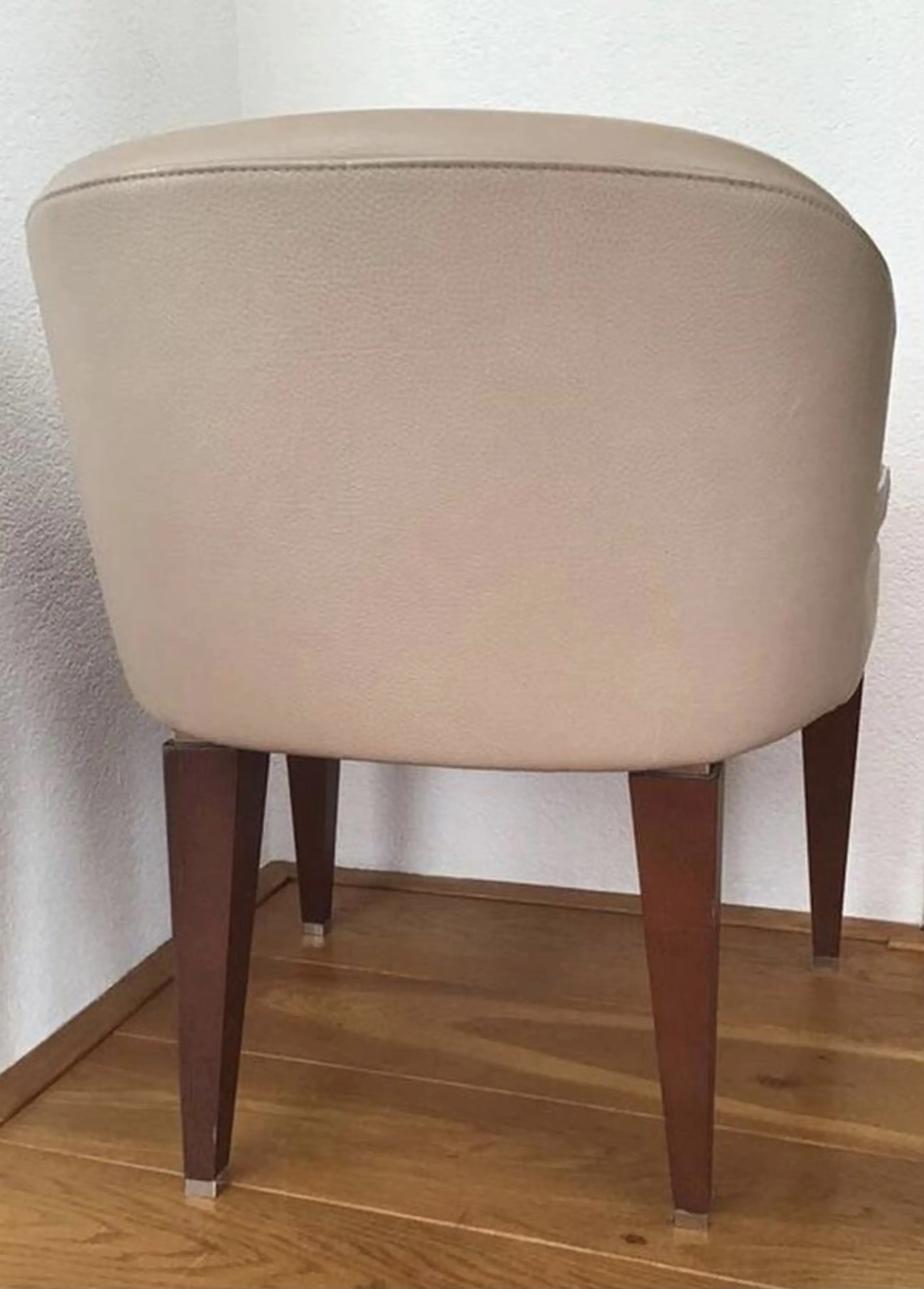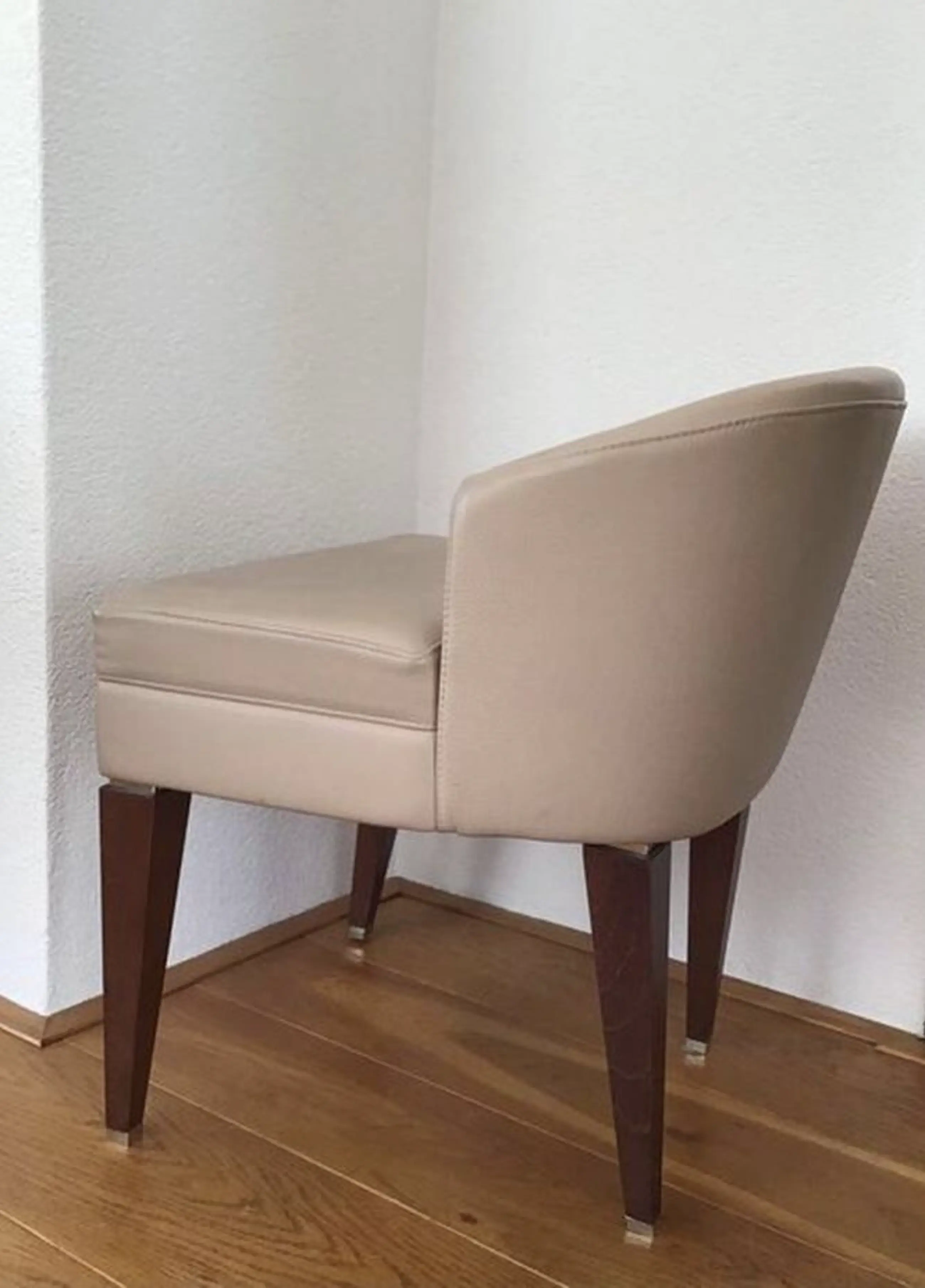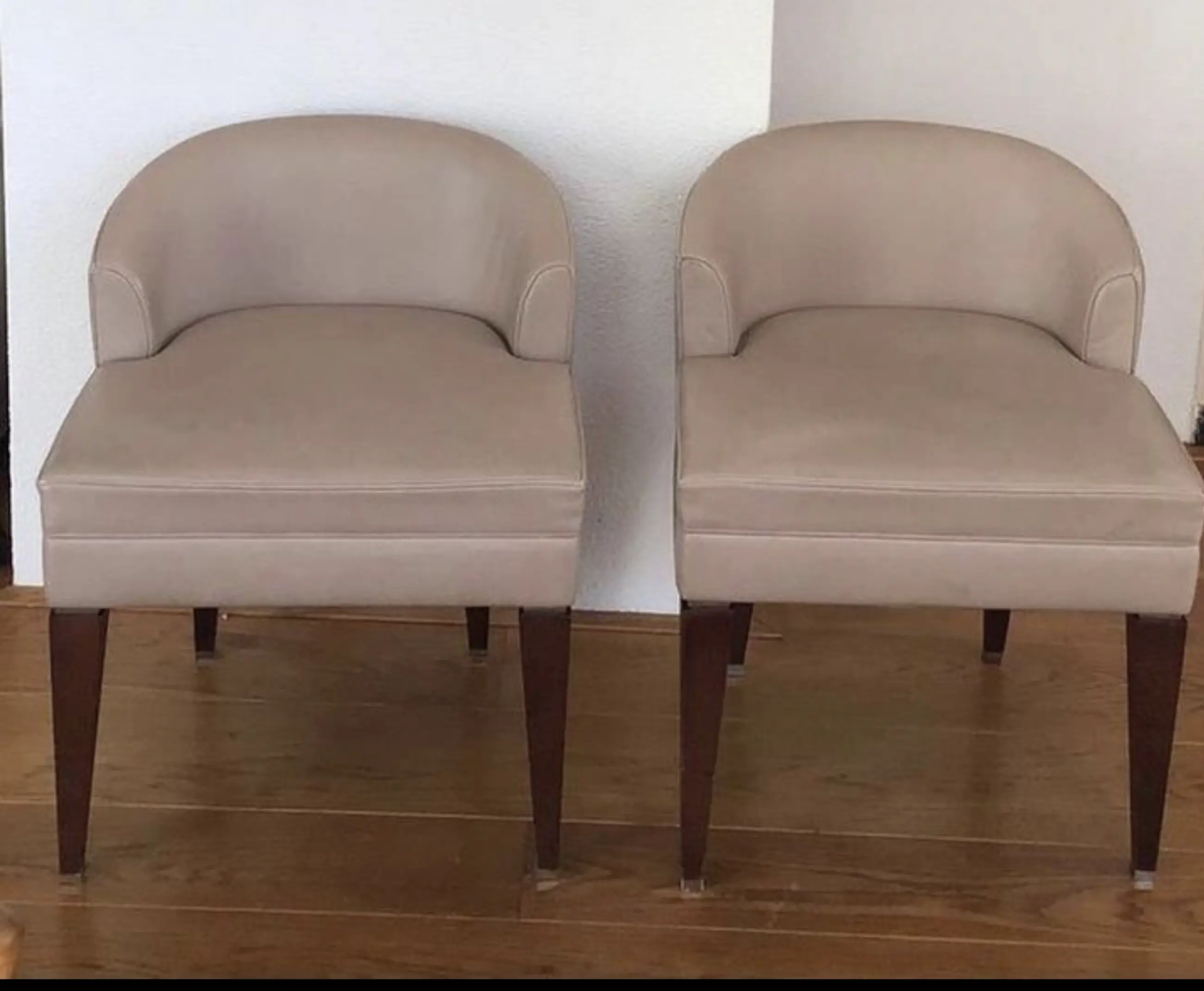 2 design Italiaanse fauteuiltjes Merk Nalesso Italië Gemerkt aan onderzijde Kleur beige leder Ideaal voor slaapkamer of als bijzet stoel met speciale metalen inzetstukken Schitterende kwaliteit Afmetingen 60 hoog 48cm diep 53 cm breed Conditie uitstekend Afhalen in Amstelveen