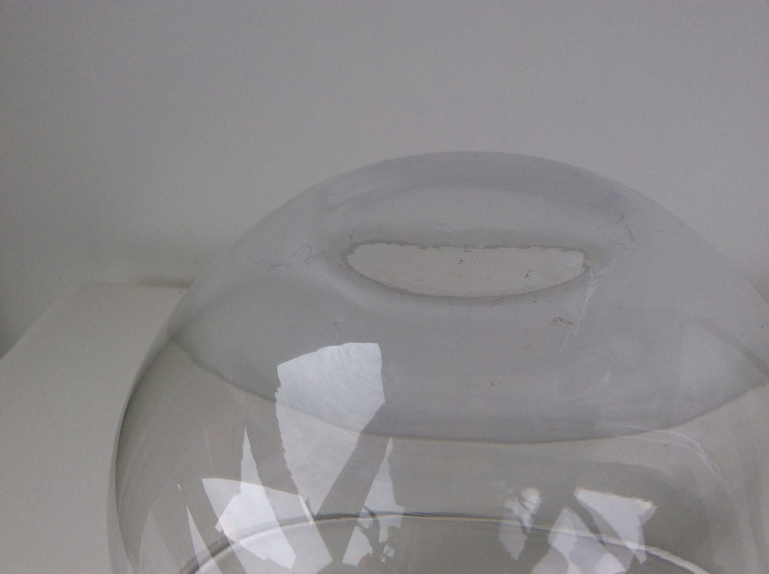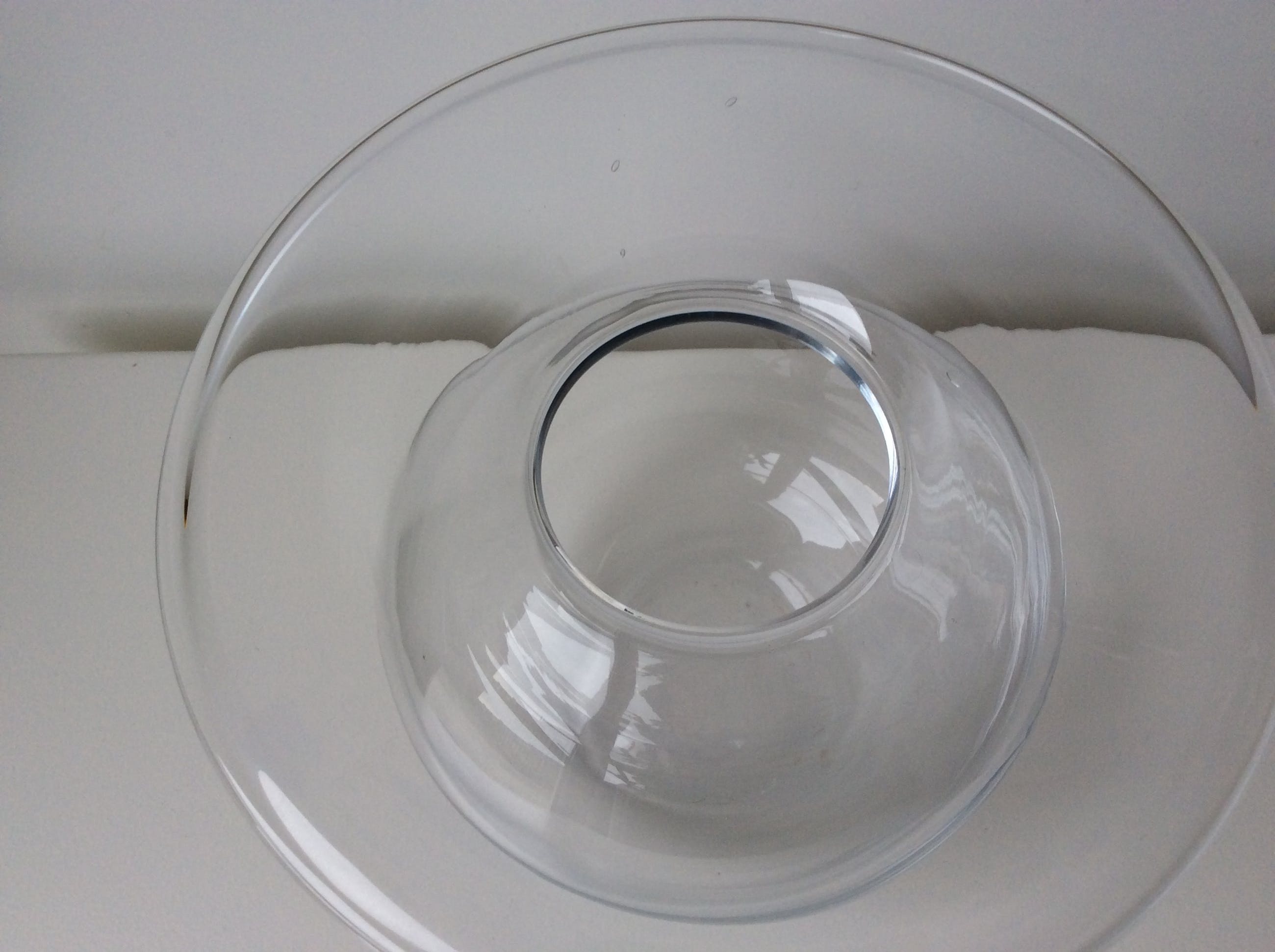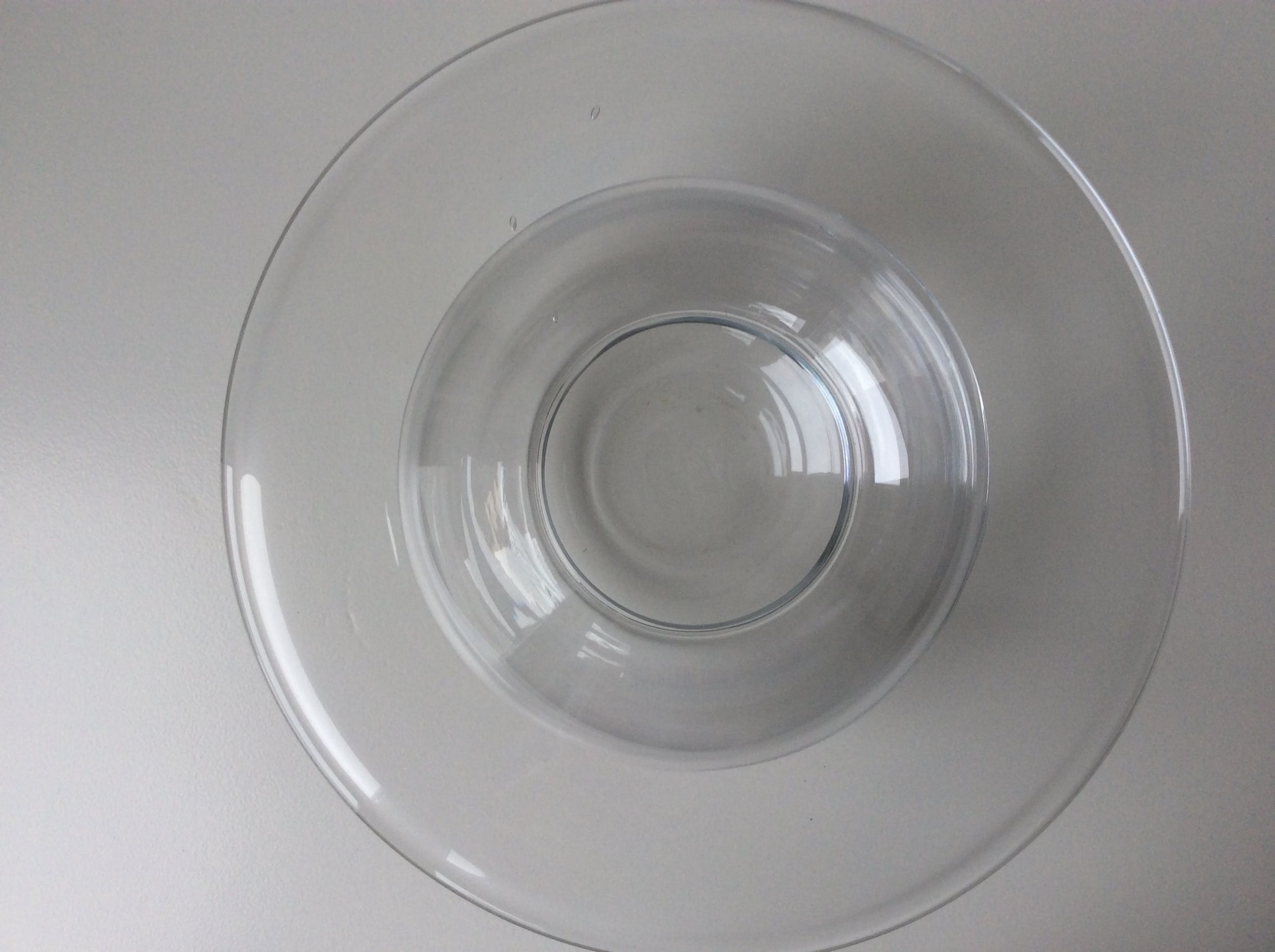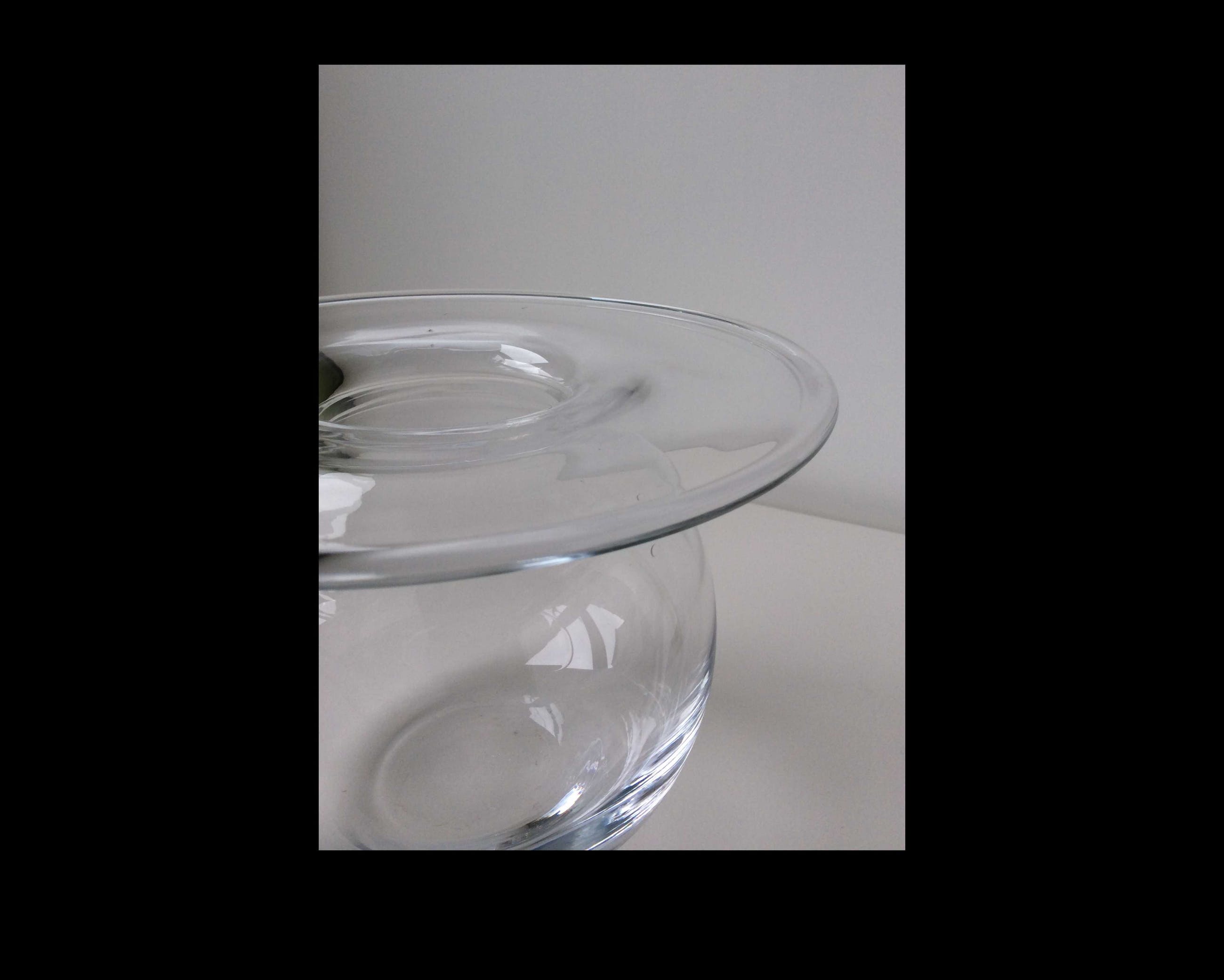 Saturnus vaas van Nanny Still, ca. 1975.Doorsnede max. 20,5 cm, hoogte 16,5 cm.Helder glas, mooie ronde opening, enkele productiebelletjes.