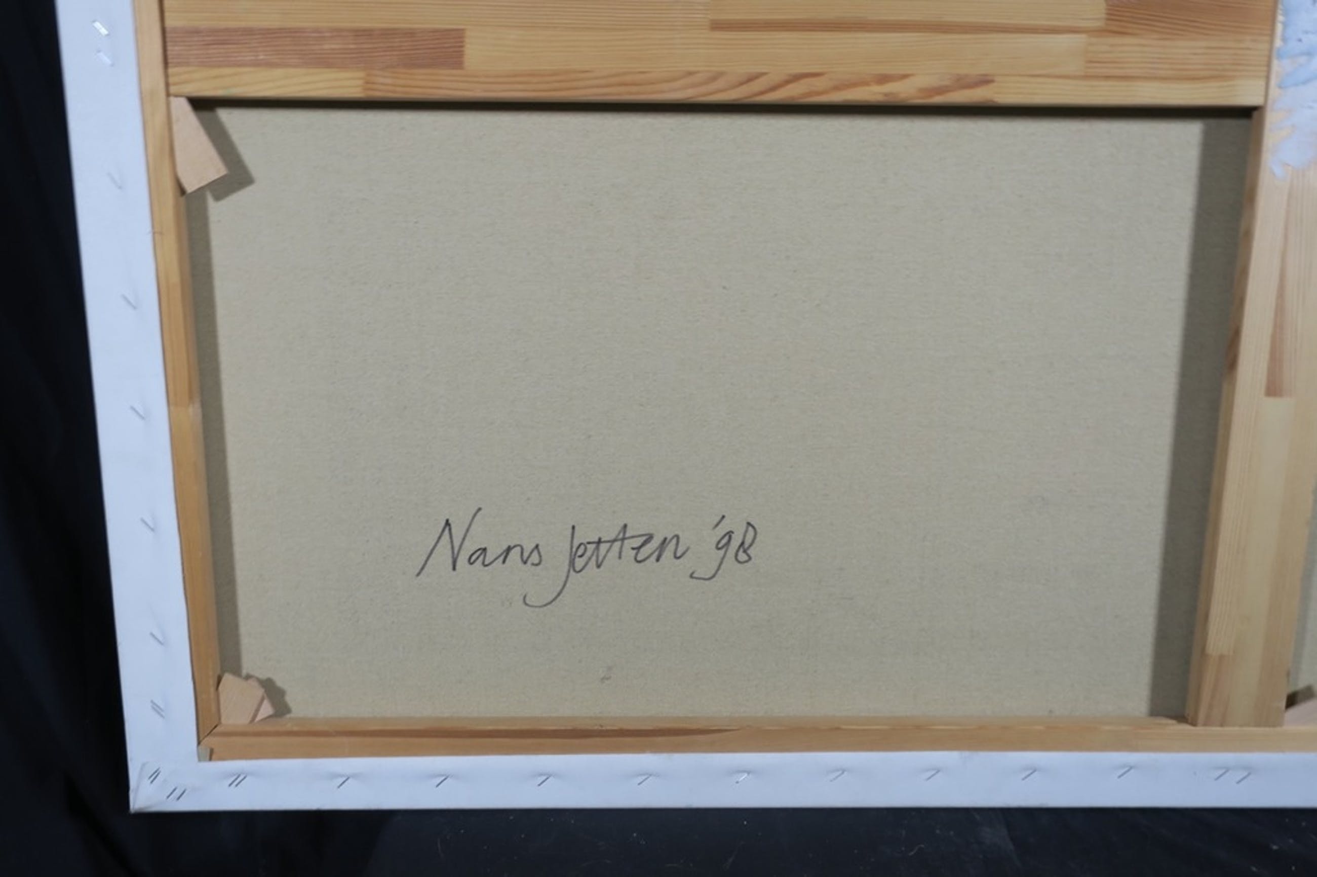 Conditie: In goede staat, maar vekkerig in de randen van het doek en met lichte beschadigingen langs de randen.