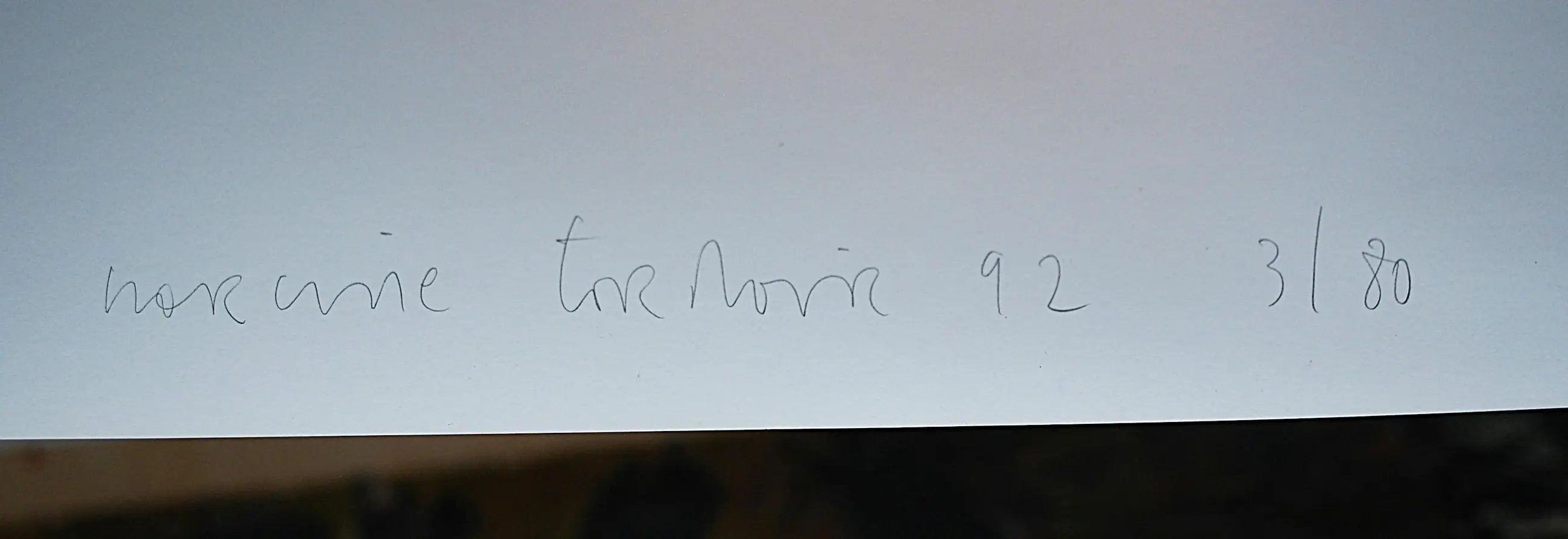Het blad is aan de bovenrand bevestigd op karton en aan de achterkant beschreven met potlood: signatuur/jaar/oplage 13/80. Zwevend gemonteerd, omlijst door een passepartout. Achter glas in een zwarte aluminium lijst.