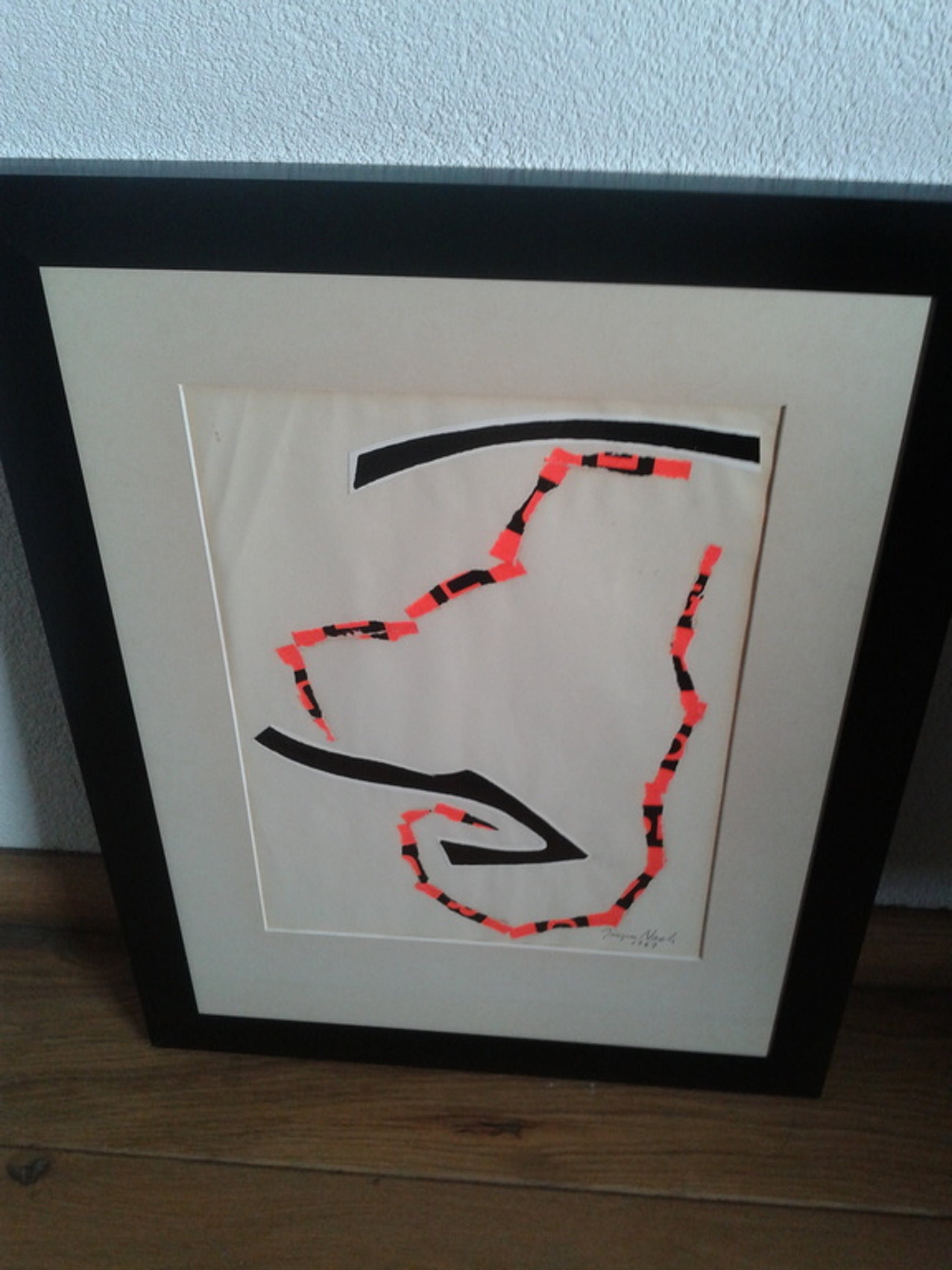 Het werk heet Selfportrait en is handgesigneerd en netjes ingelijst.