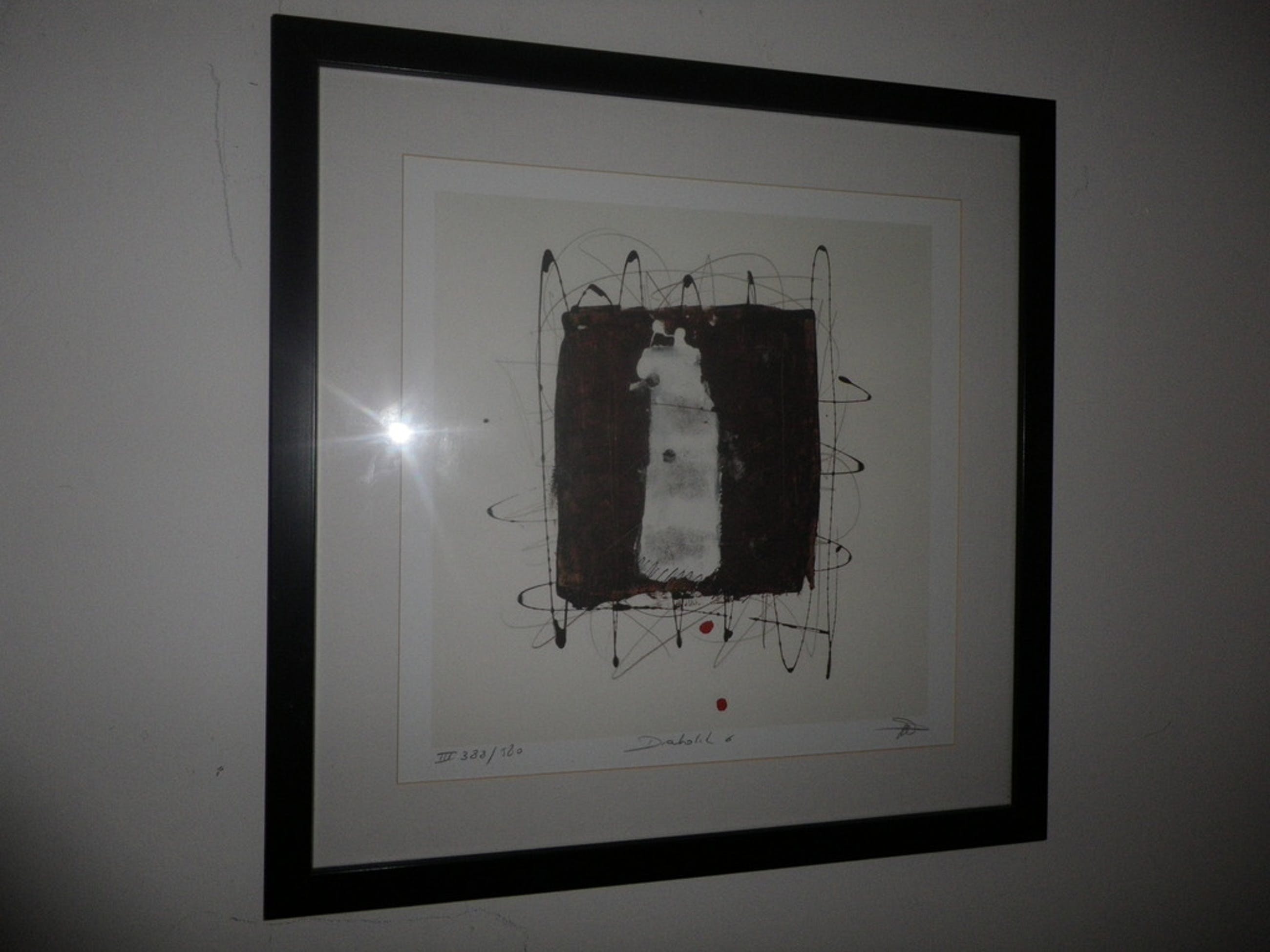 mooie abstracte zeefdruk,ingelijst 55x55 cm, genummerd en gesigneerd.