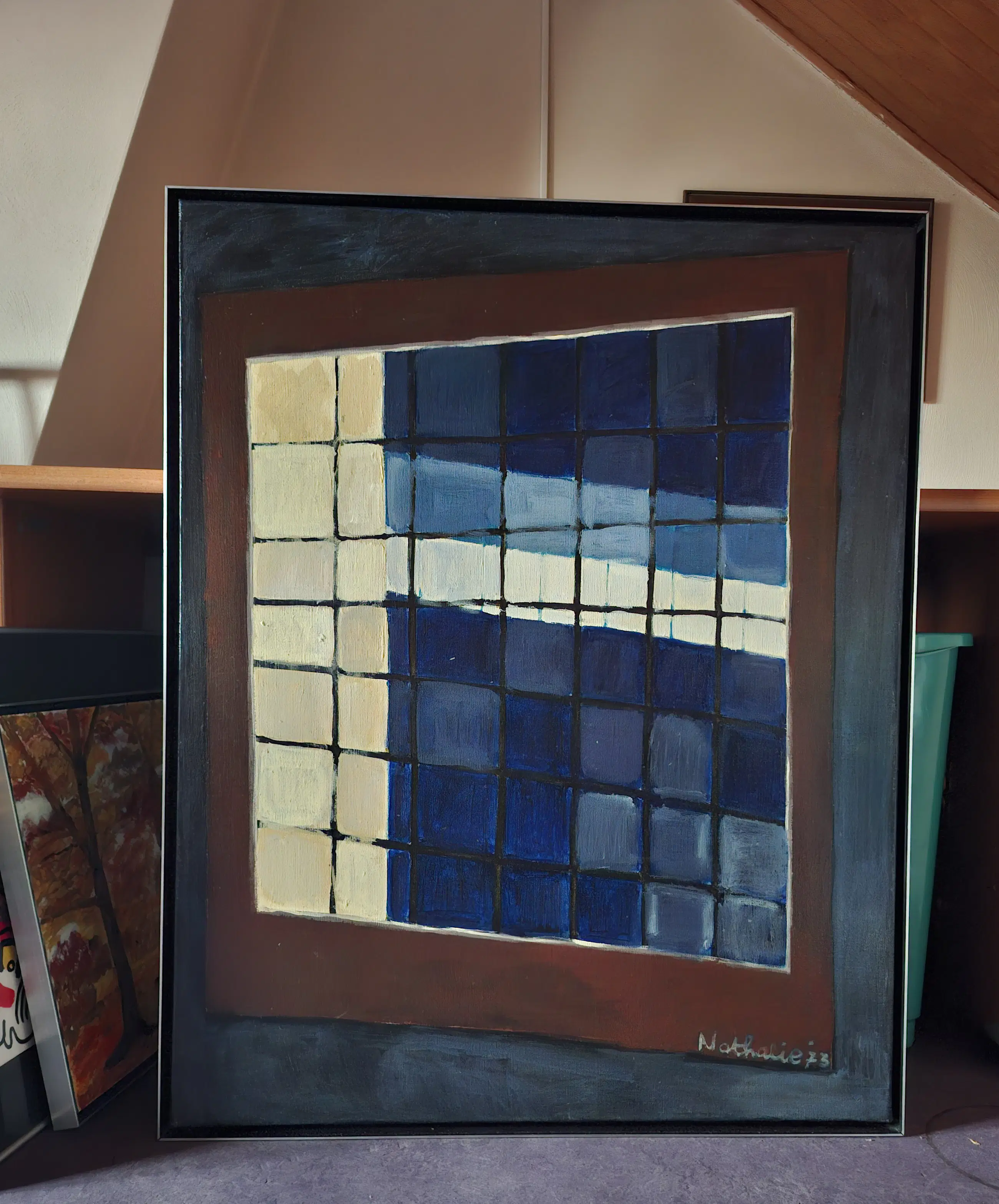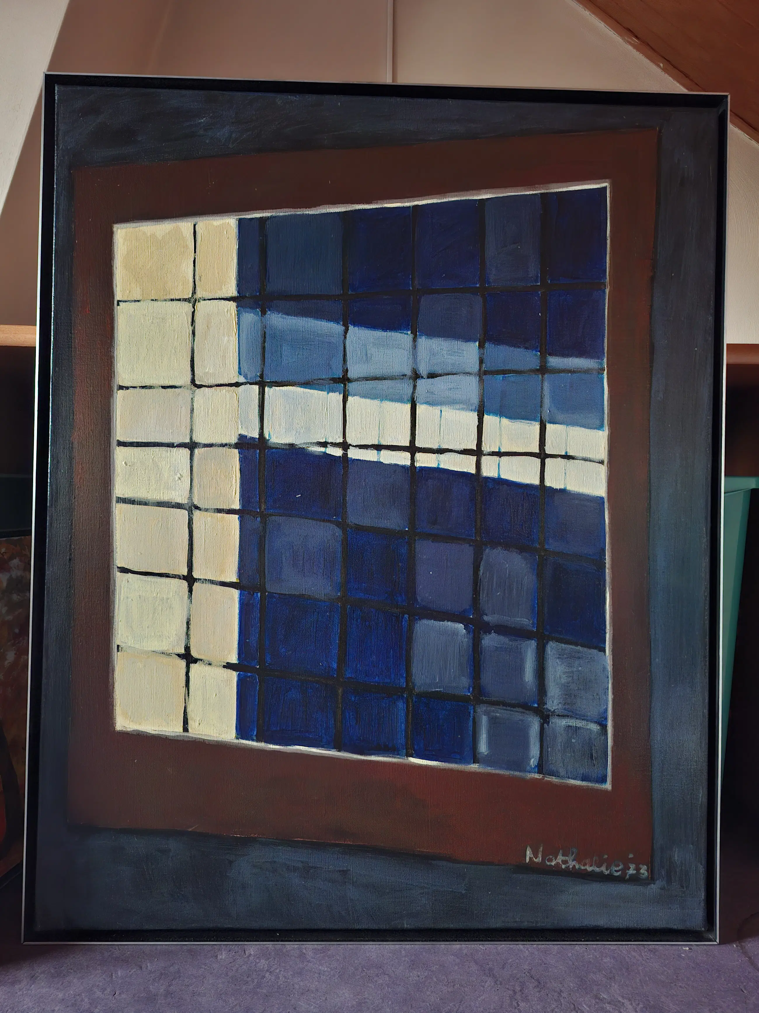 Natalie van den Eerenbeemd. Schilderij op doek. Doek: 100 x 80 cm. Lijst: 103 x 83 cm.
